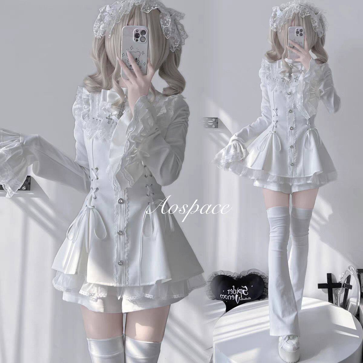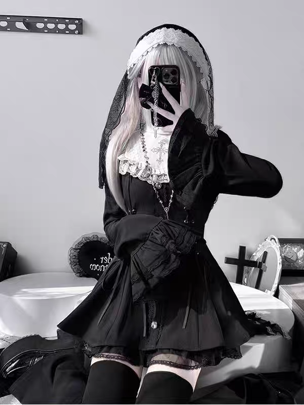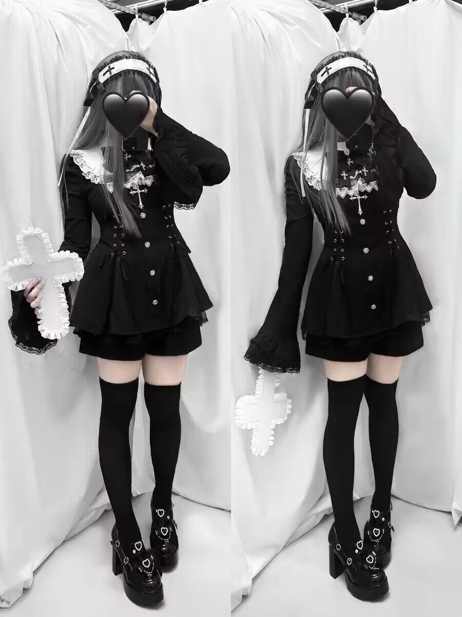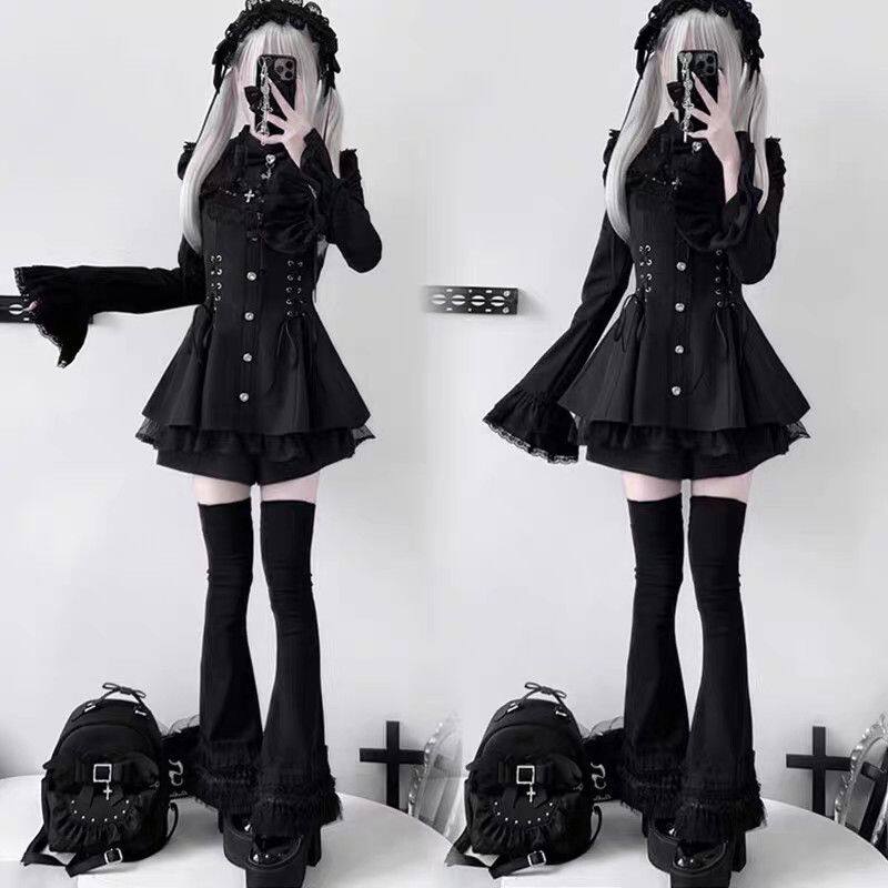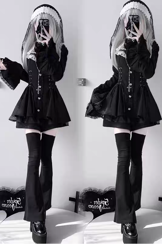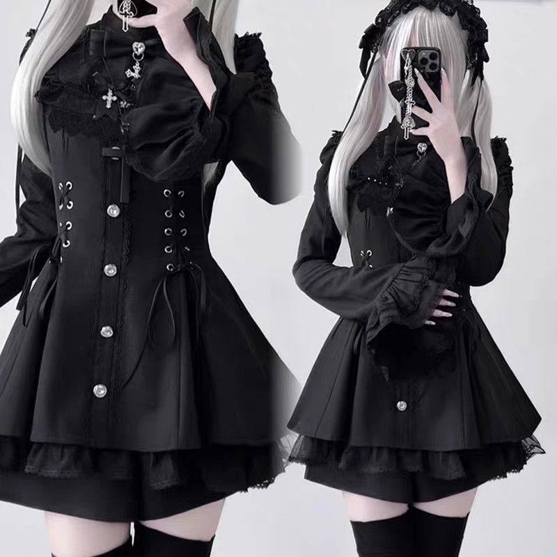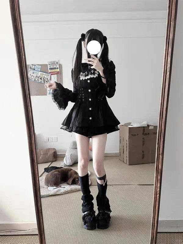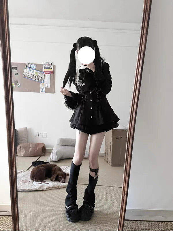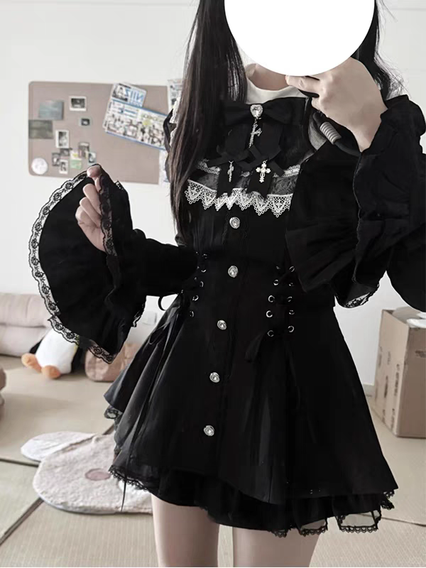 雪告时分甜心暗黑量产型喇叭袖蝴蝶结蕾丝长袖连衣裙套装 [Original Page Link]