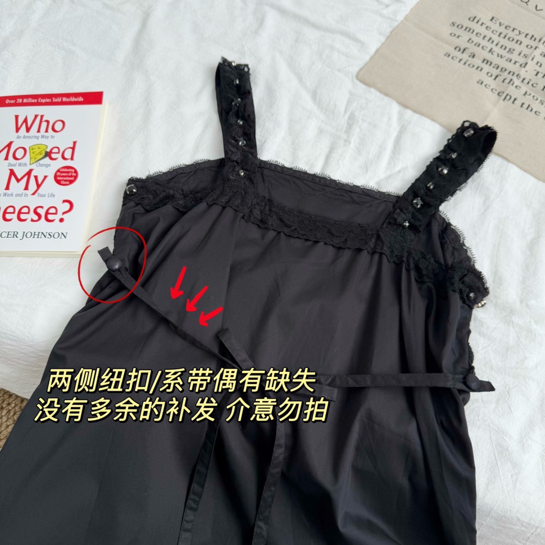6895#暗黑系lo感蕾丝钉珠复古优雅深色荷叶花边宽吊带洋装 [Original Page Link]