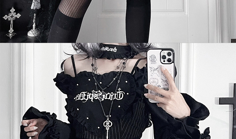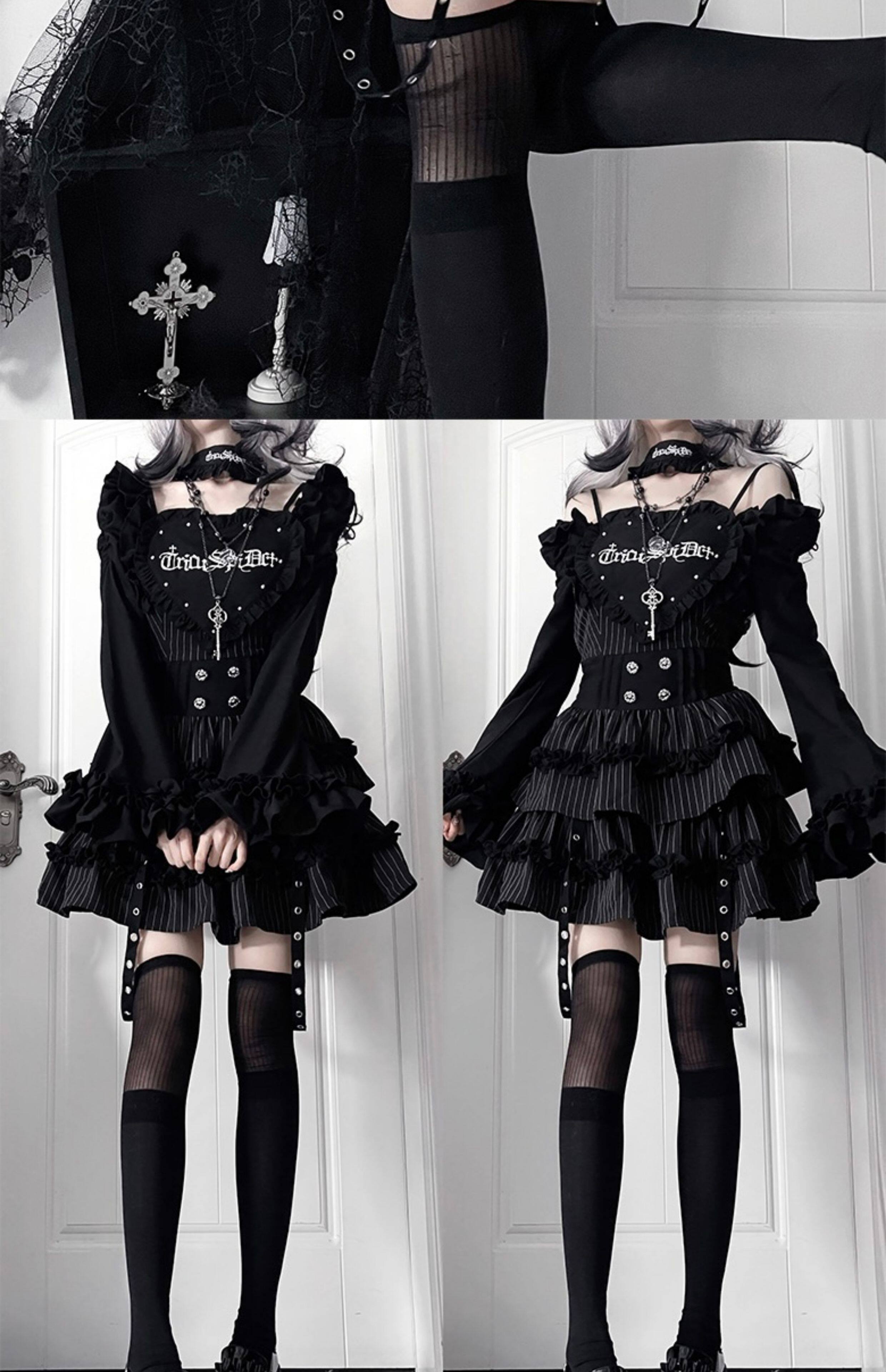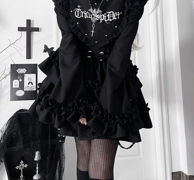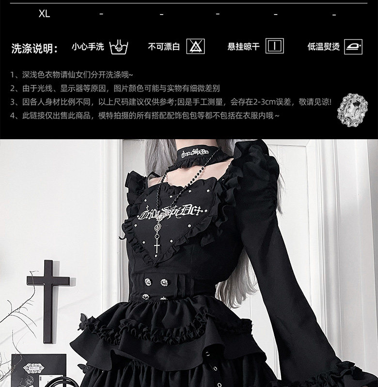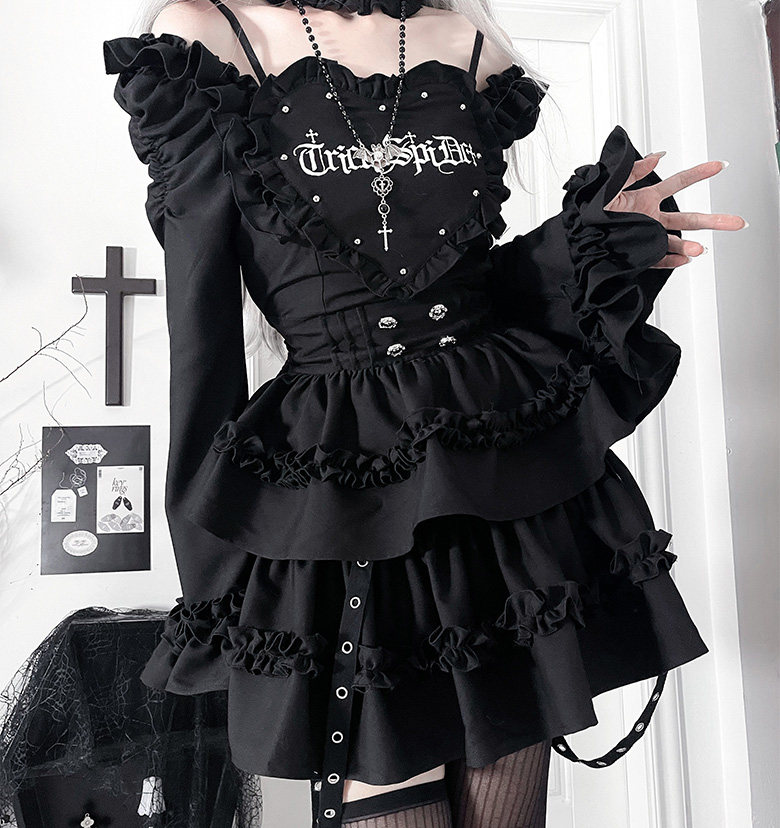 *暗恋手册*柘枝引TC原创印花亚文化哥特暗黑修身长袖洋装春秋 [Original Page Link]