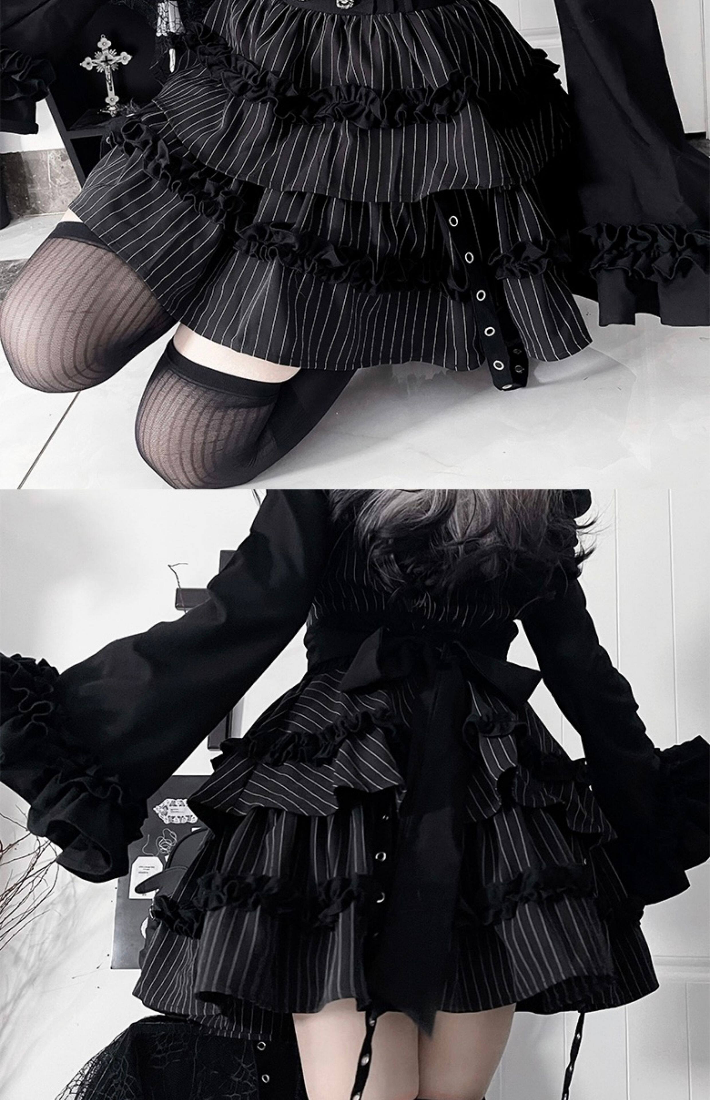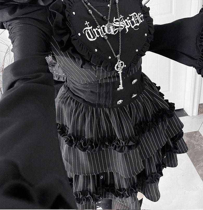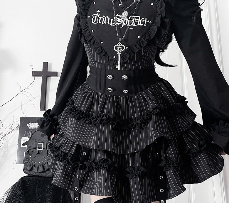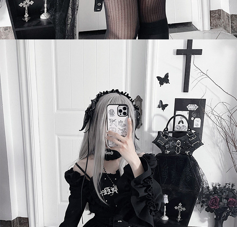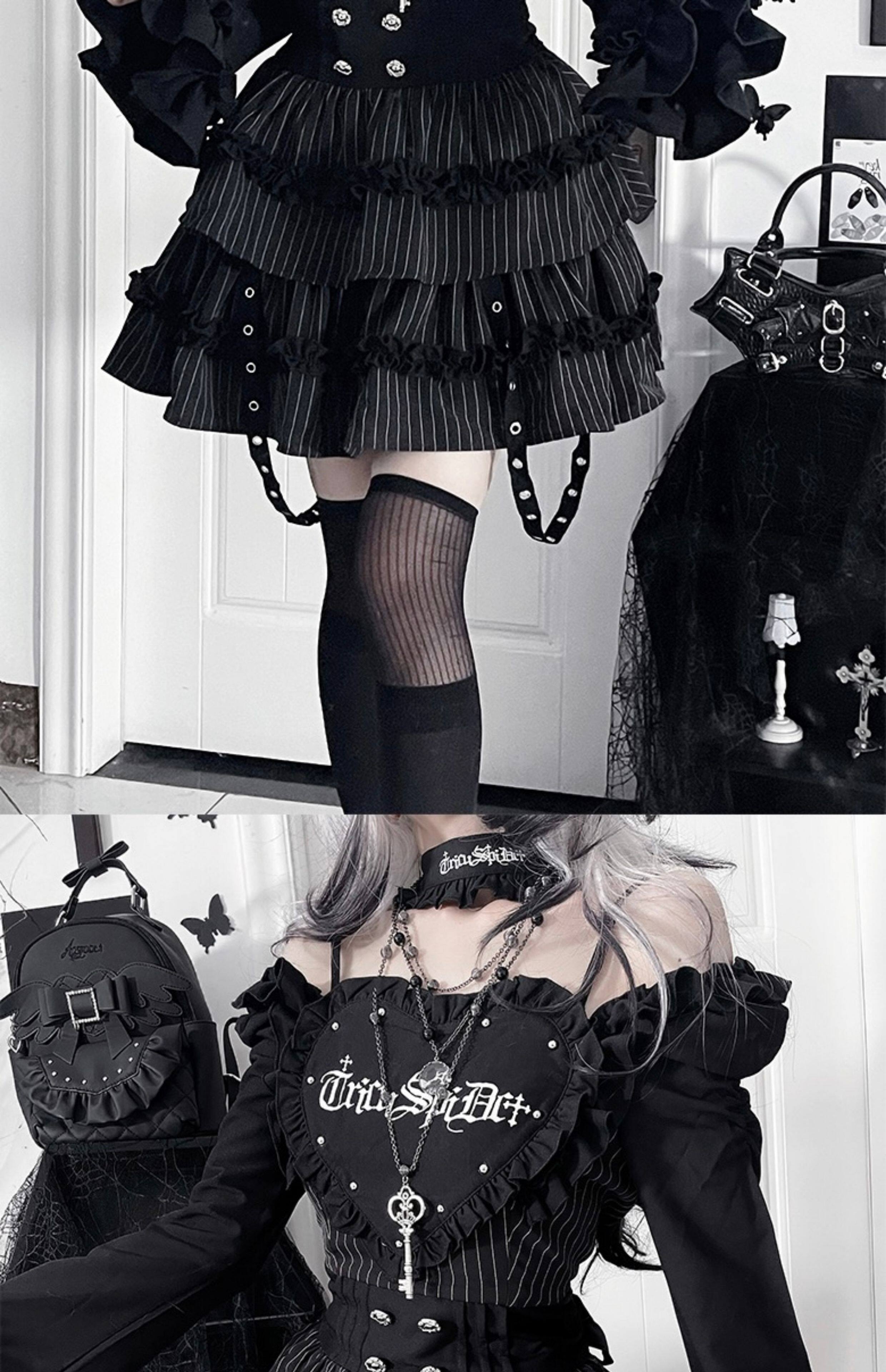 *暗恋手册*柘枝引TC原创印花亚文化哥特暗黑修身长袖洋装春秋 [Original Page Link]