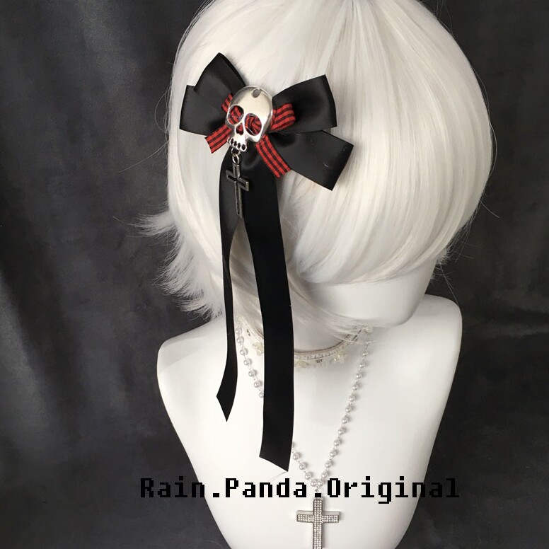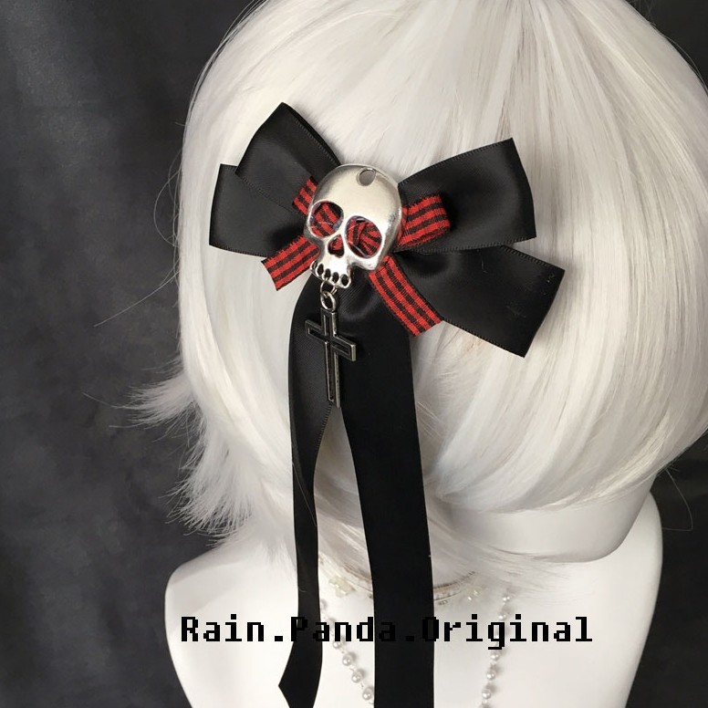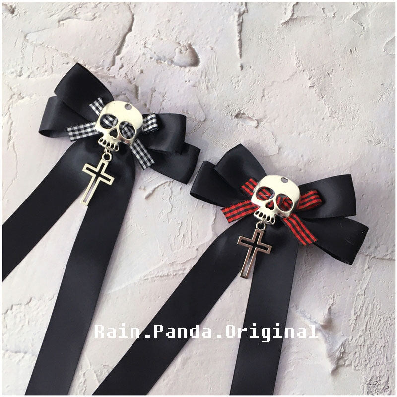 Yabi文化原创Y2K海盗女孩头骨黑暗朋克哥特格纹蝴蝶结发饰头饰为妇女 [Original Page Link]