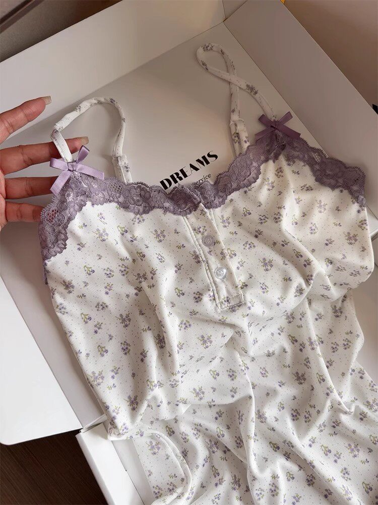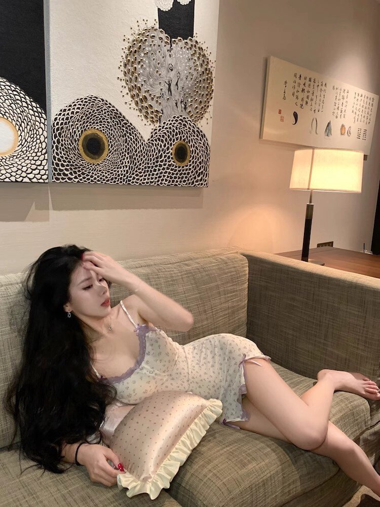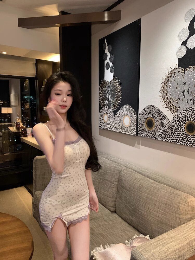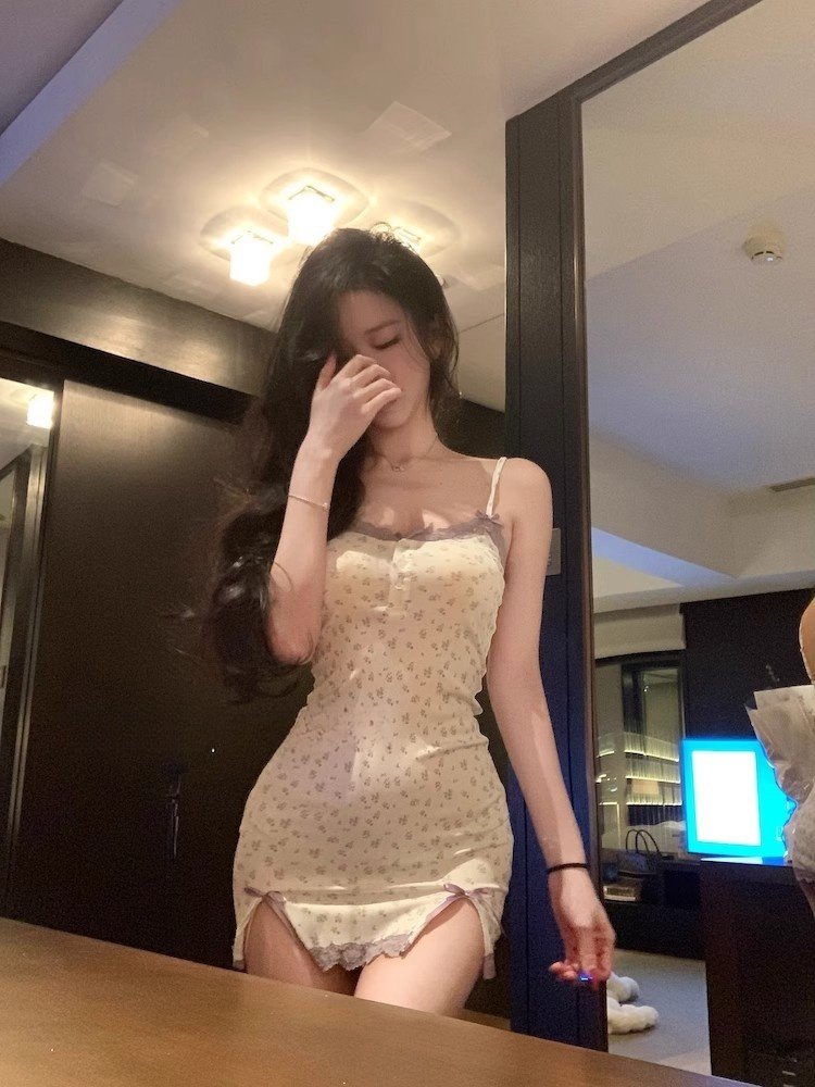甜美法式小碎花吊带睡裙带胸垫纯欲风开叉辣妹性感睡衣包臀裙战袍 [Original Page Link]