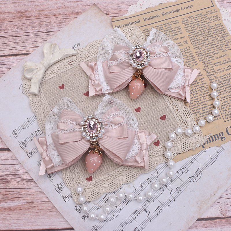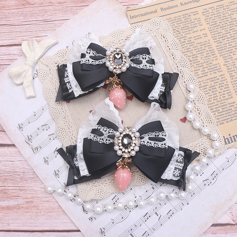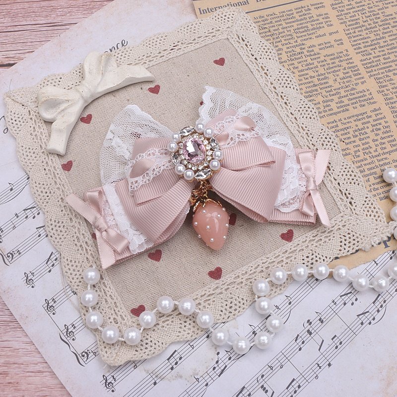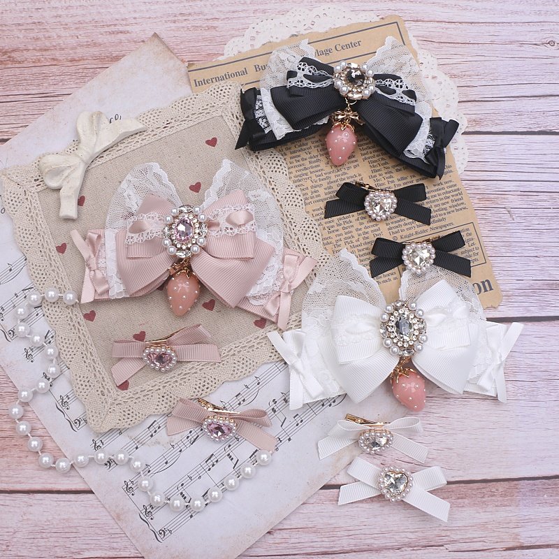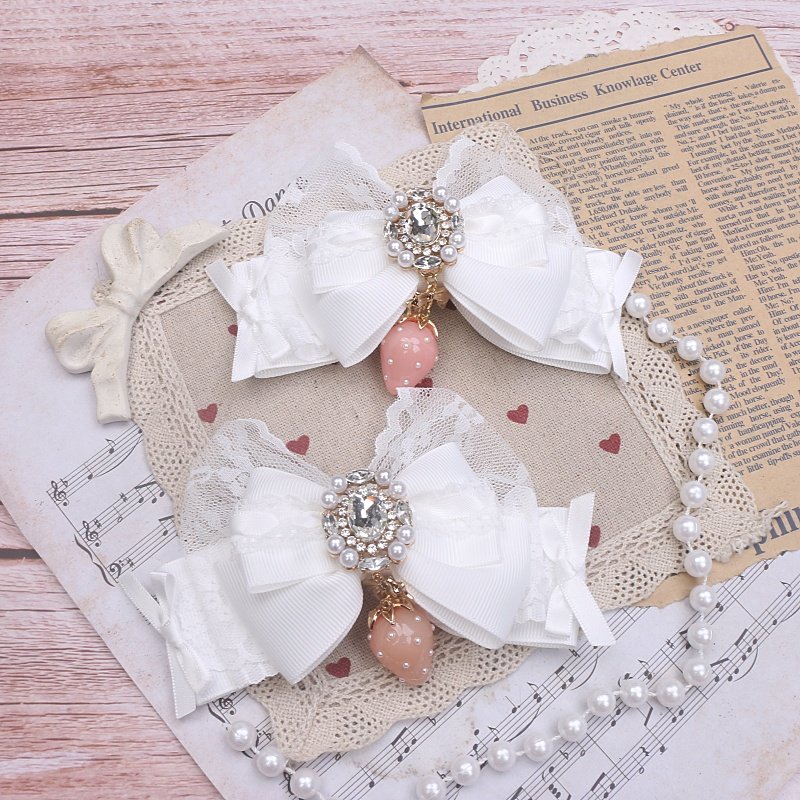 珠珠手作日系甜美可爱量产发夹进口蕾丝草莓吊坠大蝴蝶结发夹边夹 [Original Page Link]