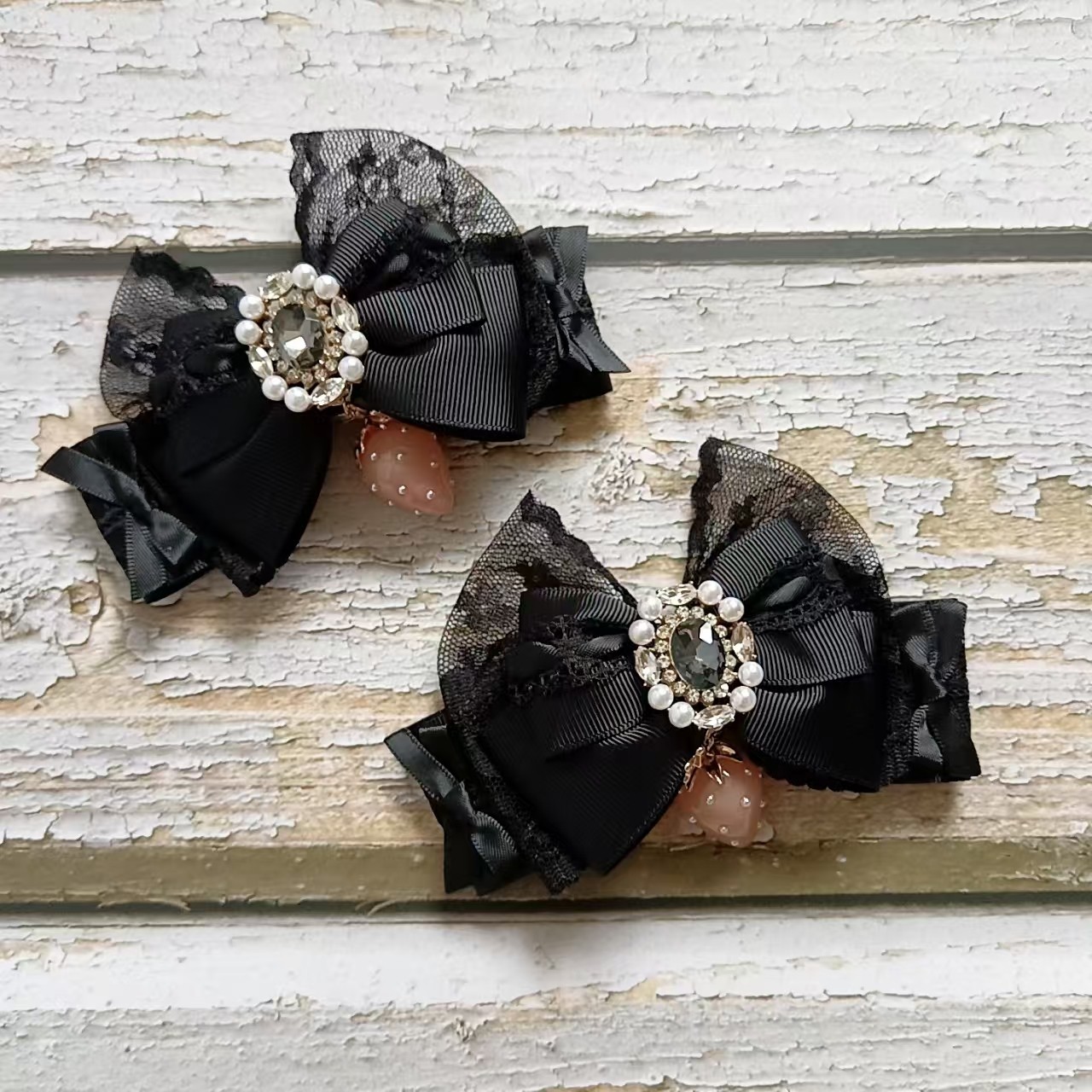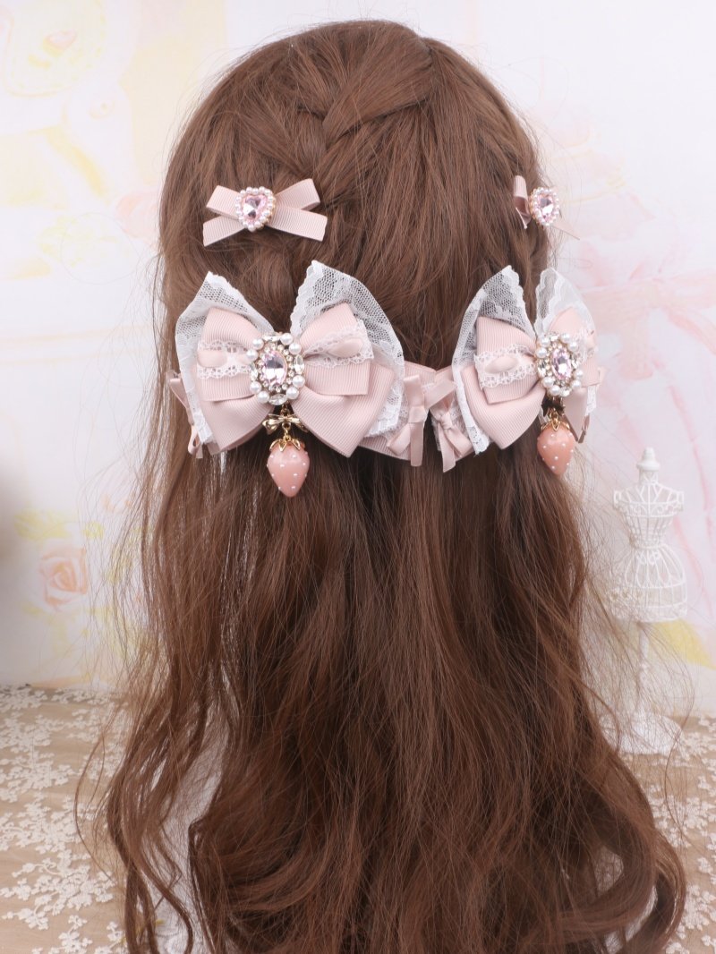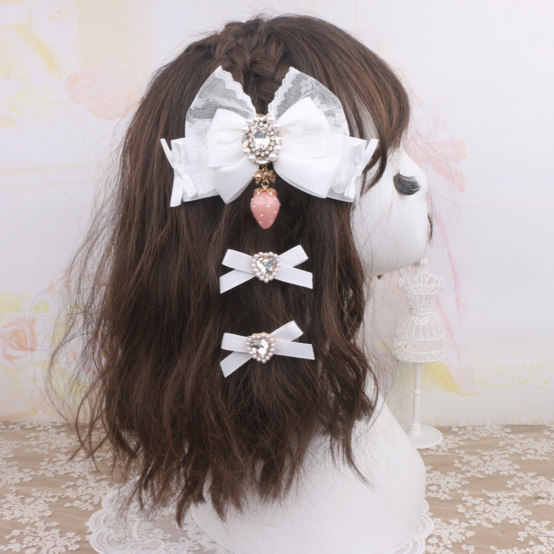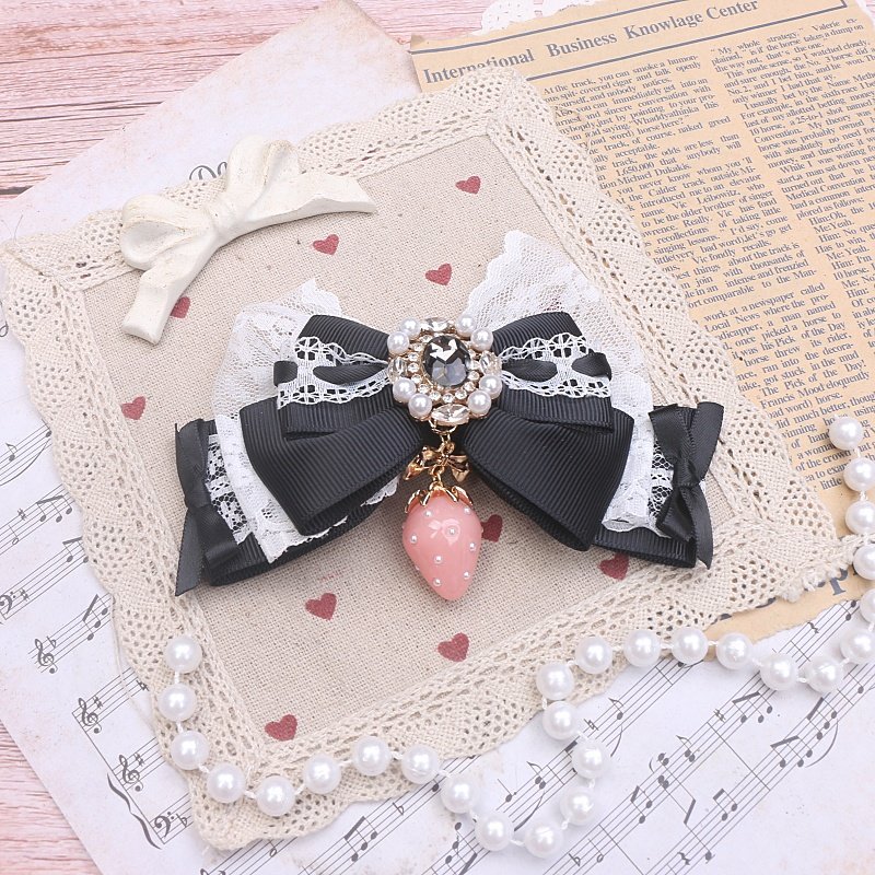 珠珠手作日系甜美可爱量产发夹进口蕾丝草莓吊坠大蝴蝶结发夹边夹 [Original Page Link]