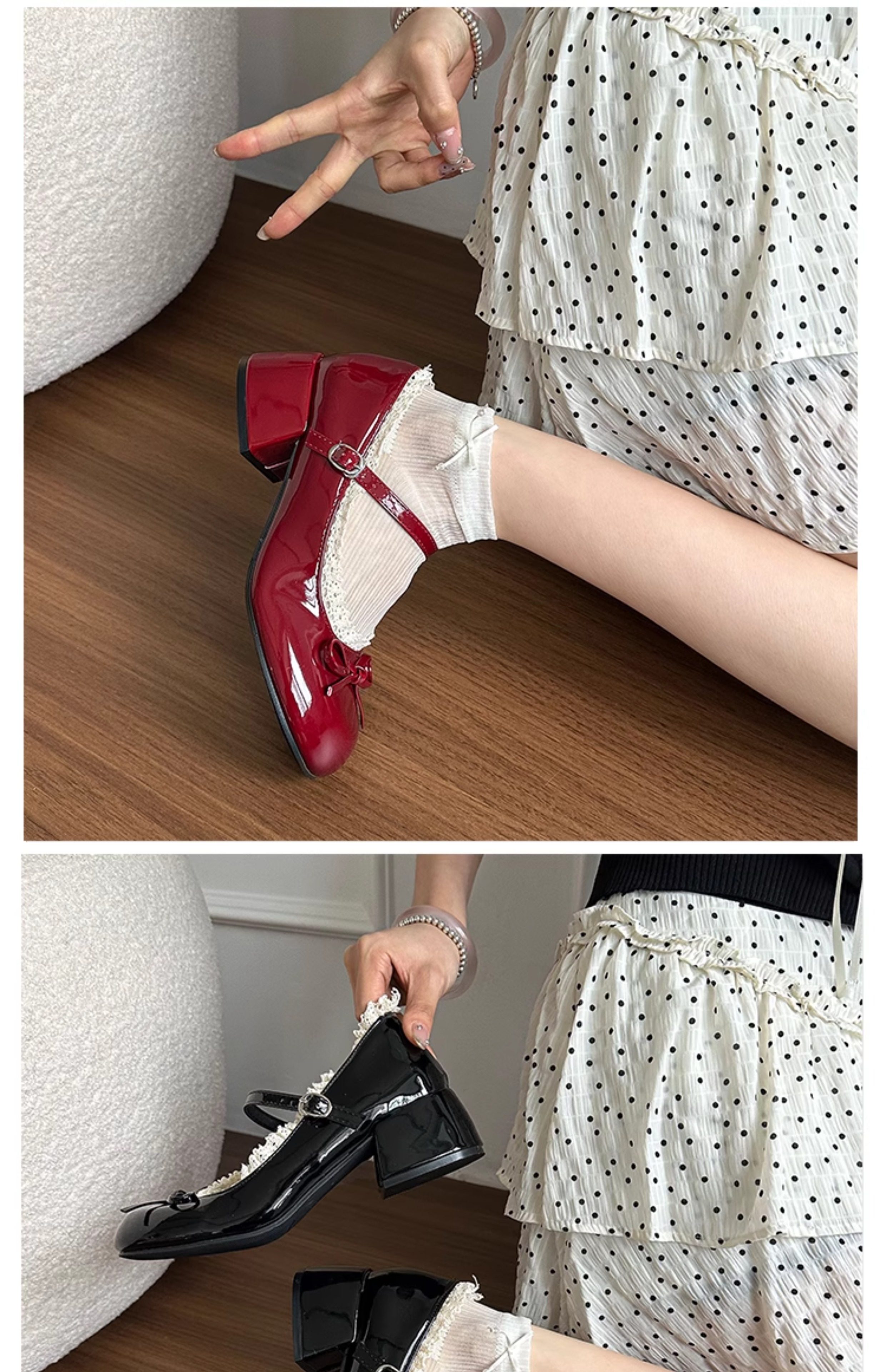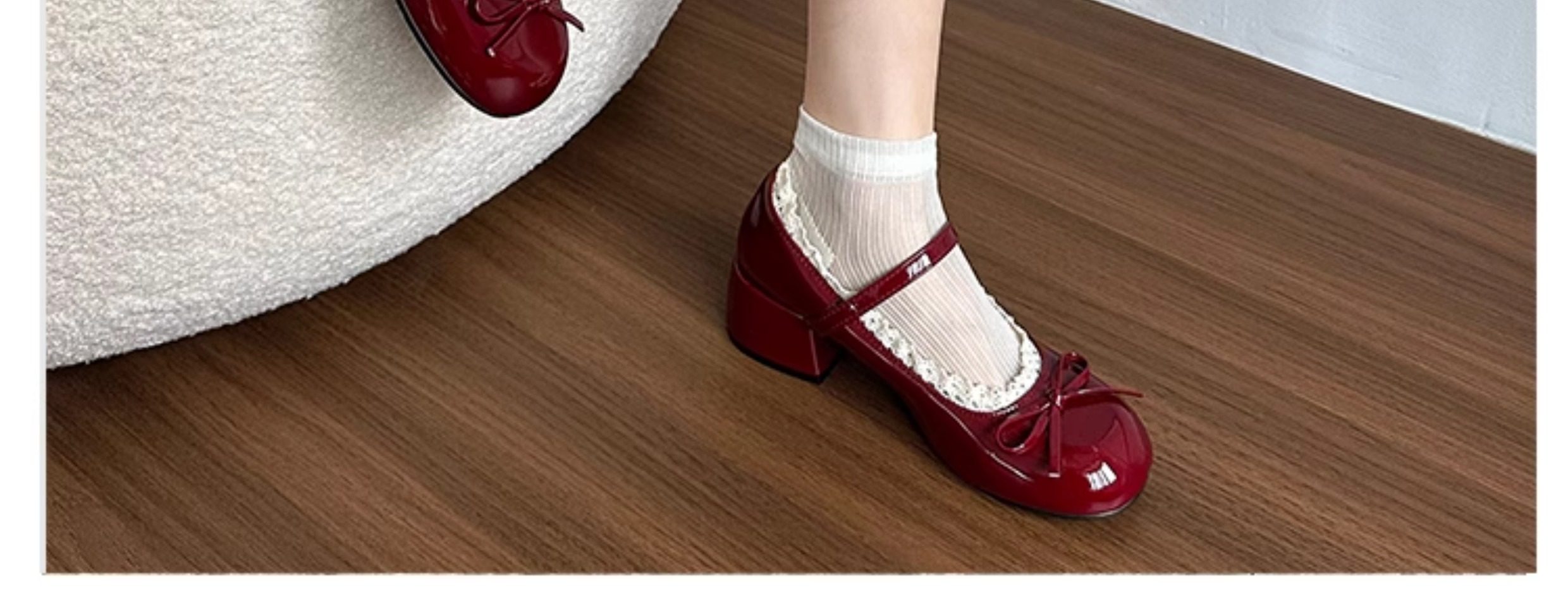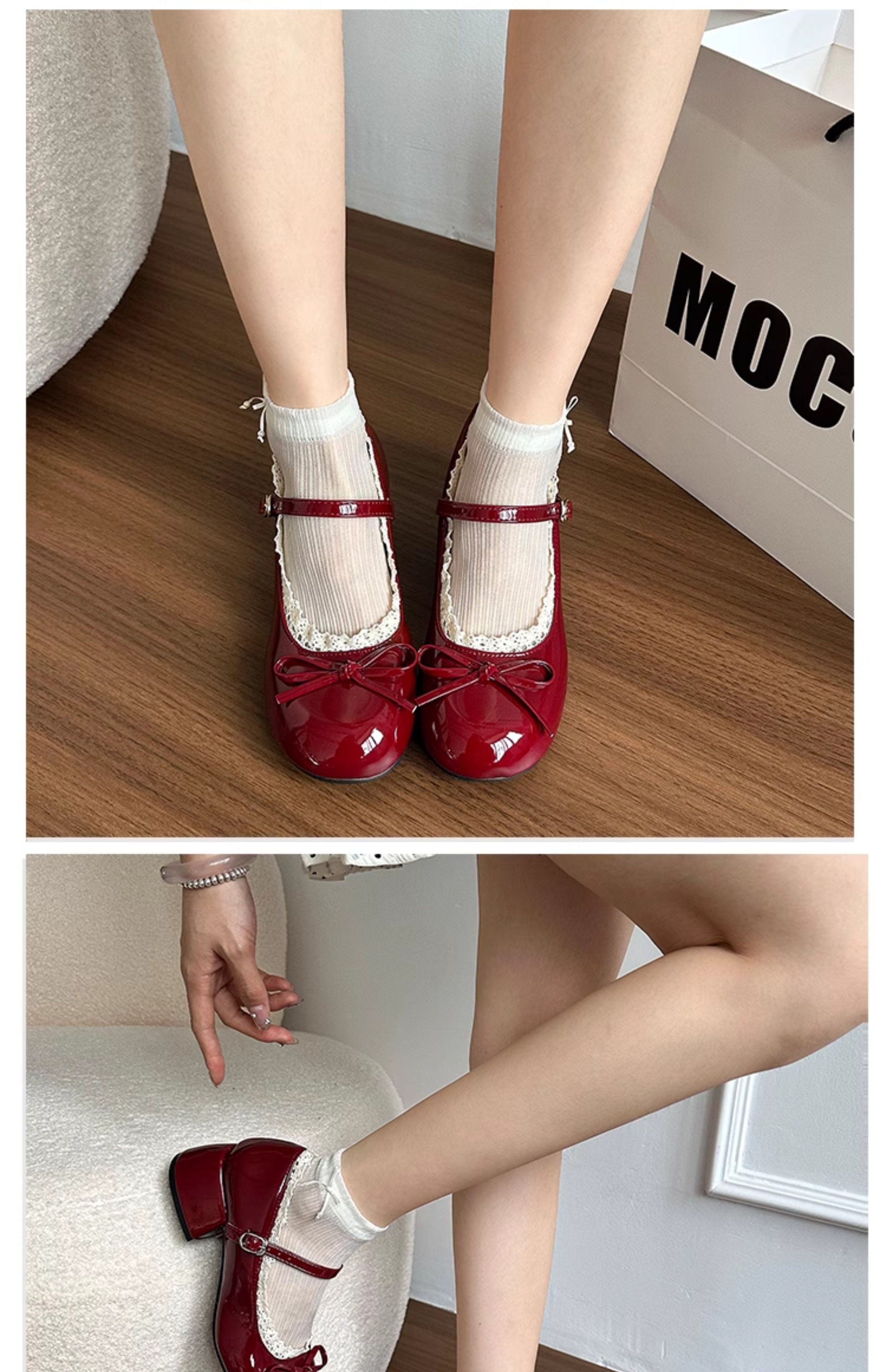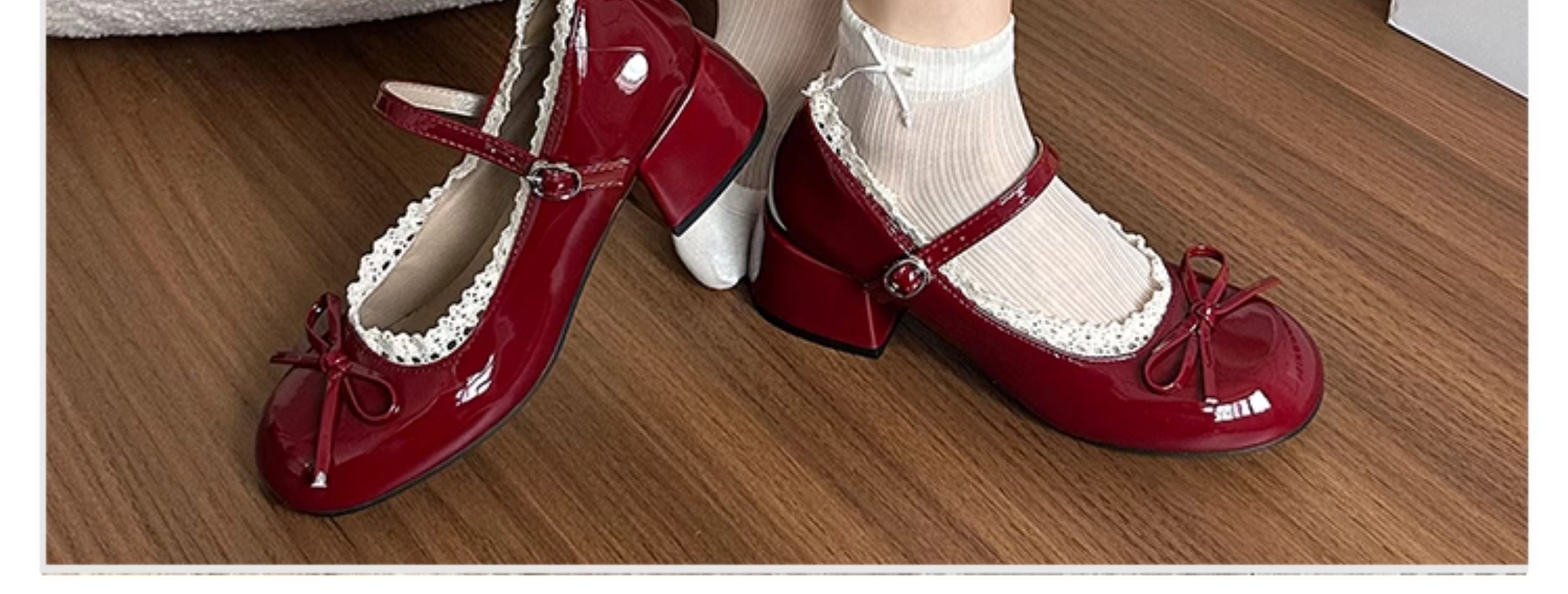 红色法式覆古粗跟玛丽珍鞋女2025新款夏季百搭蝴蝶结花边小皮鞋子 [Original Page Link]