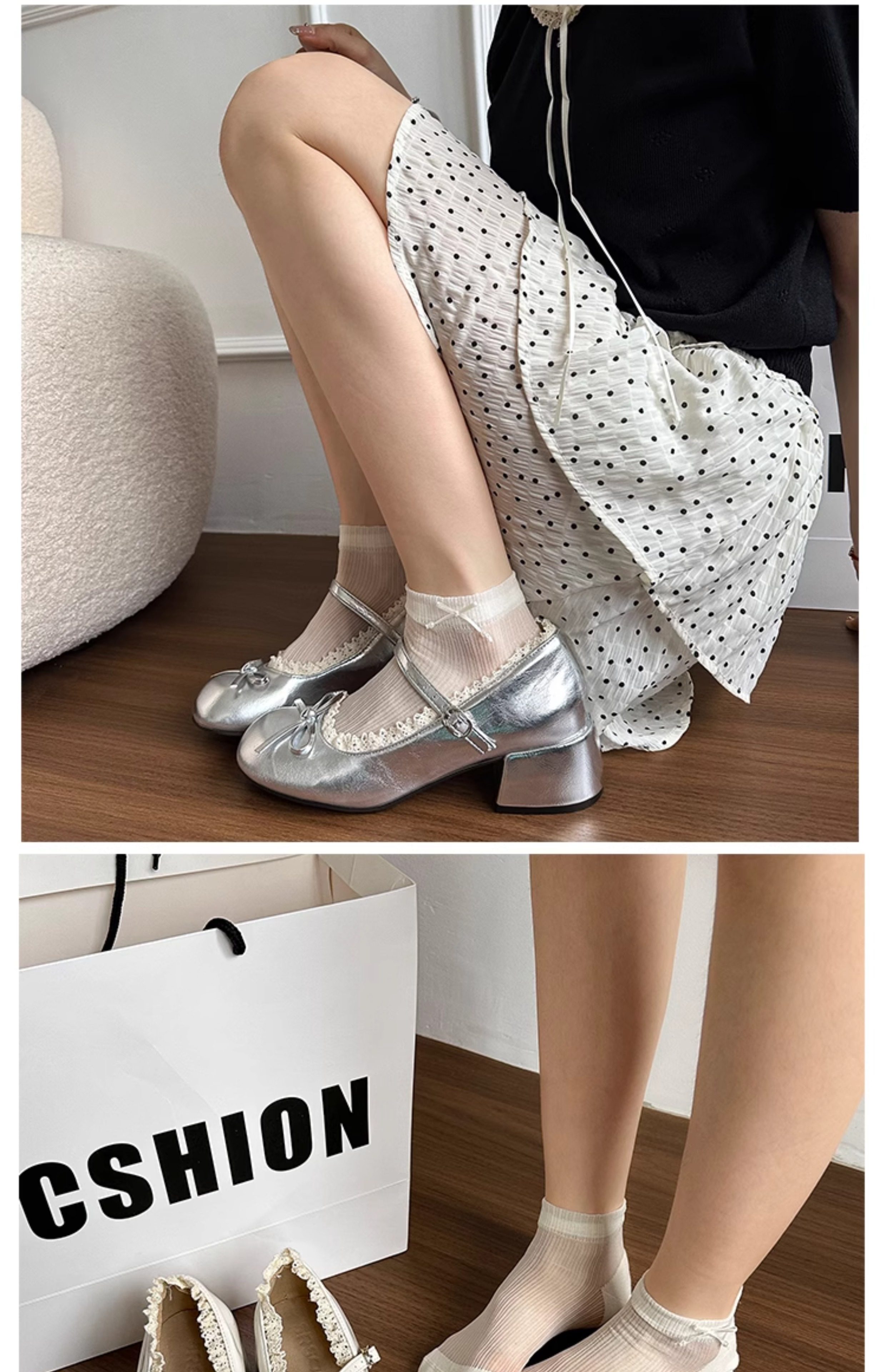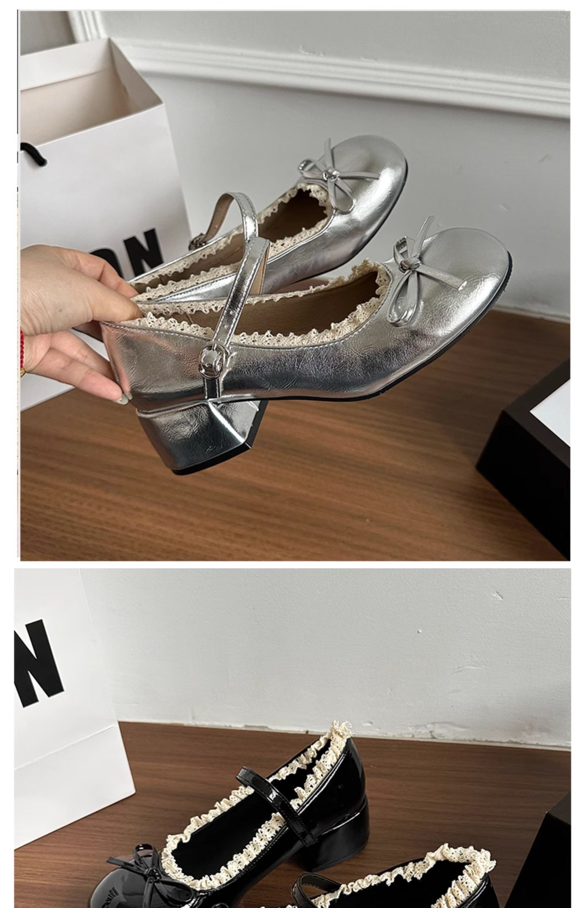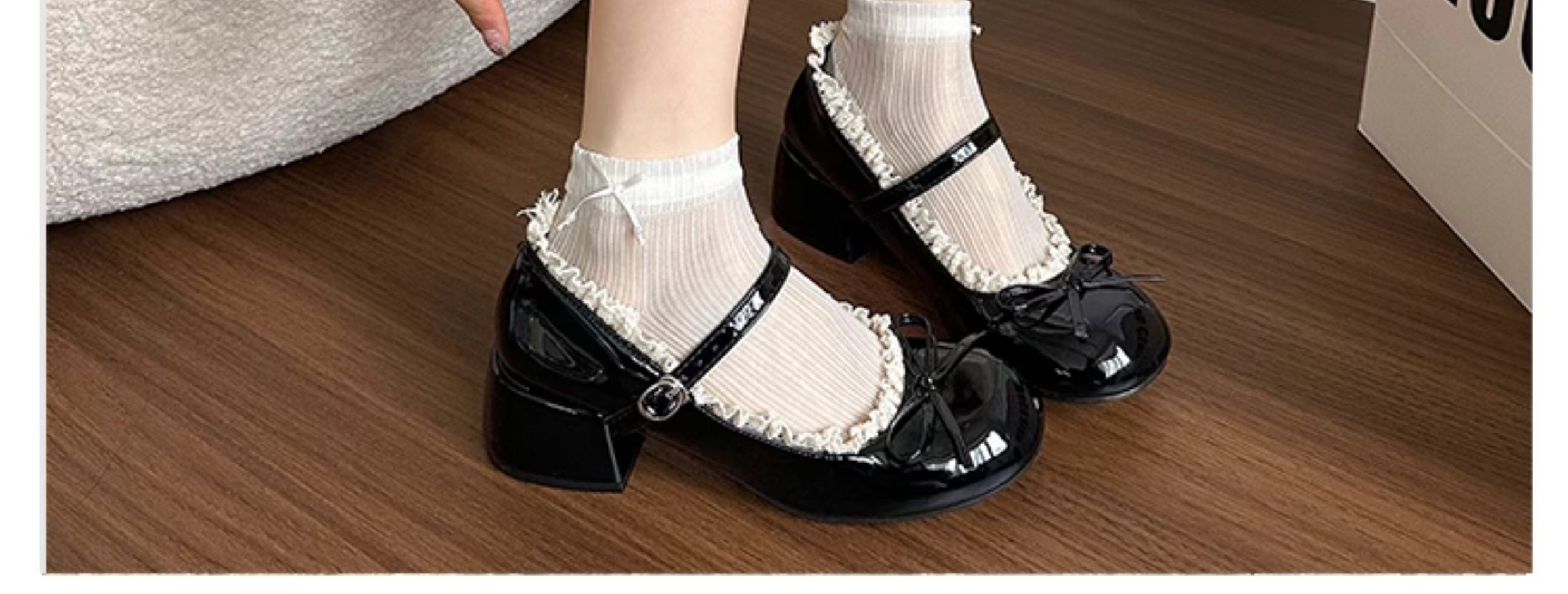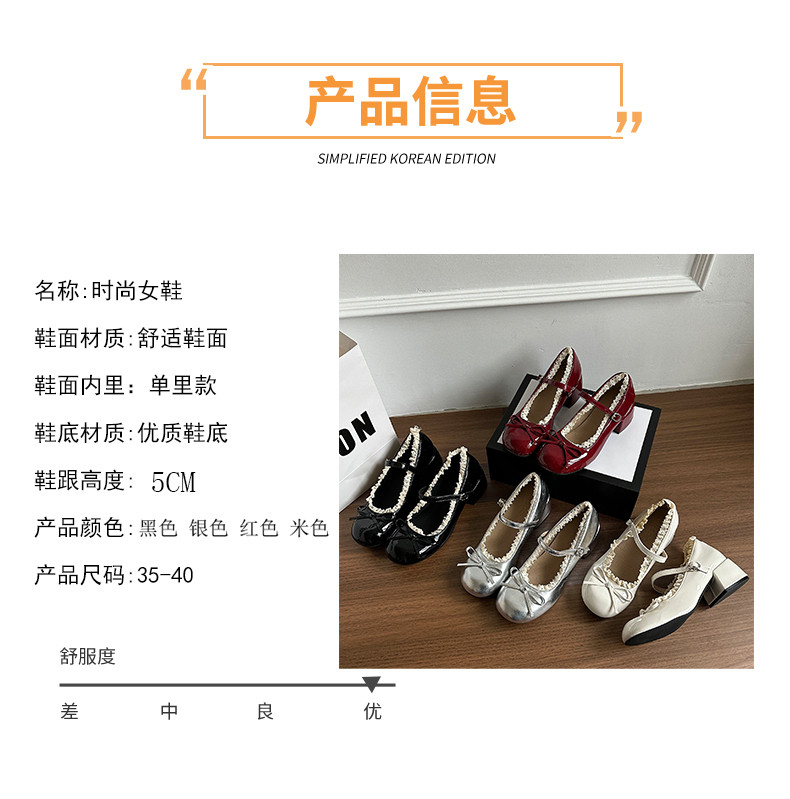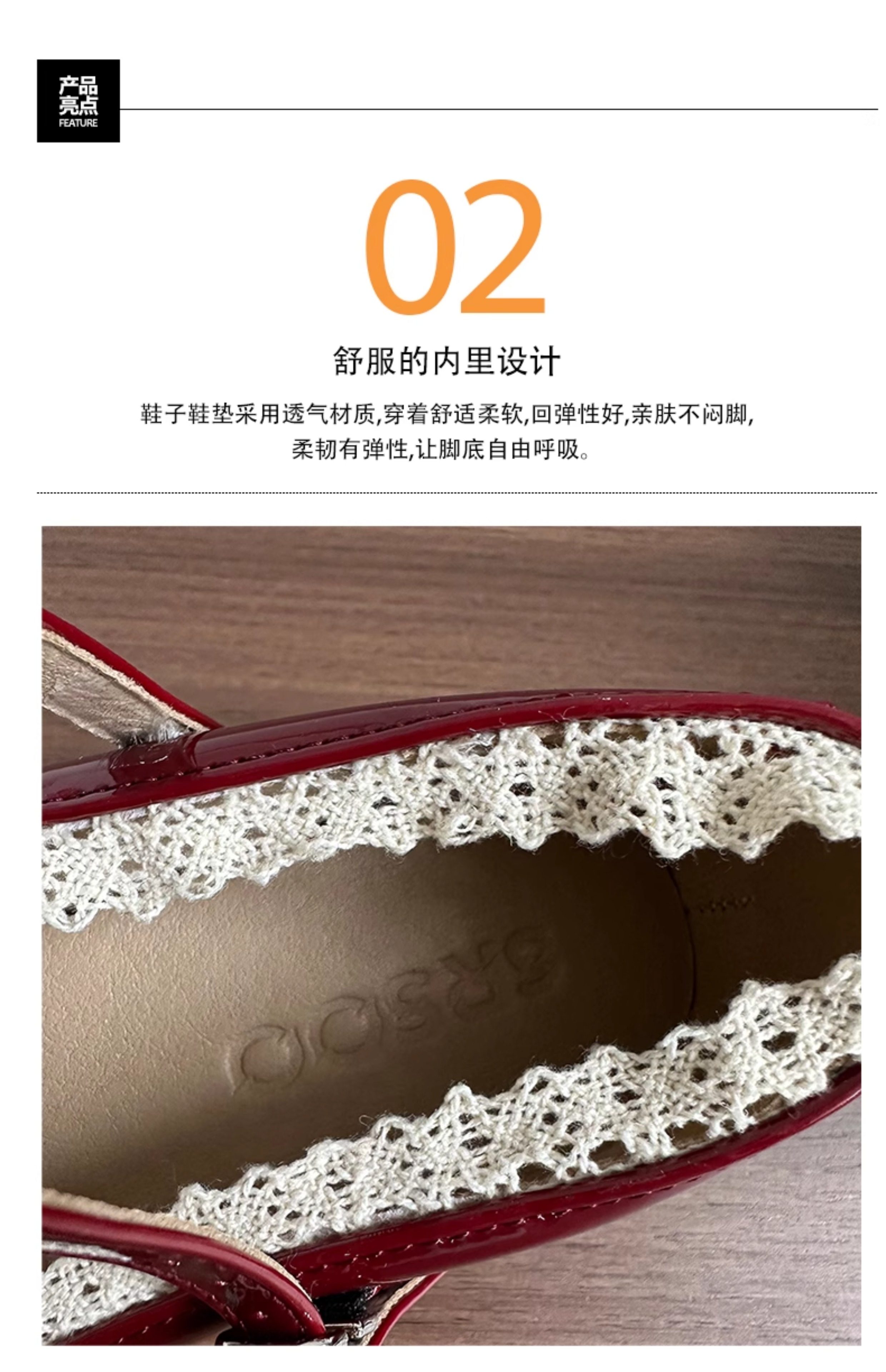 红色法式覆古粗跟玛丽珍鞋女2025新款夏季百搭蝴蝶结花边小皮鞋子 [Original Page Link]