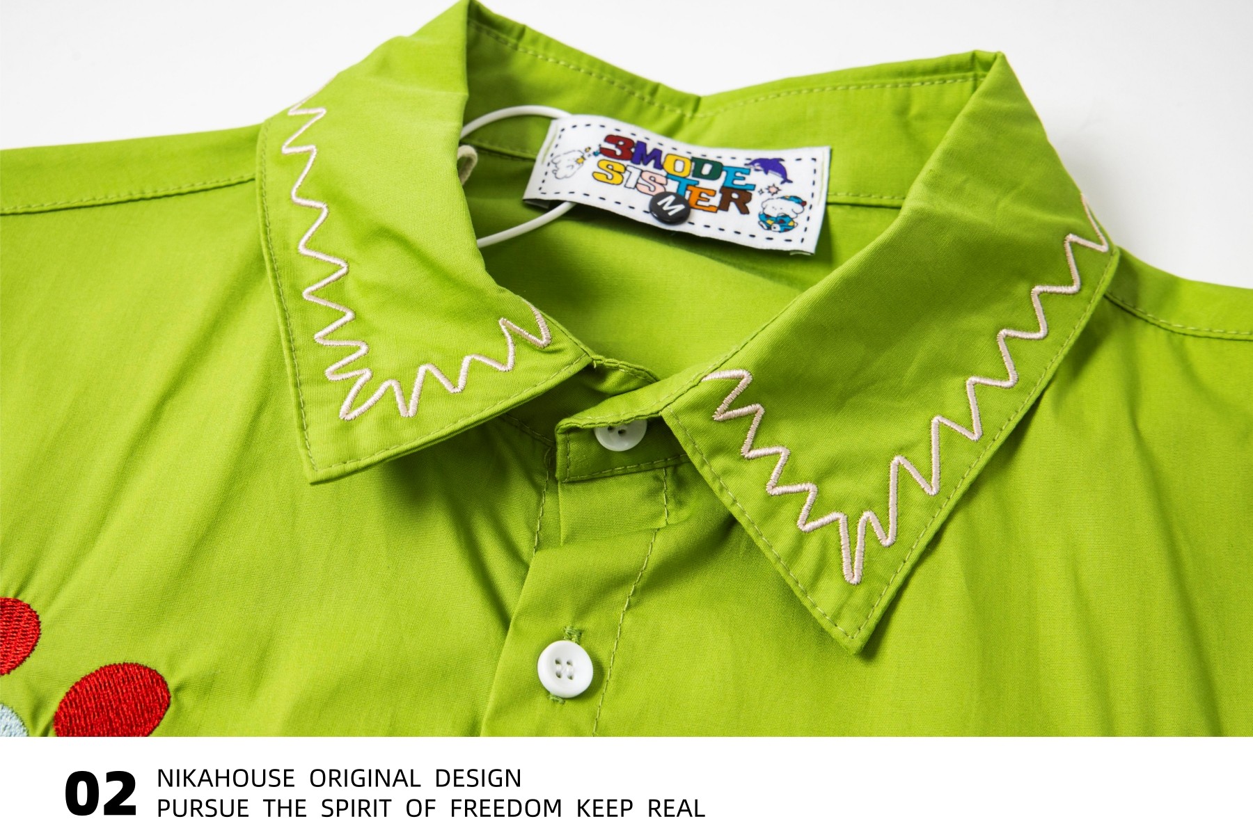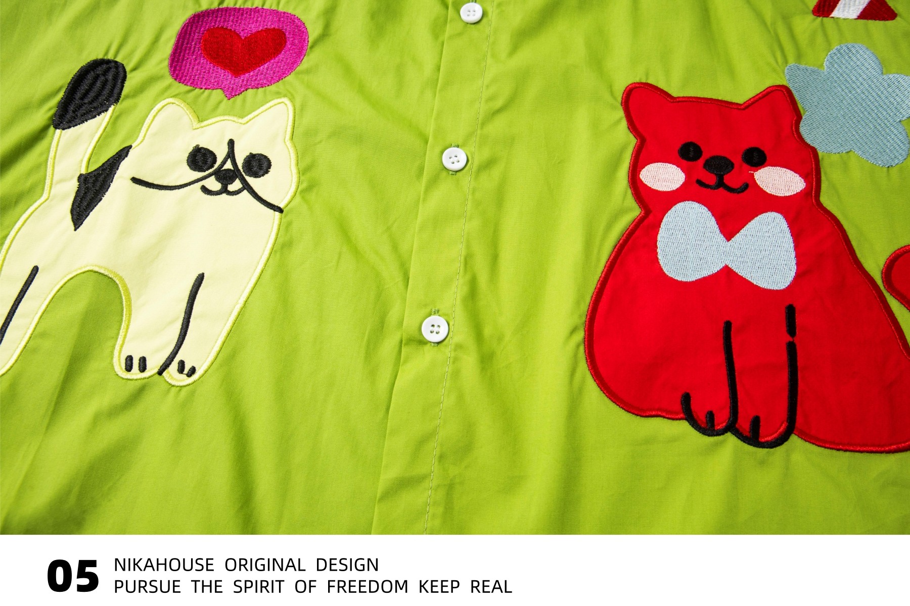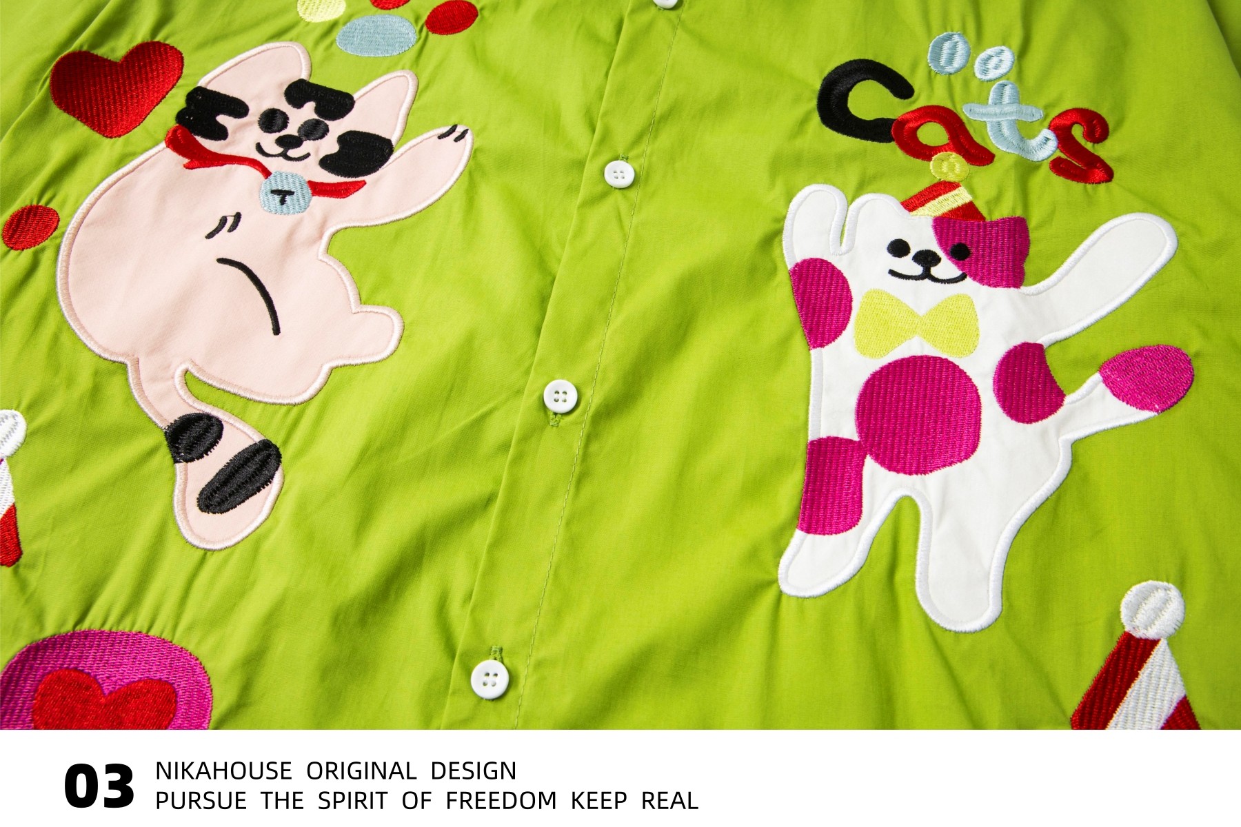Nikahouse日式多巴胺趣味猫刺绣短袖衬衫覆古新潮品牌宽松夫妇衬衫 [Original Page Link]