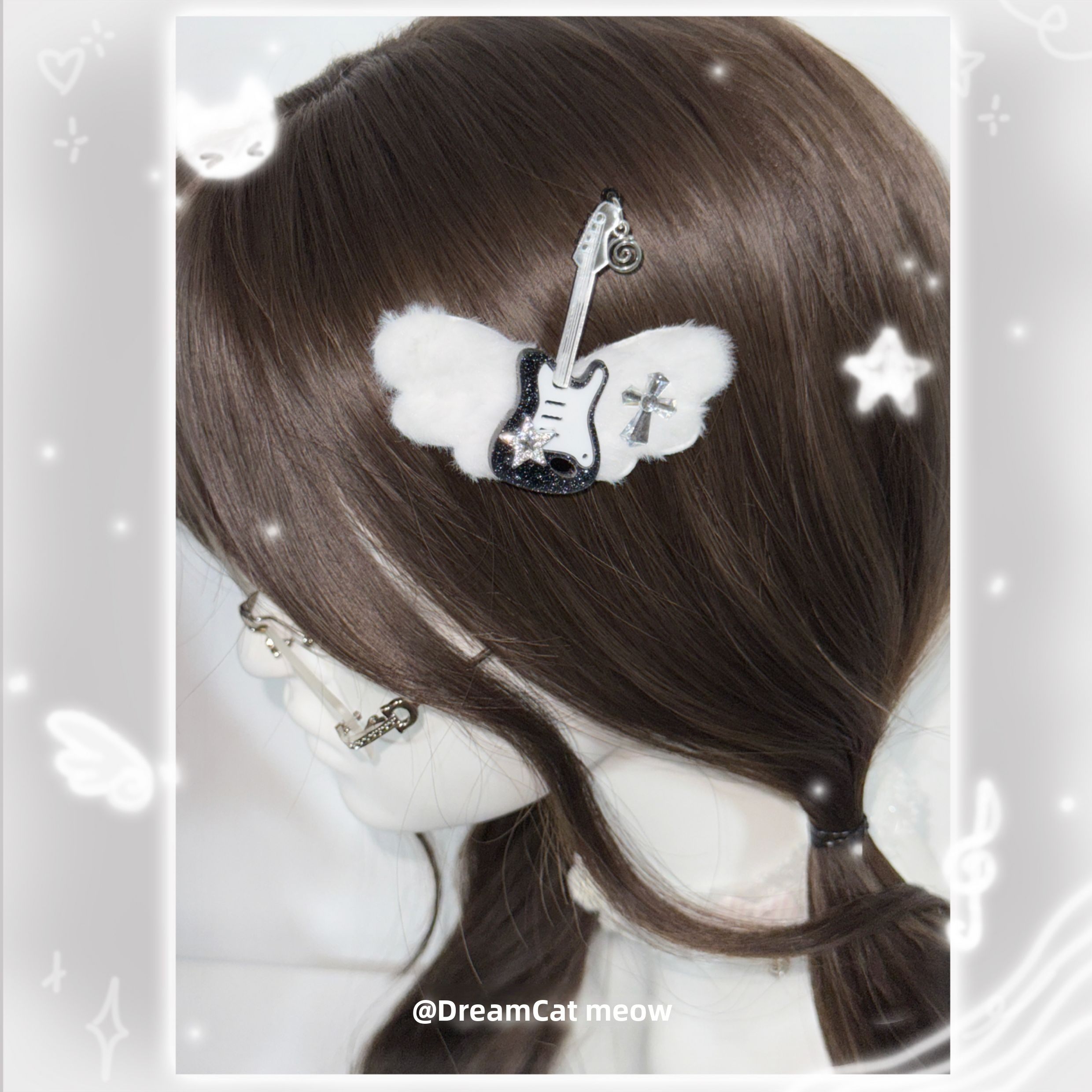 梦游小猫原创甜美星星吉他毛绒翅膀发夹侧边刘海夹亚文化y2k发饰 [Original Page Link]