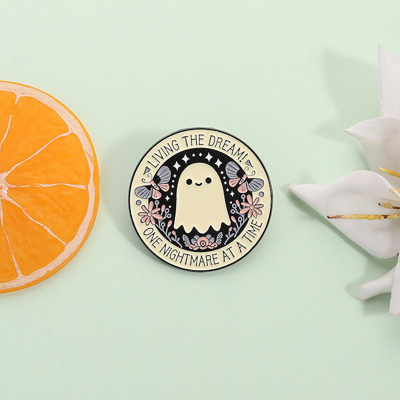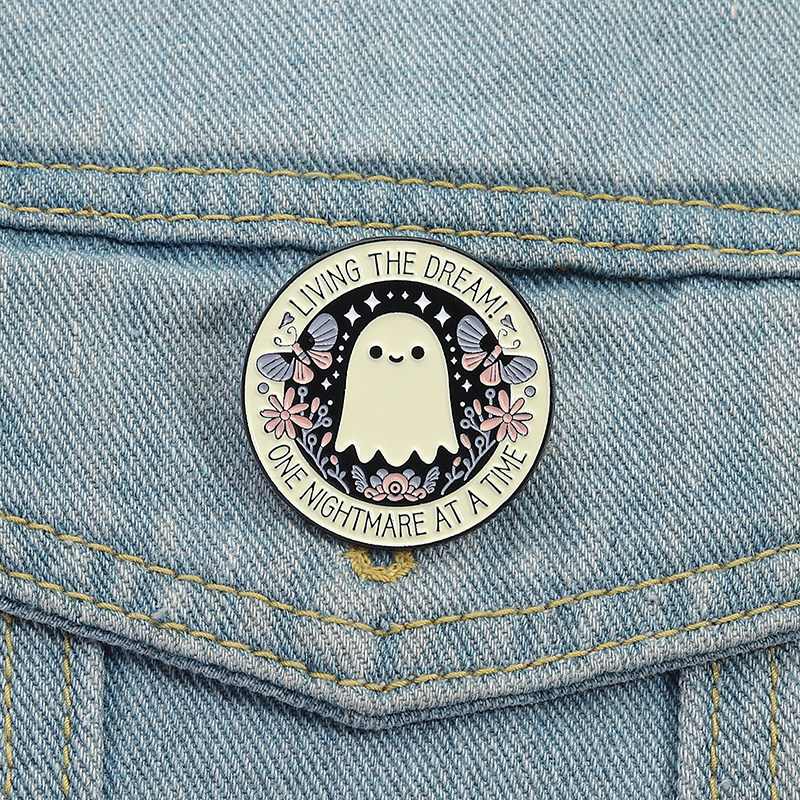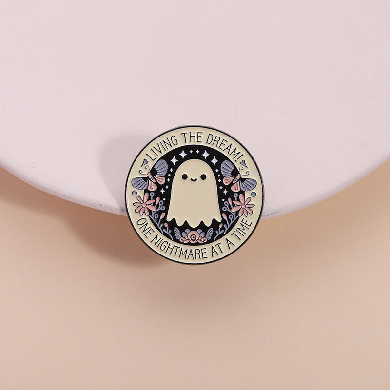 可爱花朵蝴蝶幽灵圆形合金胸针创意英文短句徽章pin服装配饰 [Original Page Link]