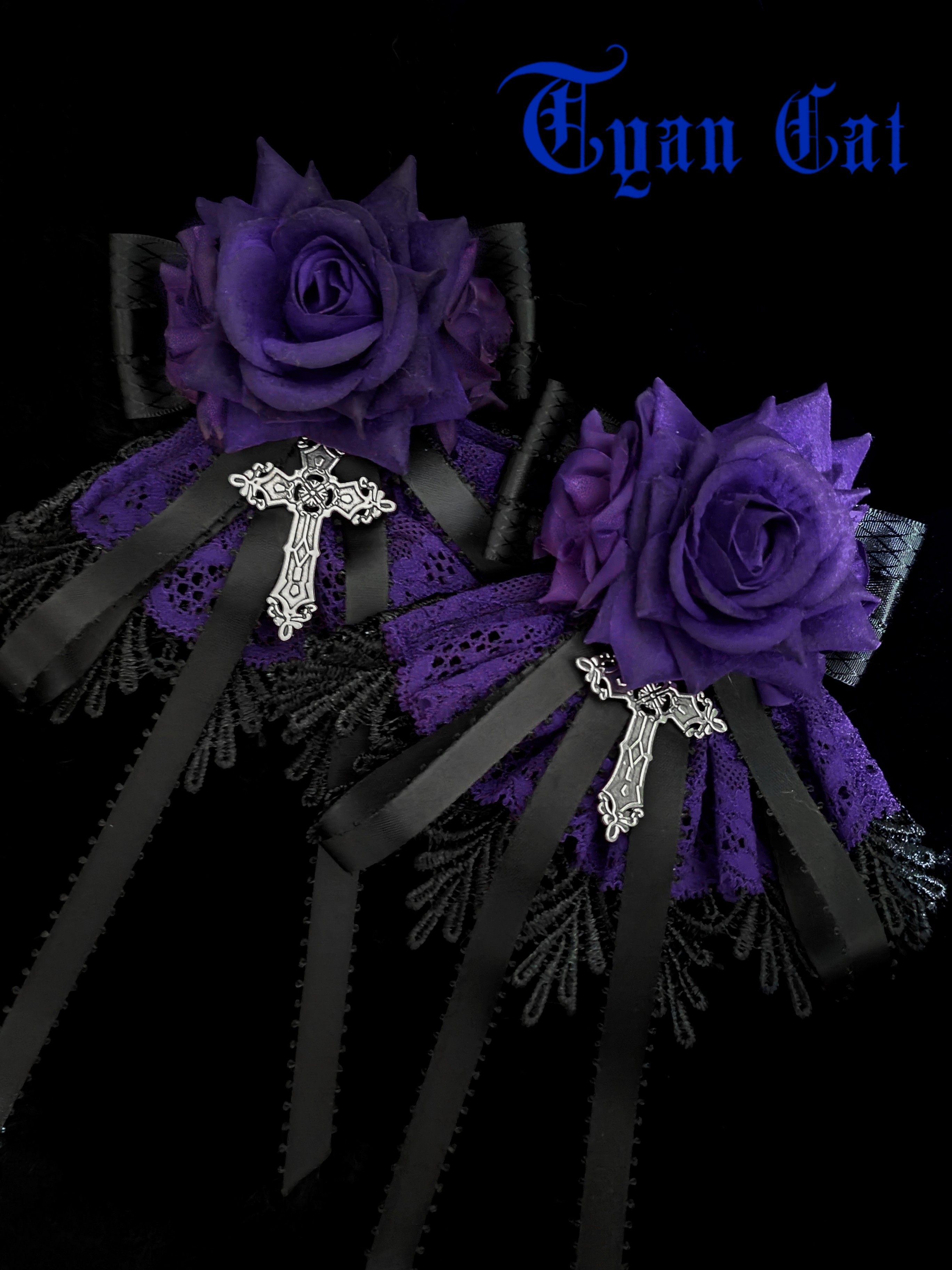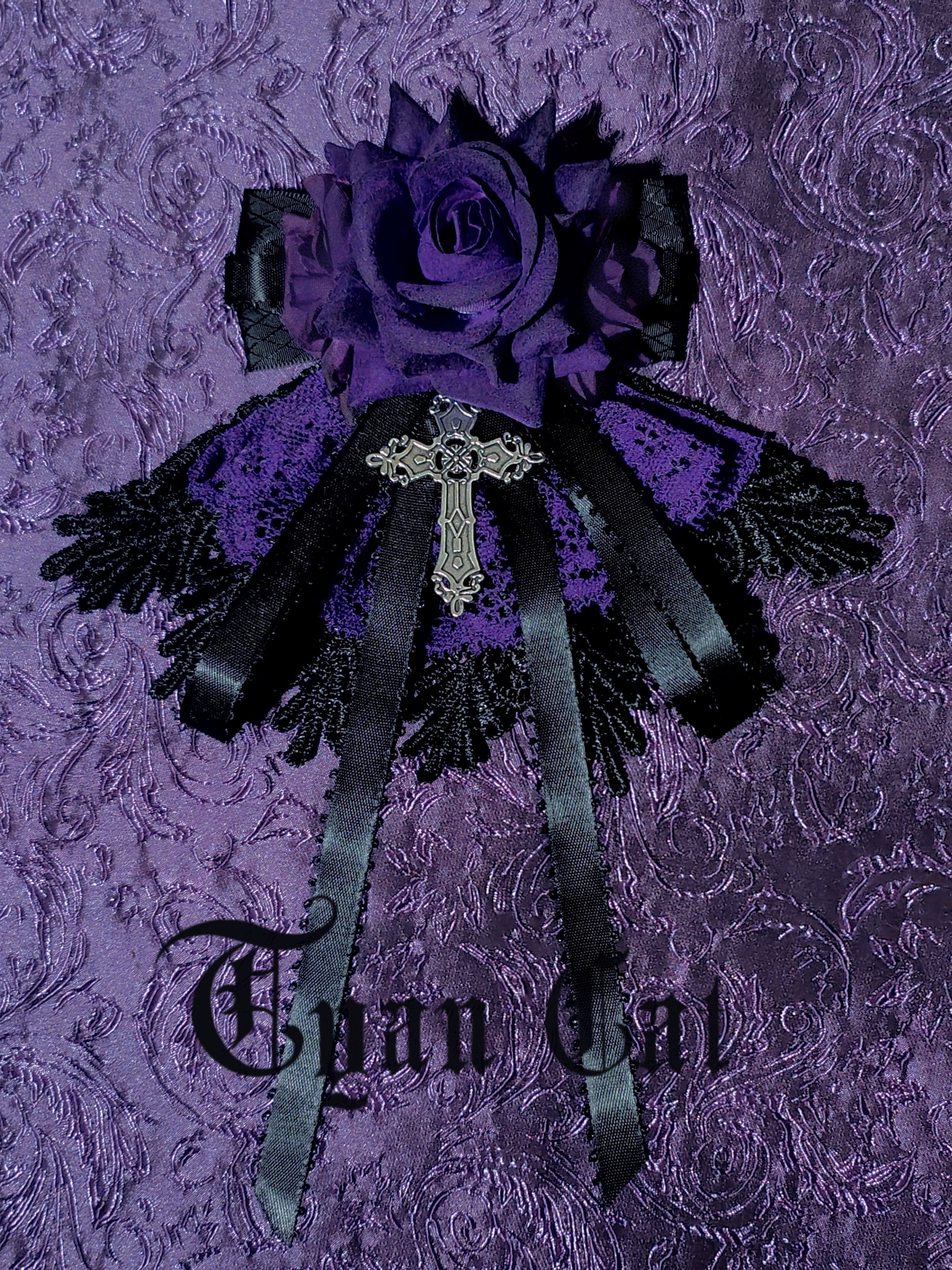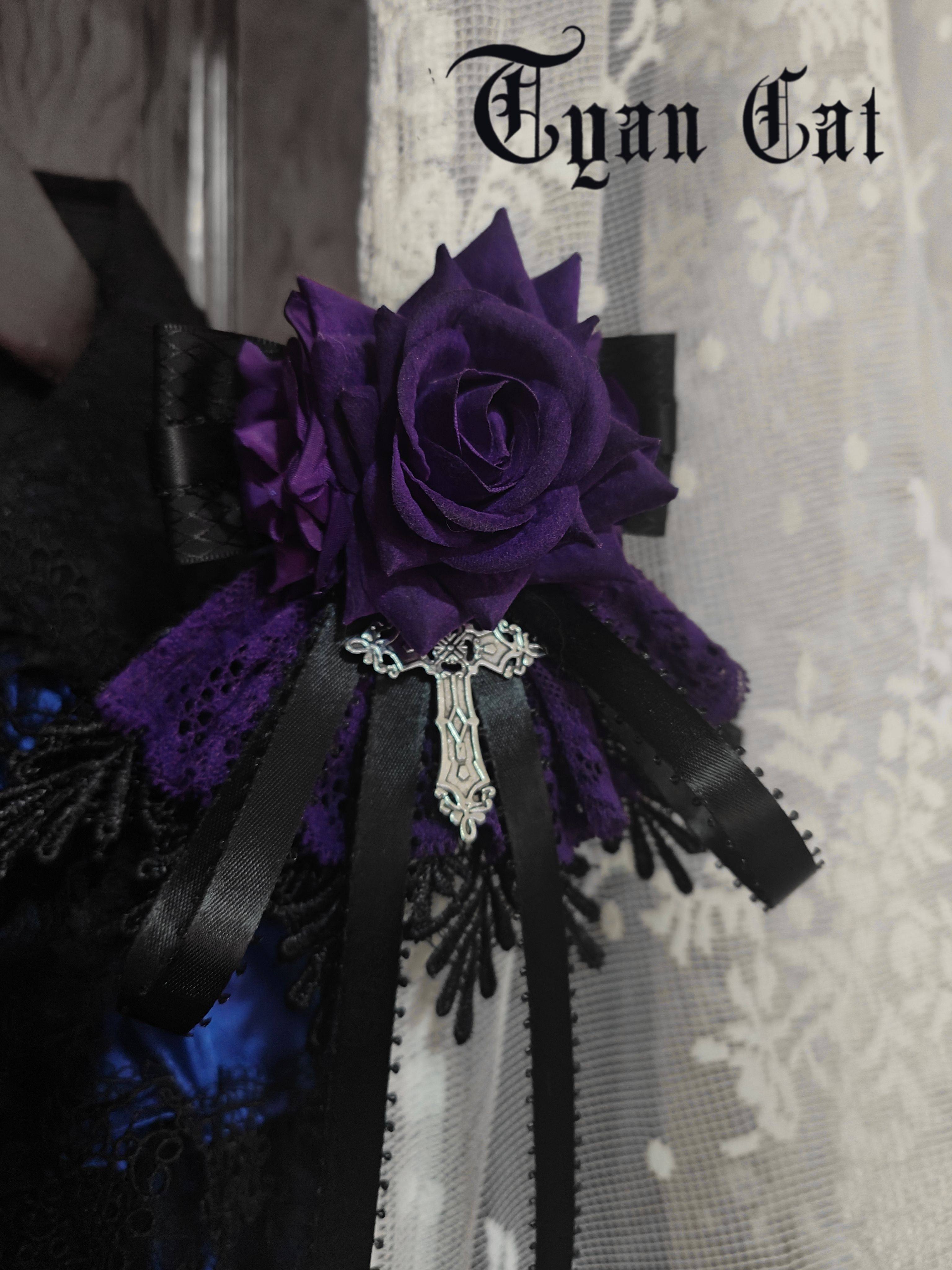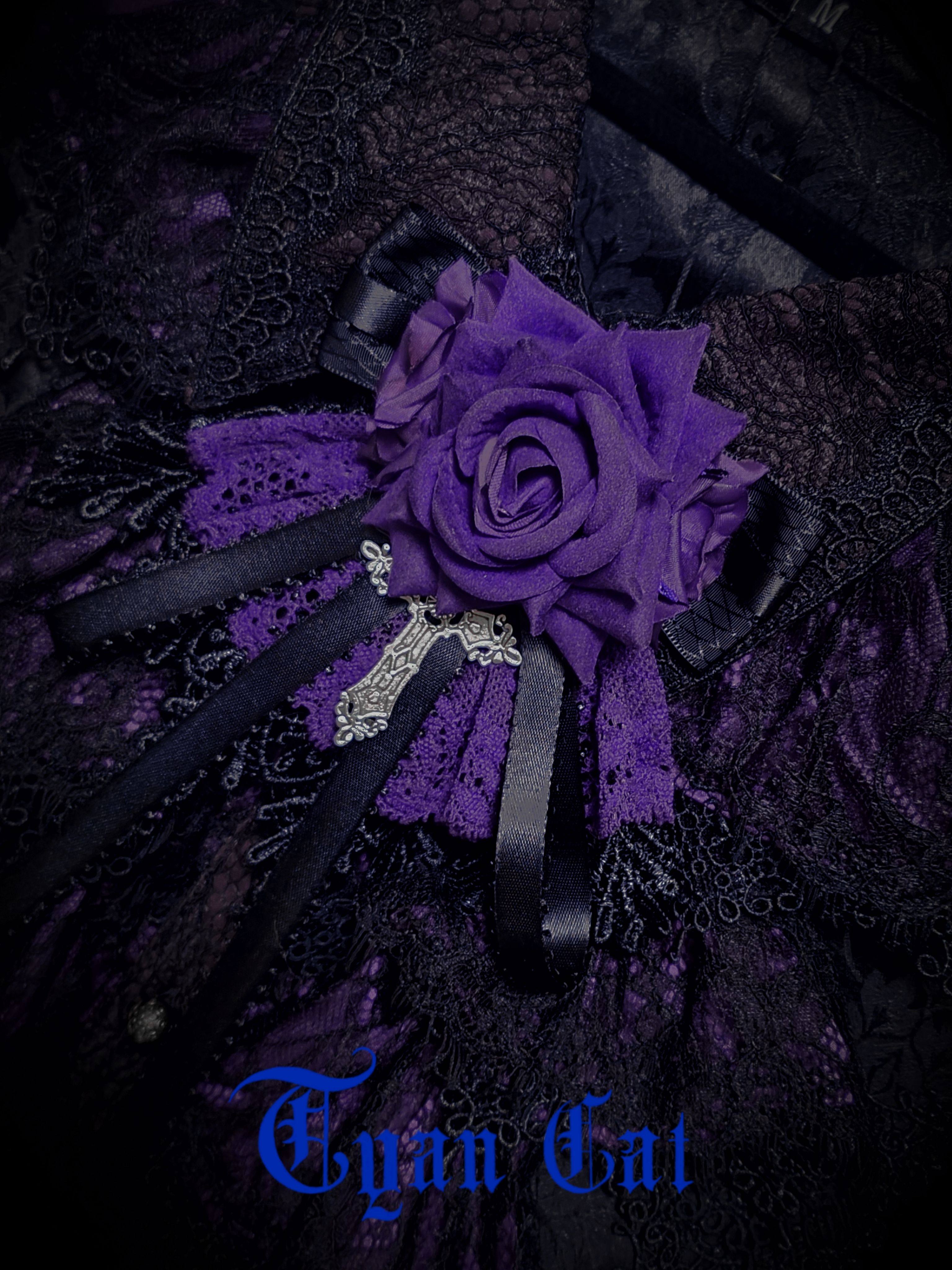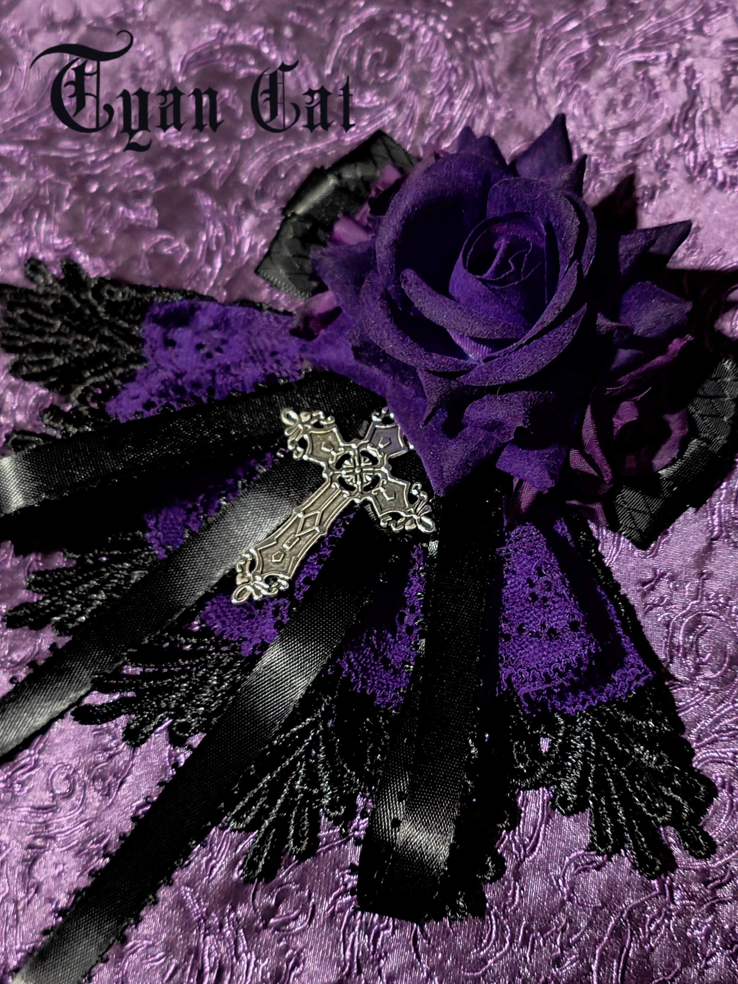 *cyan cat*黑紫玫瑰裙边花丸 领结两用 哥特Lolita手作 [Original Page Link]