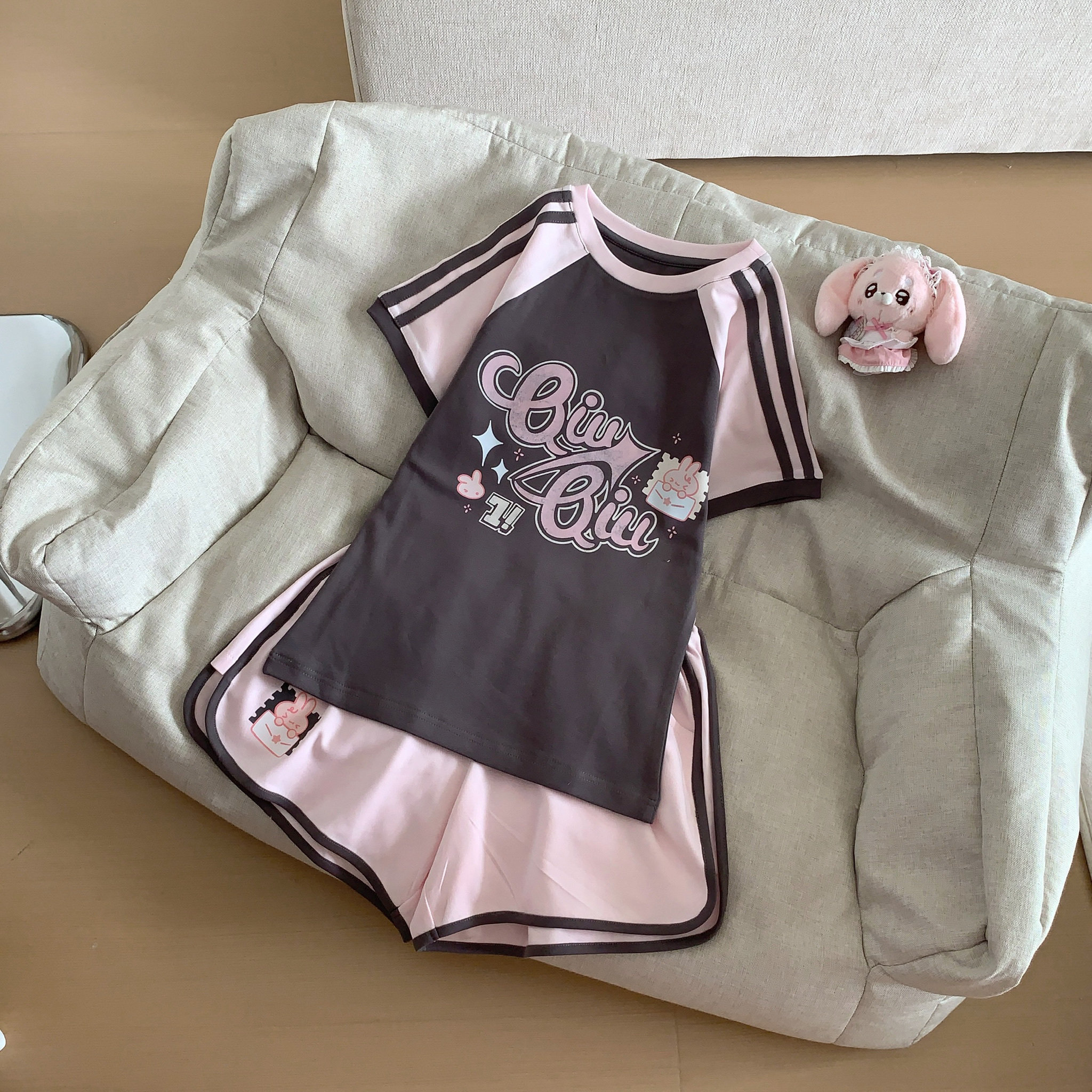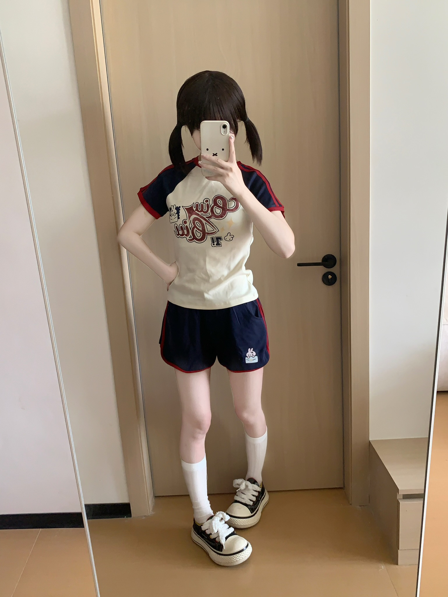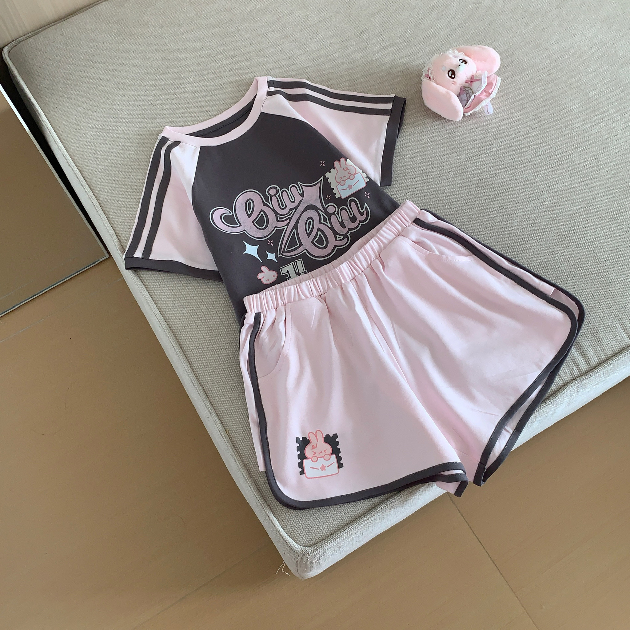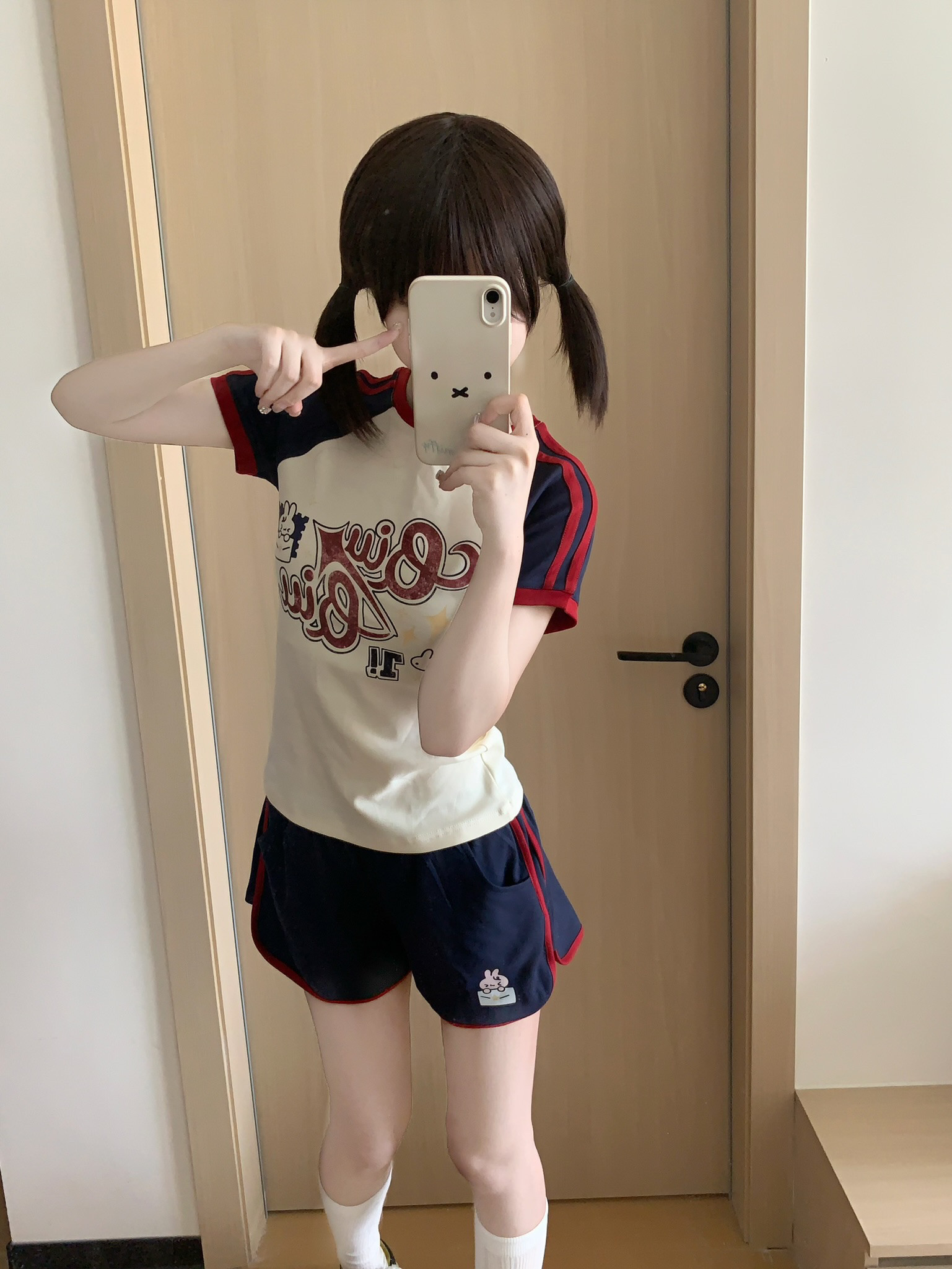 Qiuqiu's self-made sporty and versatile casual summer new slim fit cute short-sleeved shorts set