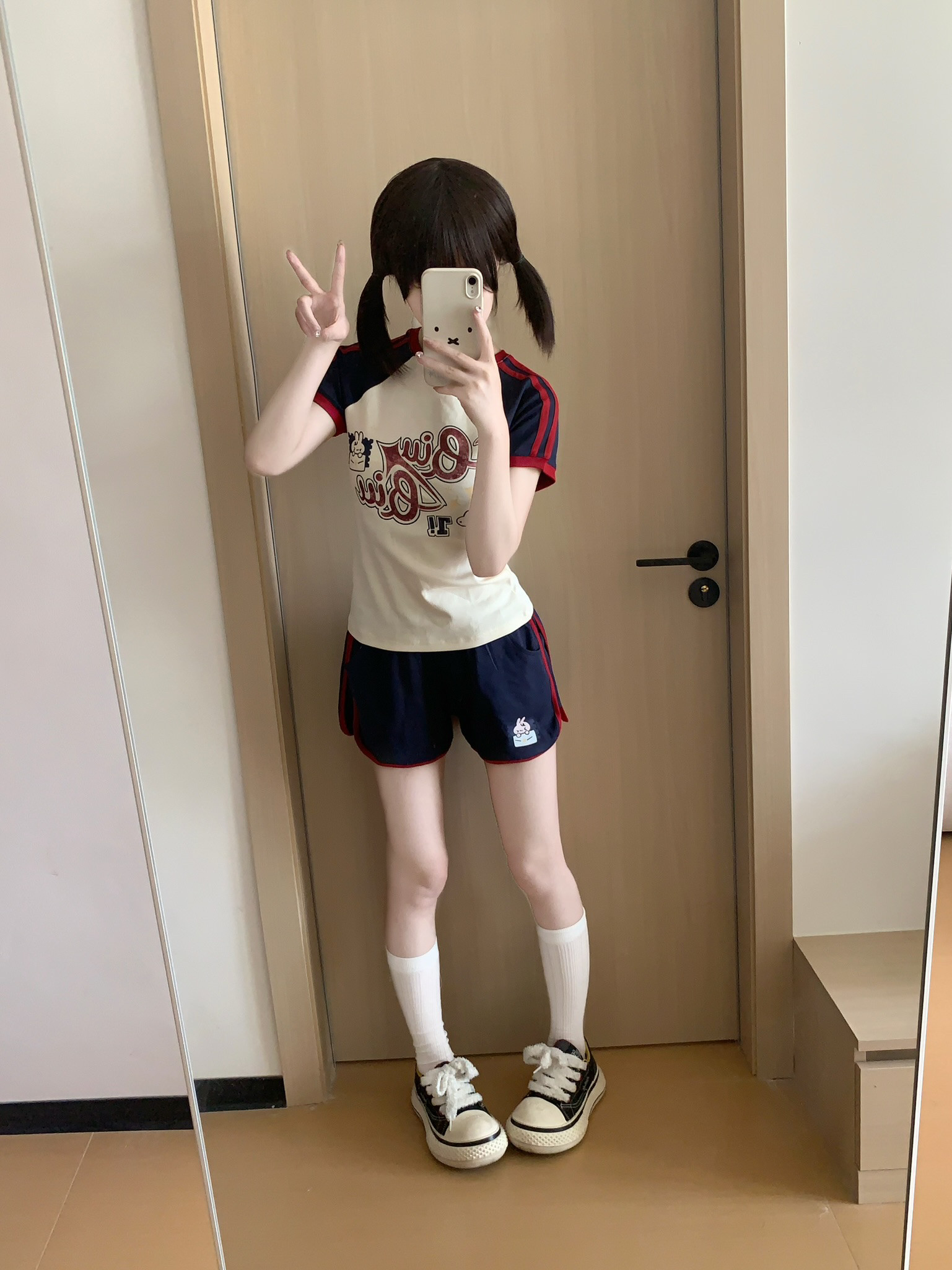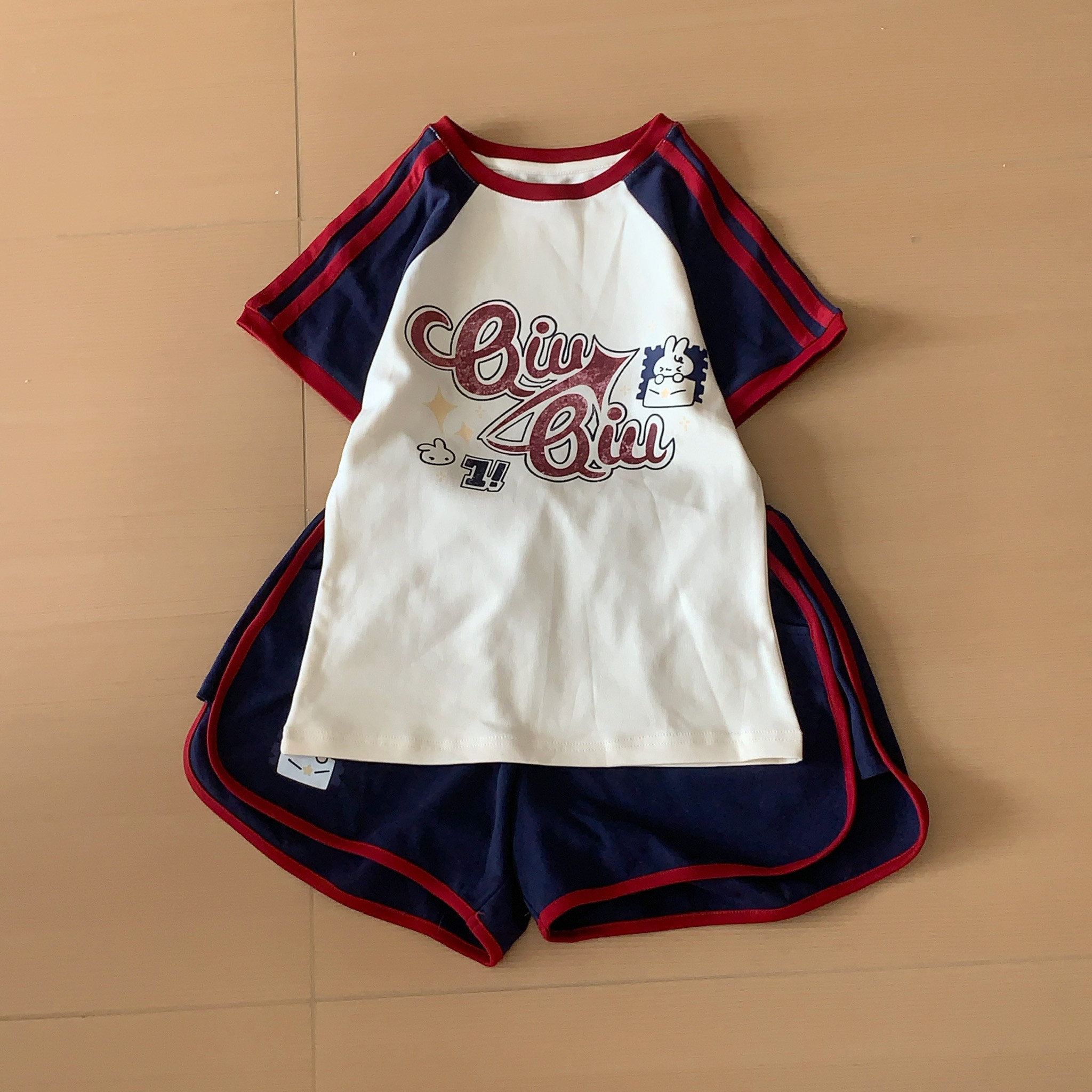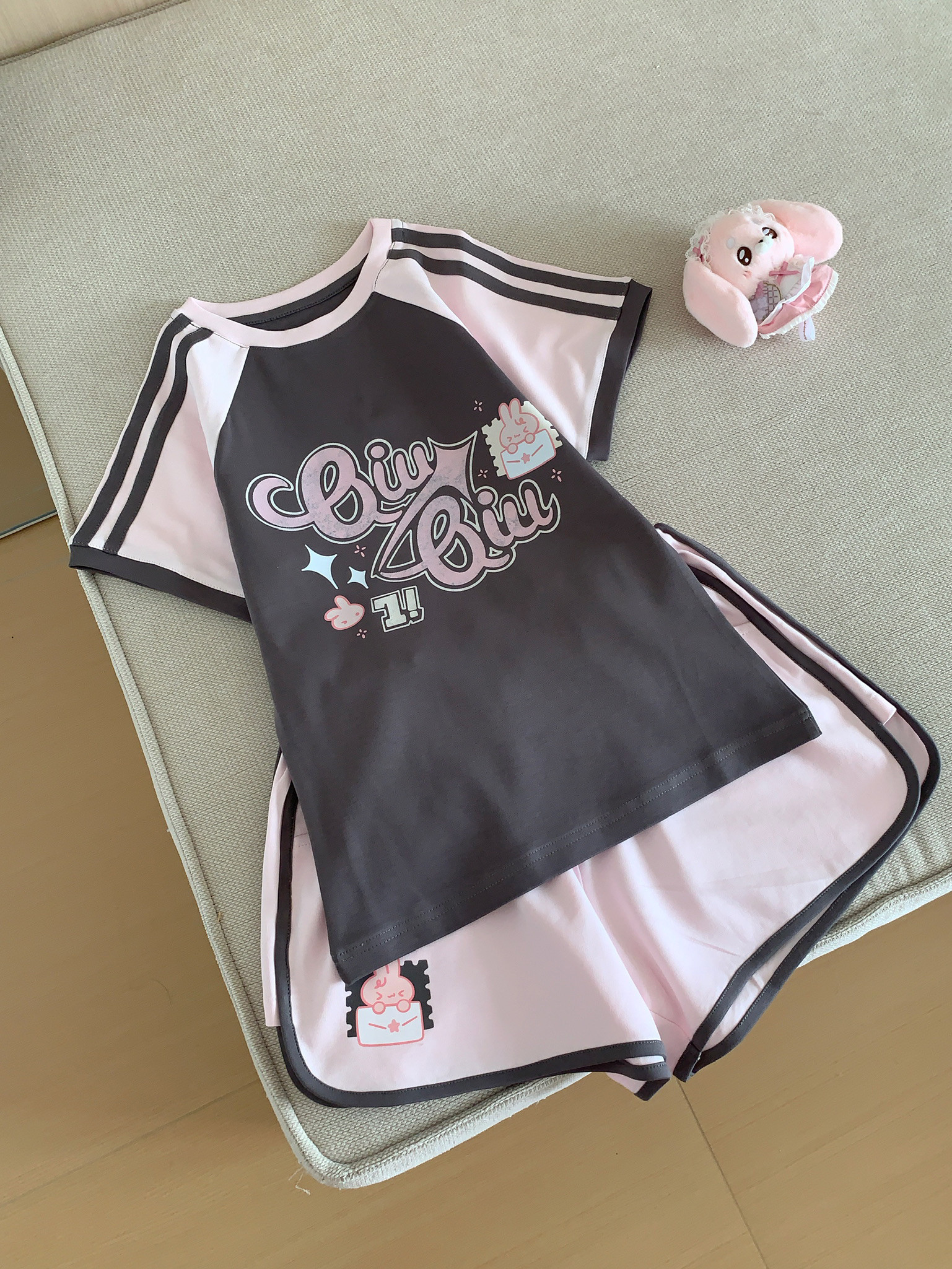 Qiuqiu's self-made sporty and versatile casual summer new slim fit cute short-sleeved shorts set