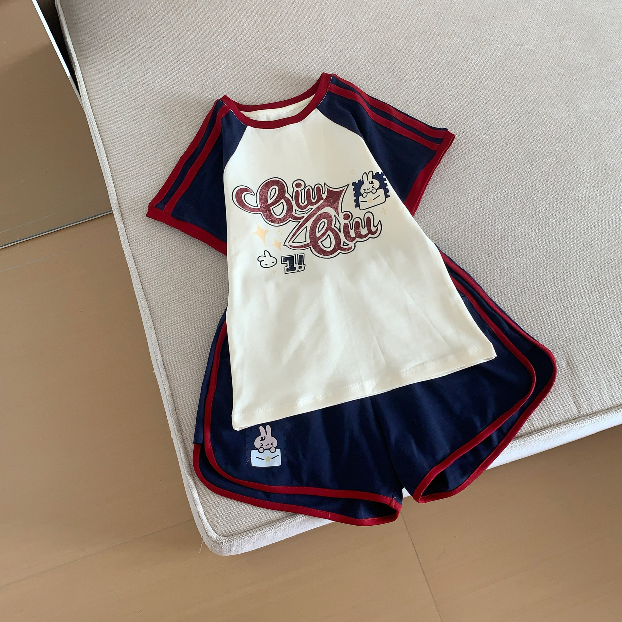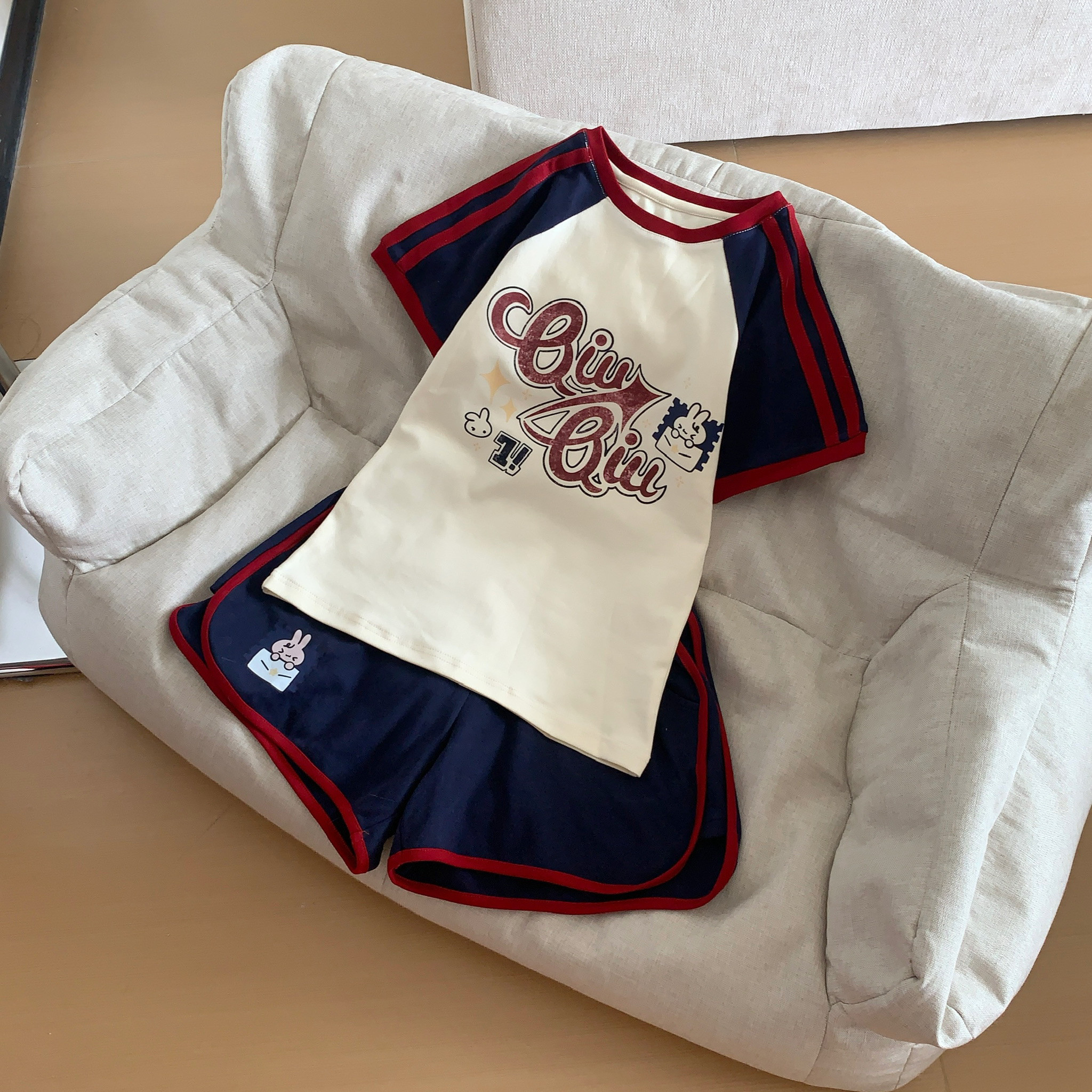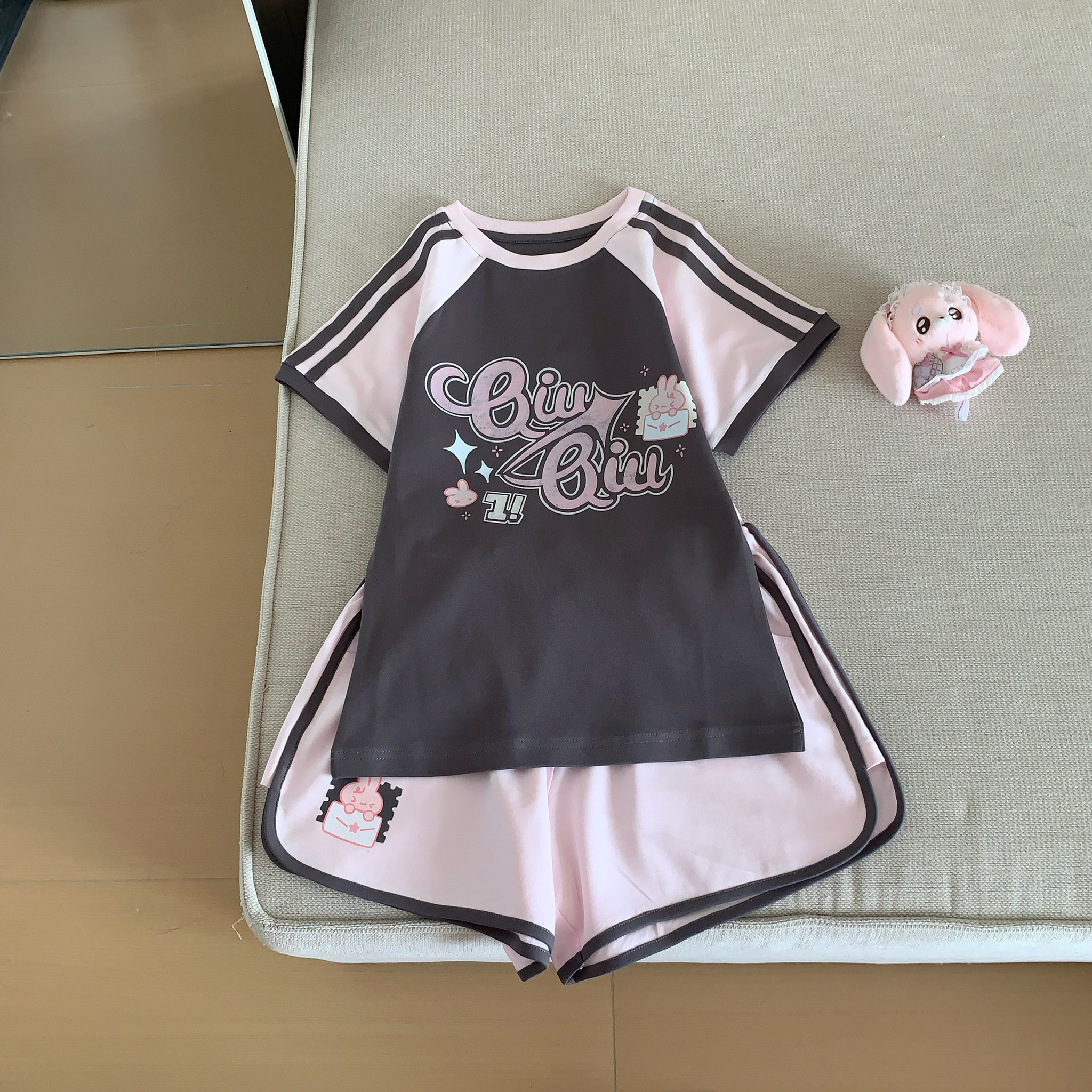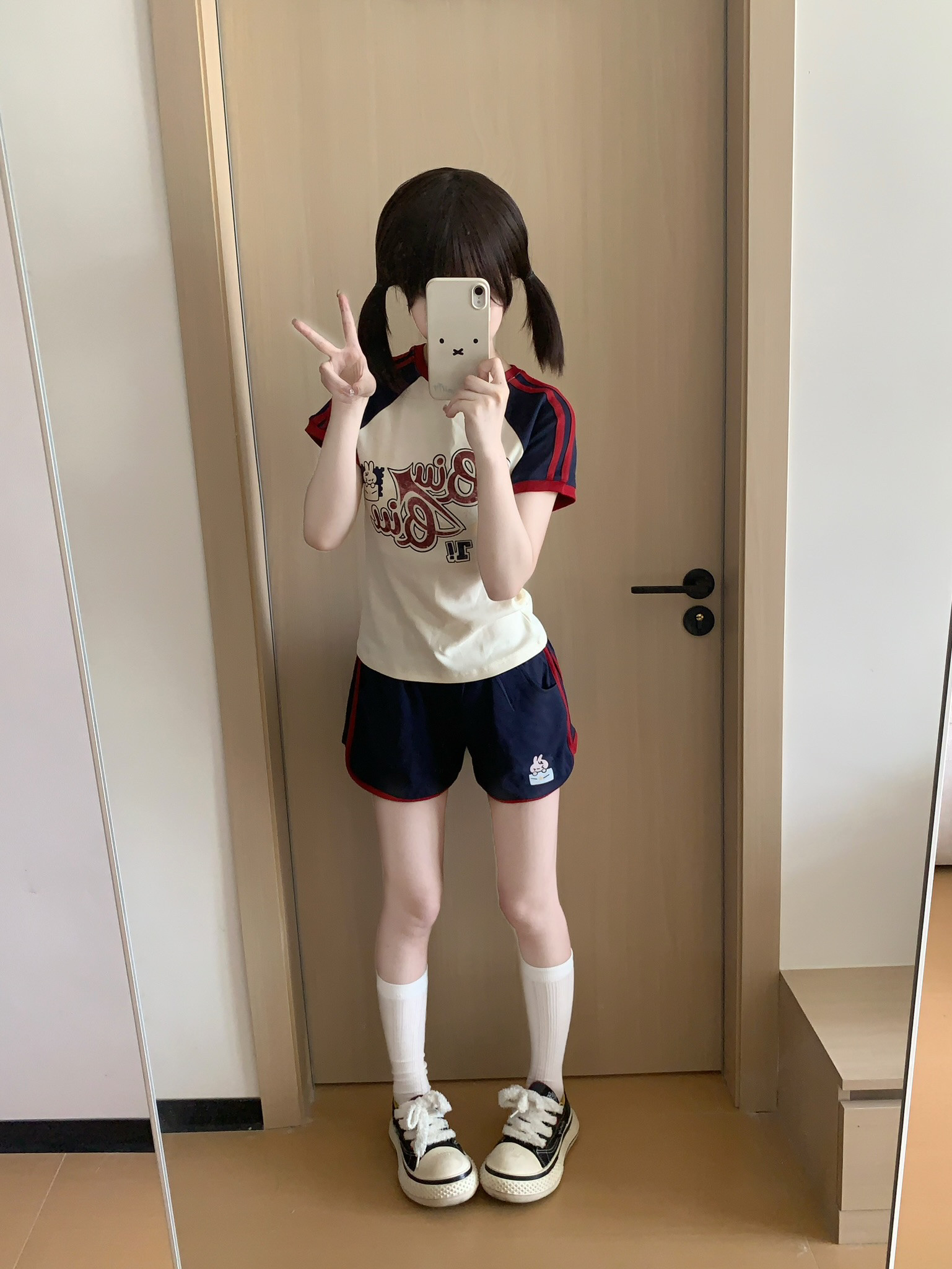 Qiuqiu's self-made sporty and versatile casual summer new slim fit cute short-sleeved shorts set