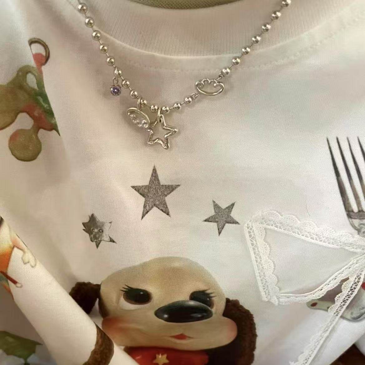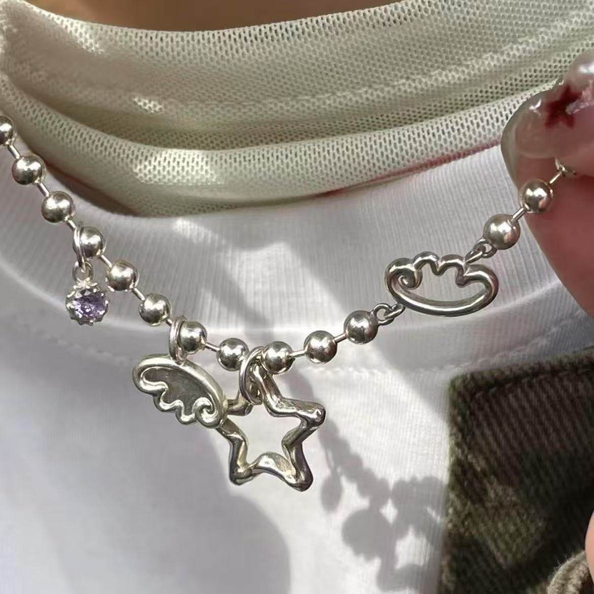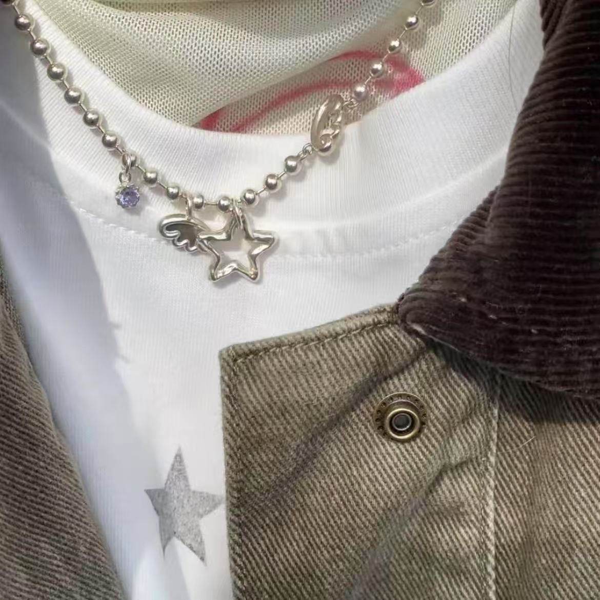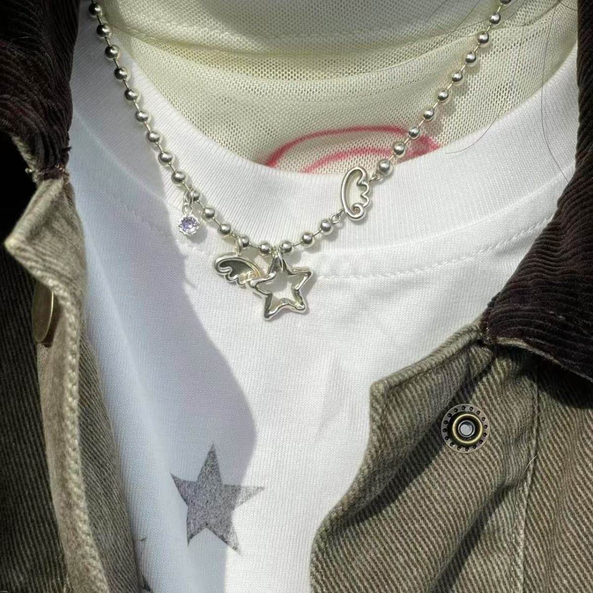Sweet and cool wing star beaded necklace for women, a unique French-style light luxury retro minimalist necklace.