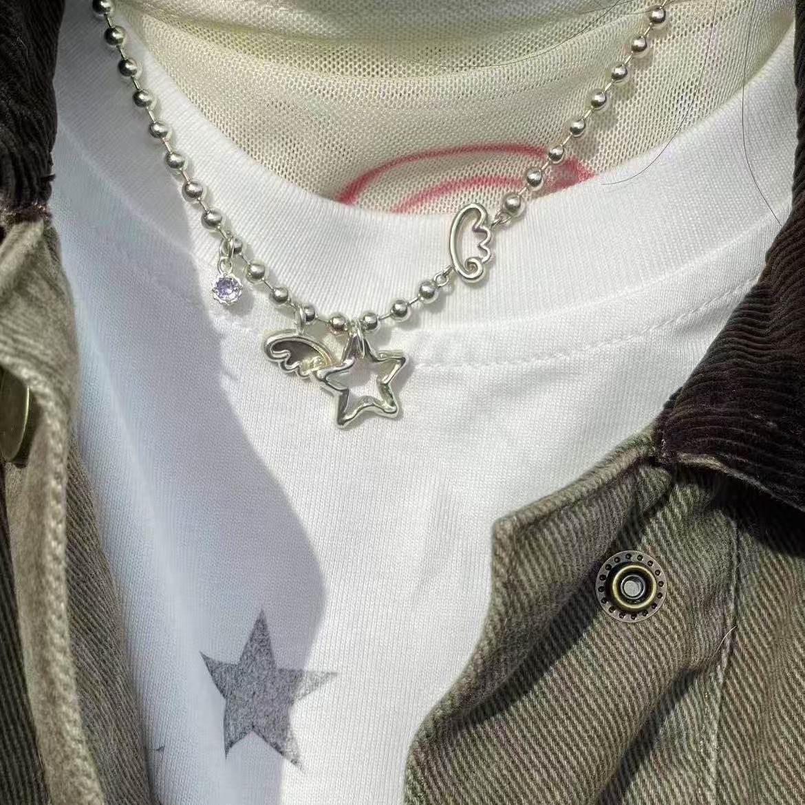 甜酷翅膀星星串珠项链女百塔小众锁骨链法式轻奢复古冷淡风项饰品 [Original Page Link]