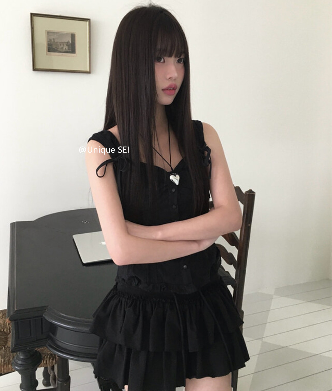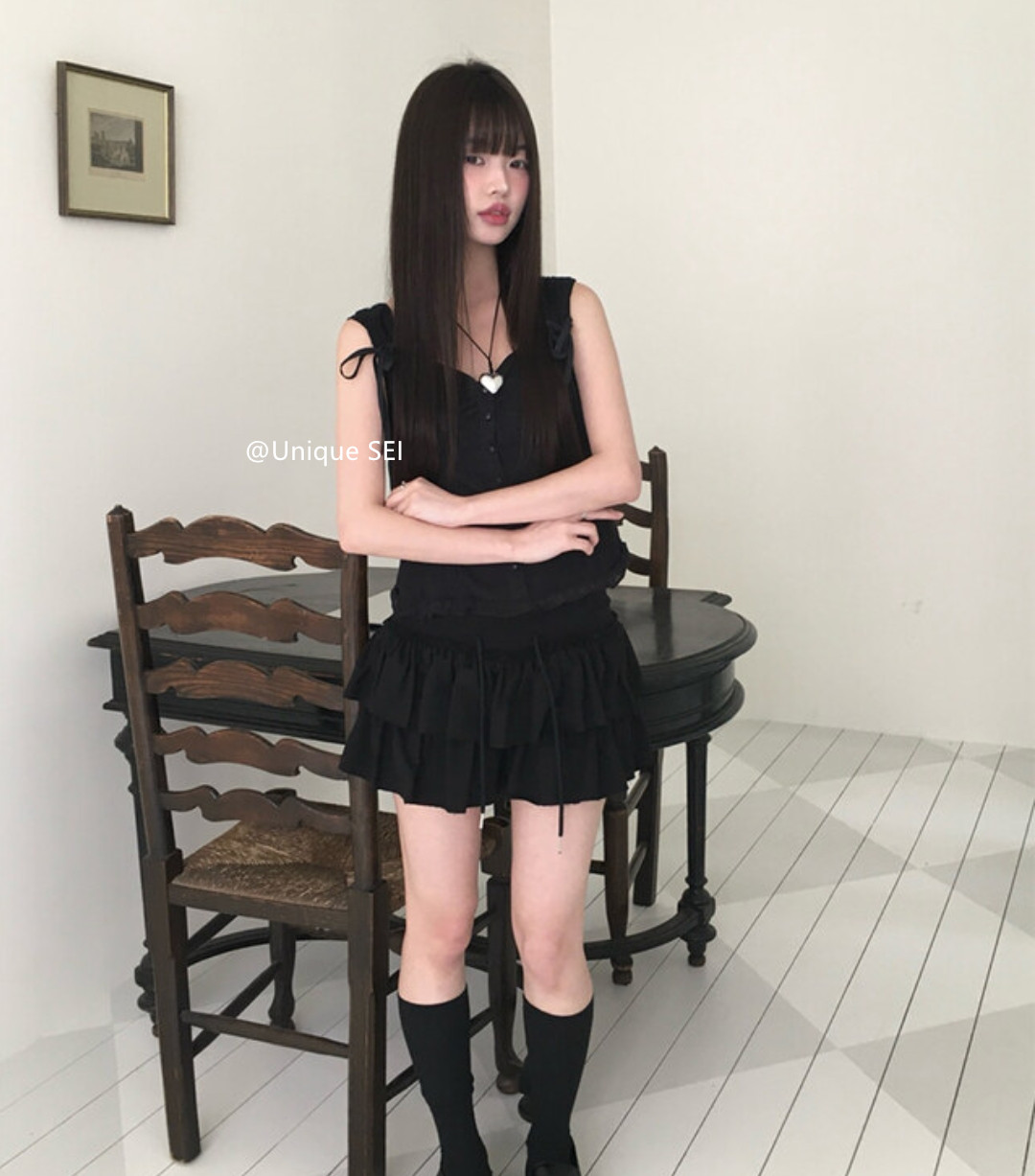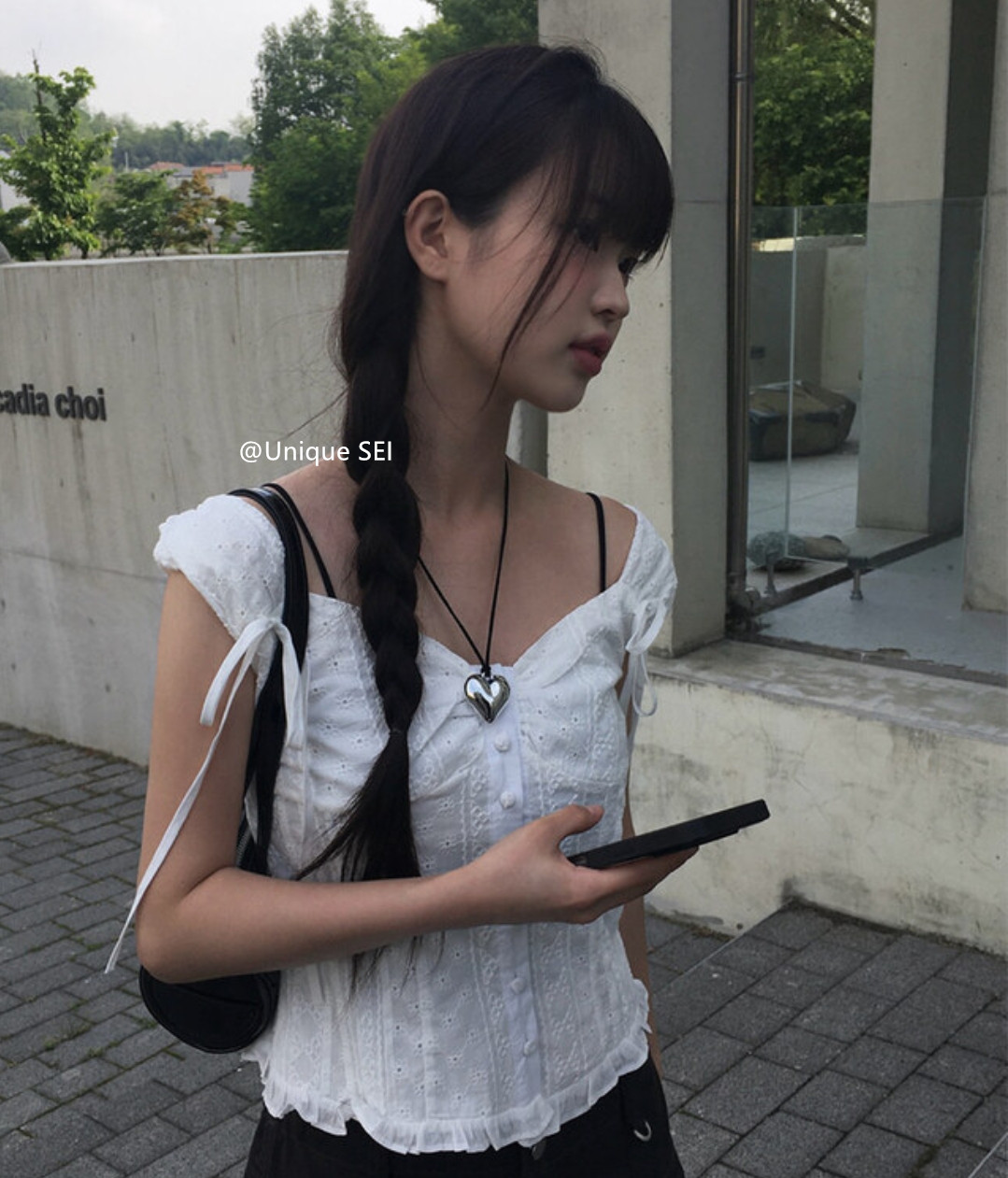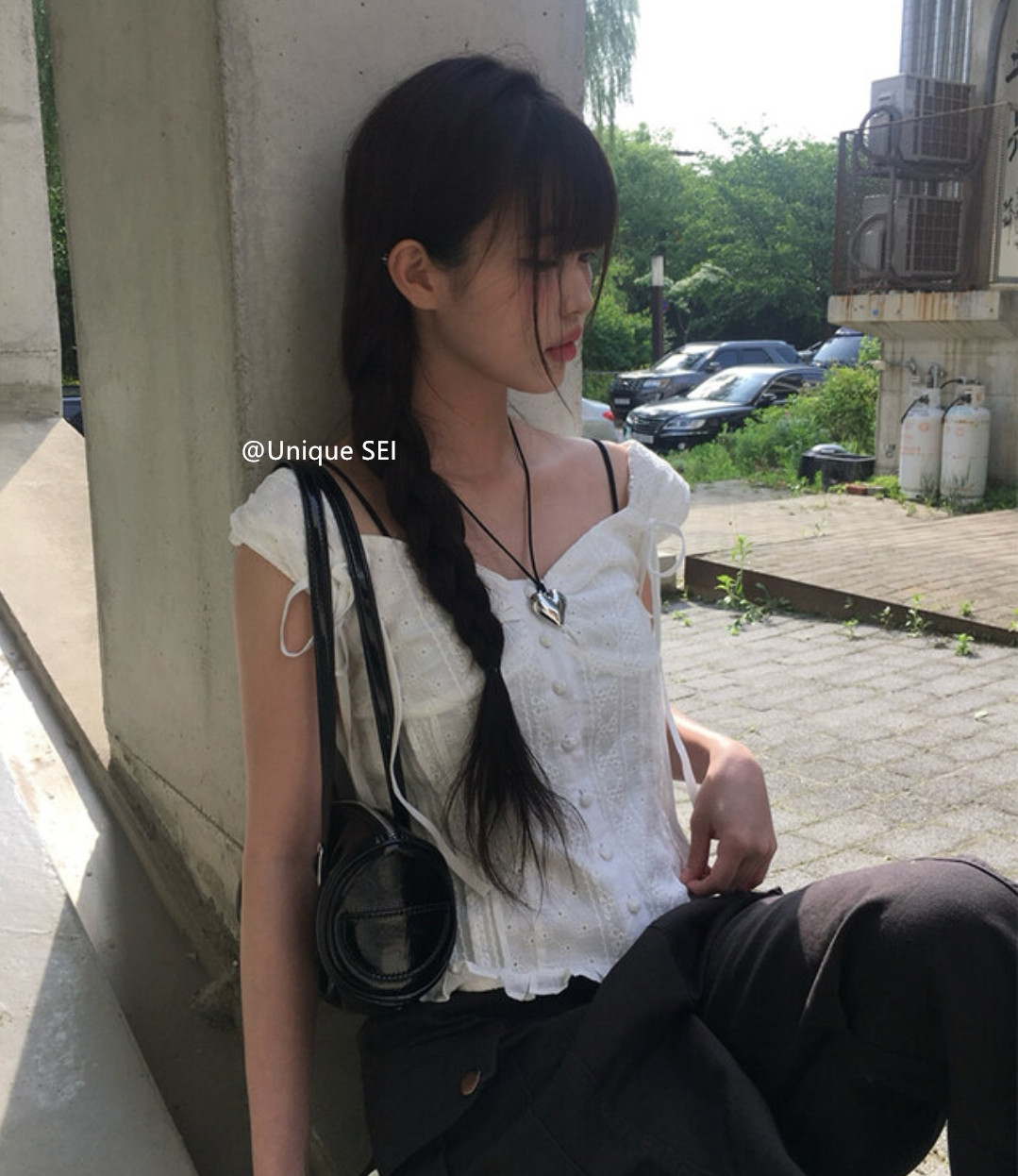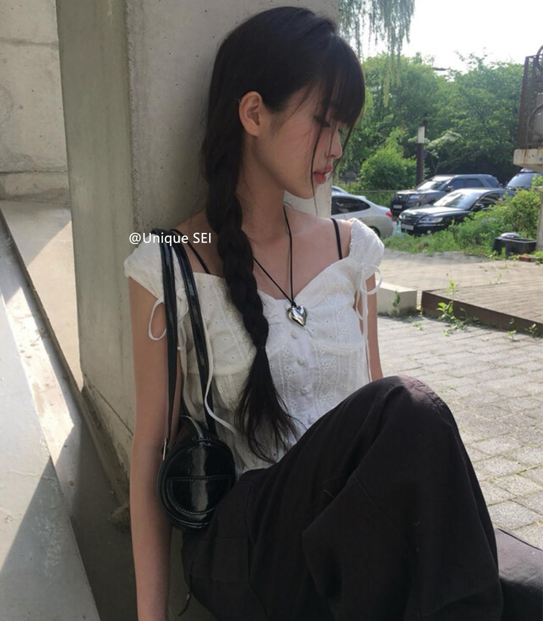 Unique SEI 韩系夏季木耳边系带镂空显瘦衬衫背心上衣/直筒工装裤 [Original Page Link]