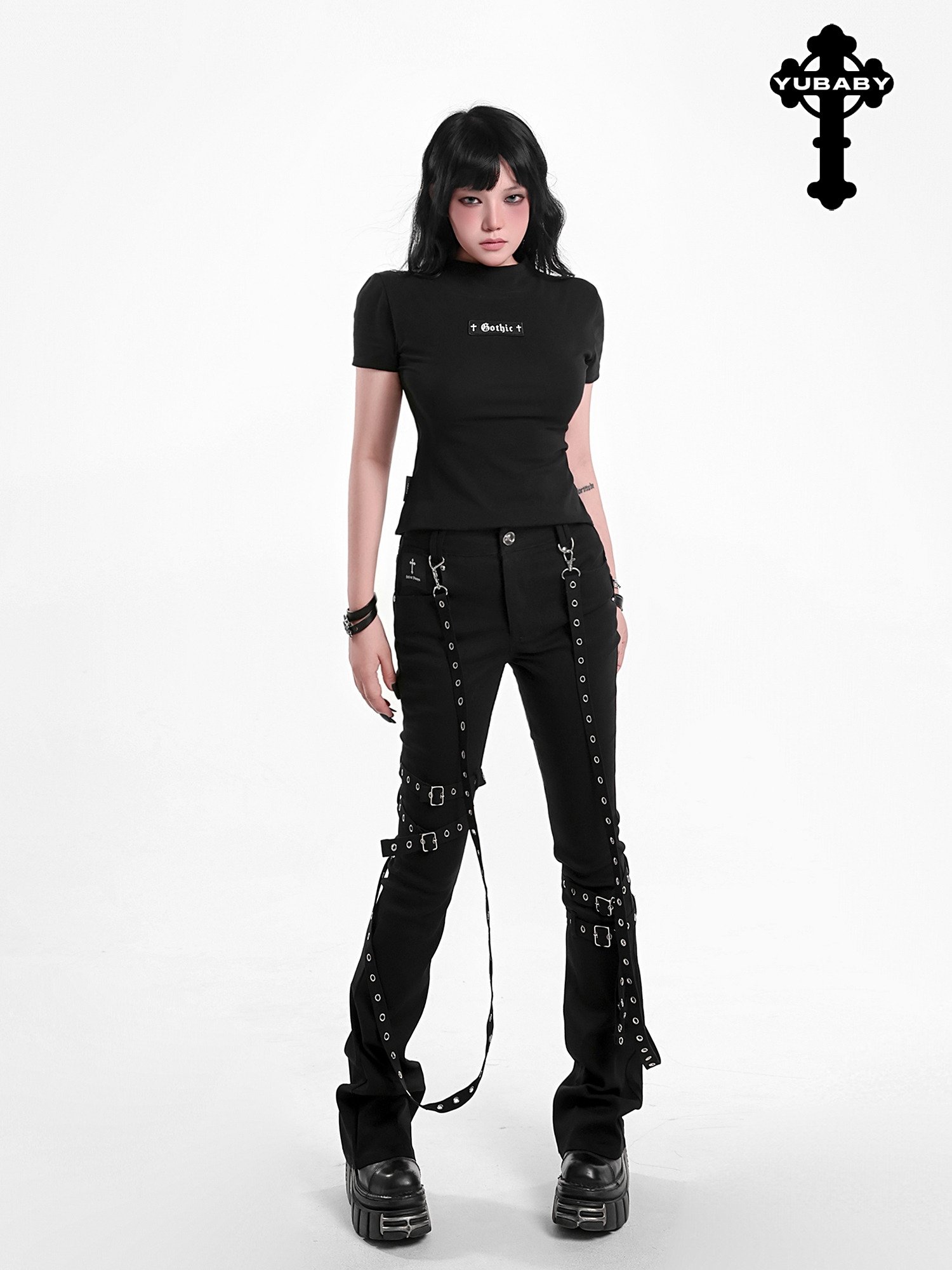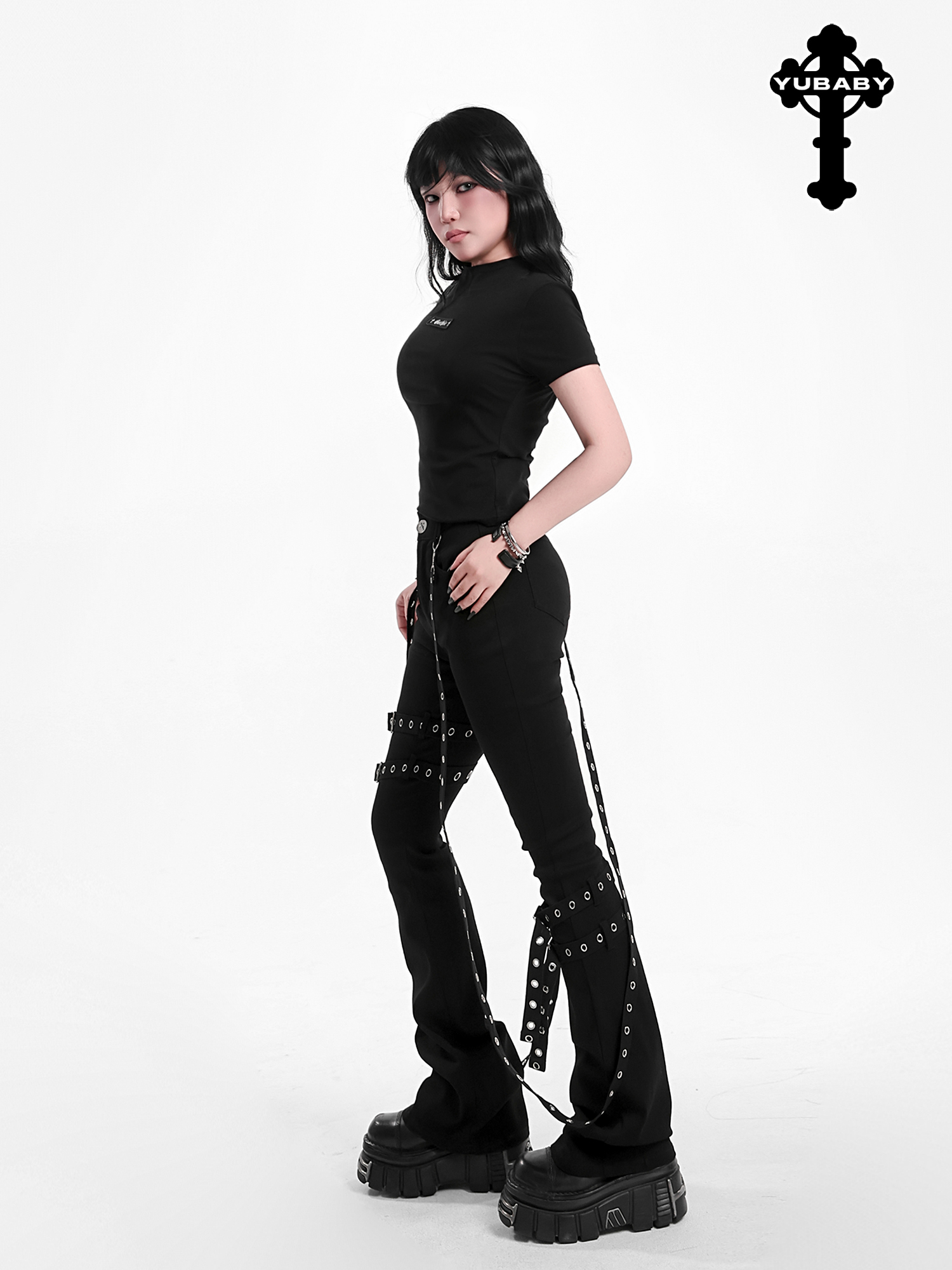 YUBABY原创抱婴袋绑带可拆卸个性哥特暗黑高弹力裤微喇叭裤显瘦长裤 [Original Page Link]