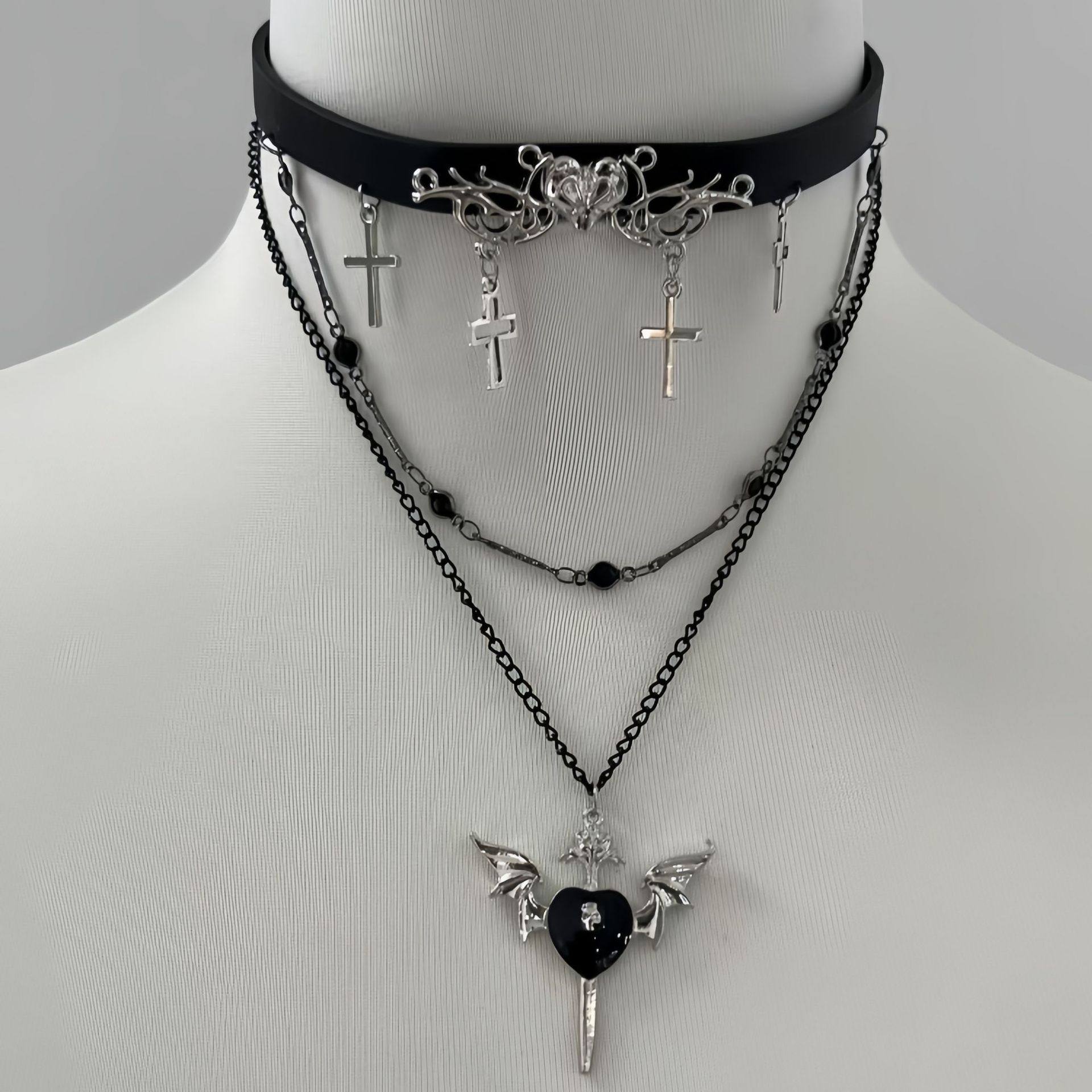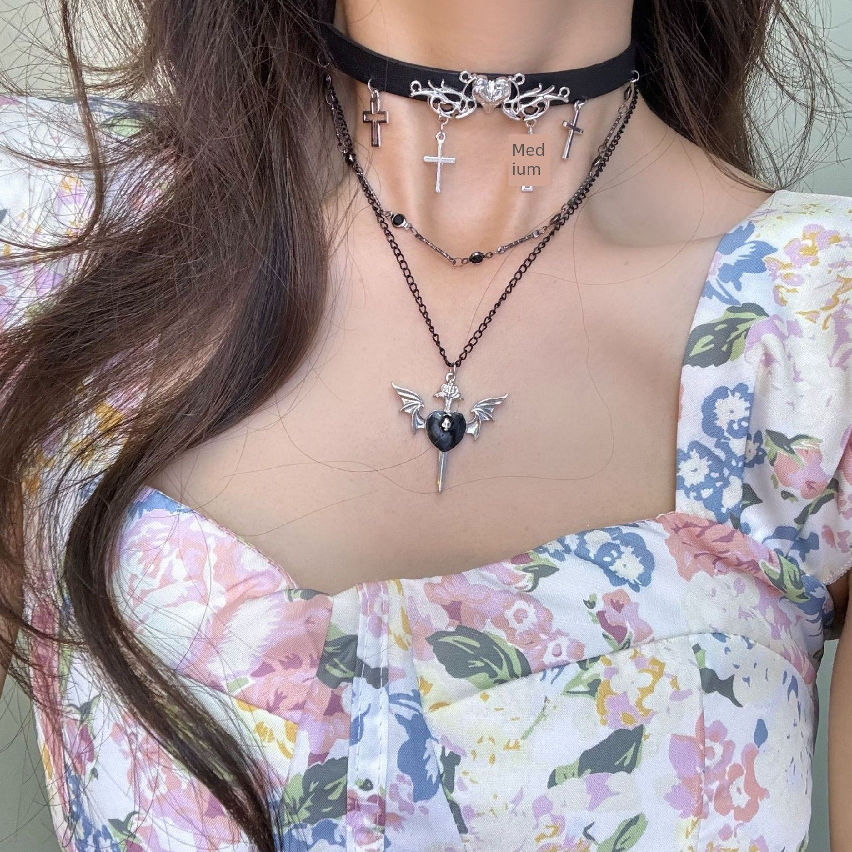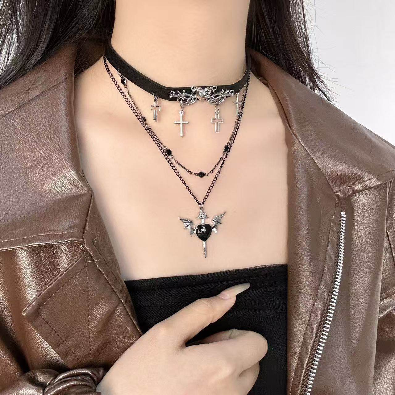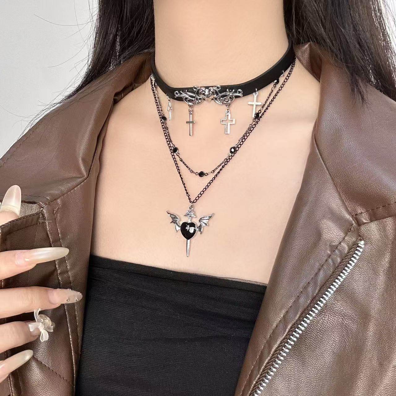 Y2K Spade Devil Stacked Necklaces: Spicy Girl, Sweet and Cool, Subculture, Punk, Landmine, Vintage Atmosphere, Dark Trend