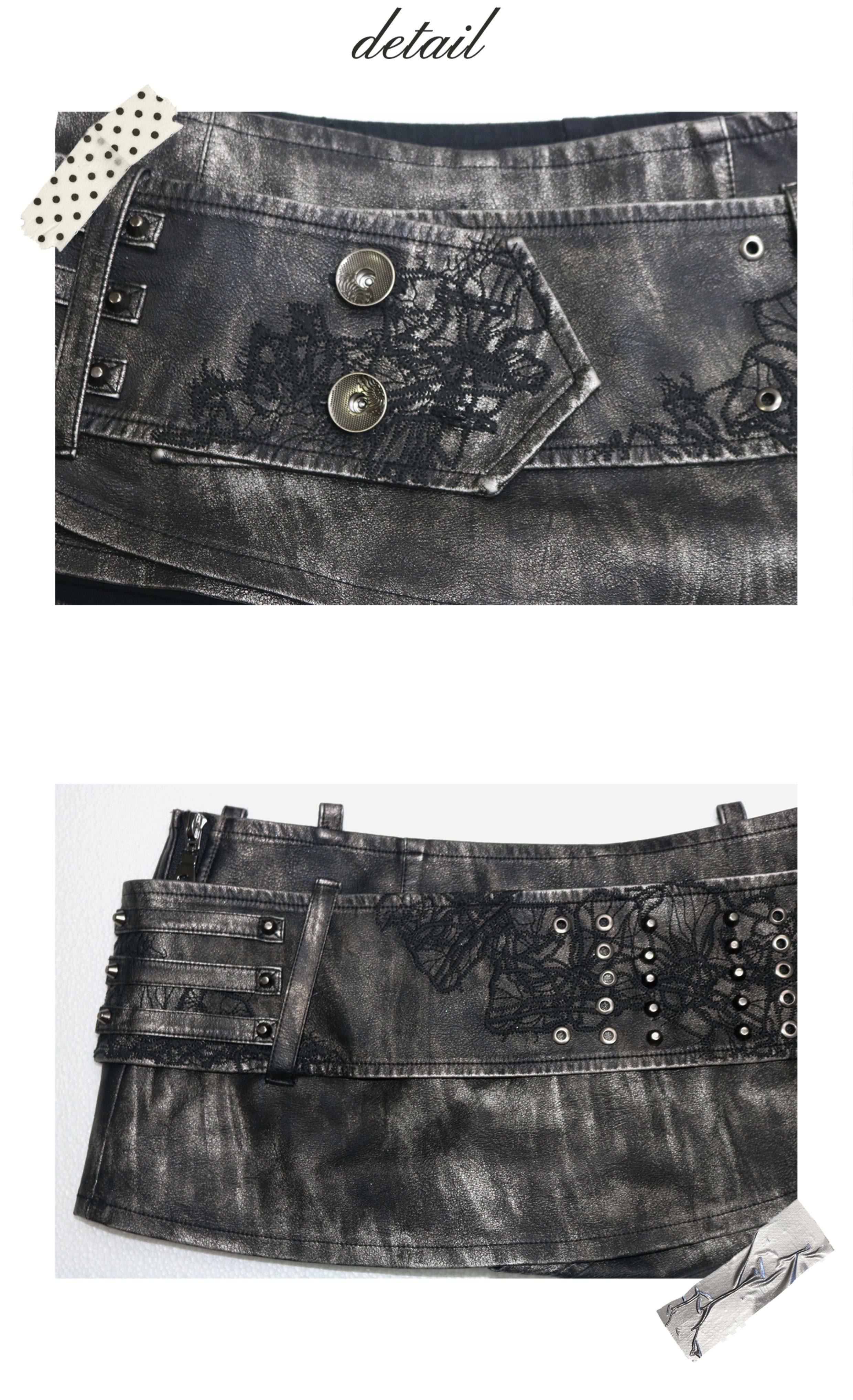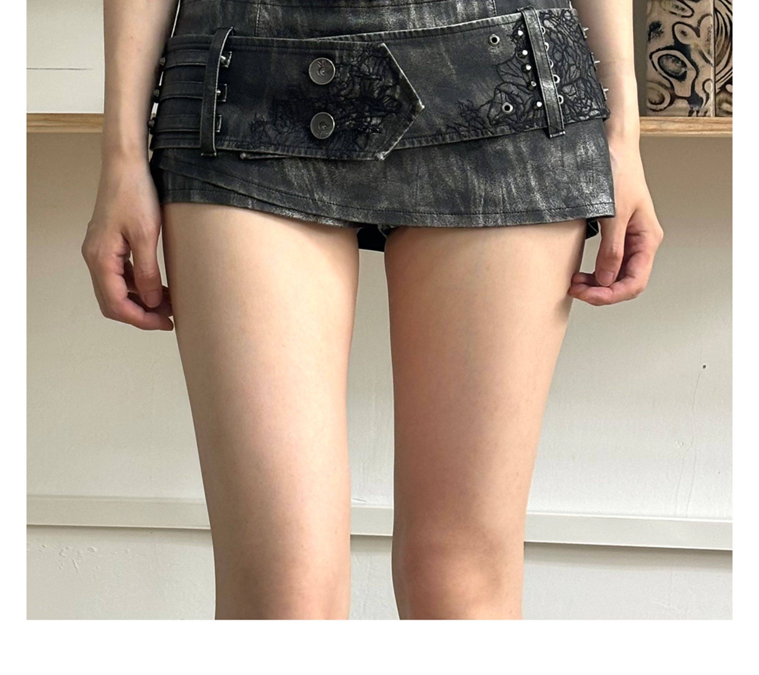 OPEN AESTHETIC 25SS 金属朋克重工铆钉刺绣腰带洗水皮革短裙裤 [Original Page Link]