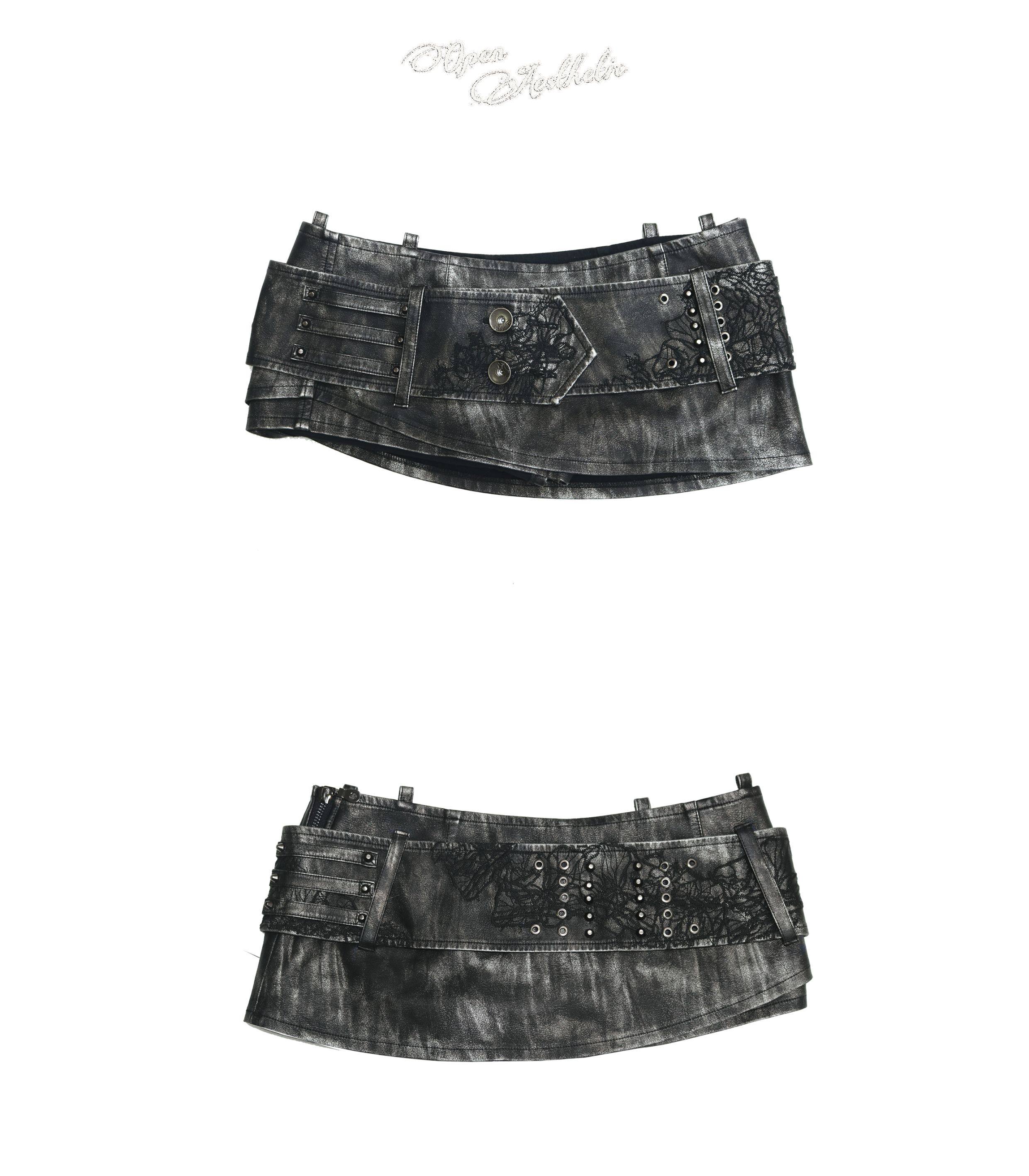 OPEN AESTHETIC 25SS Metal Punk Heavy Rivet Embroidery Belt Washed Leather Short Skort