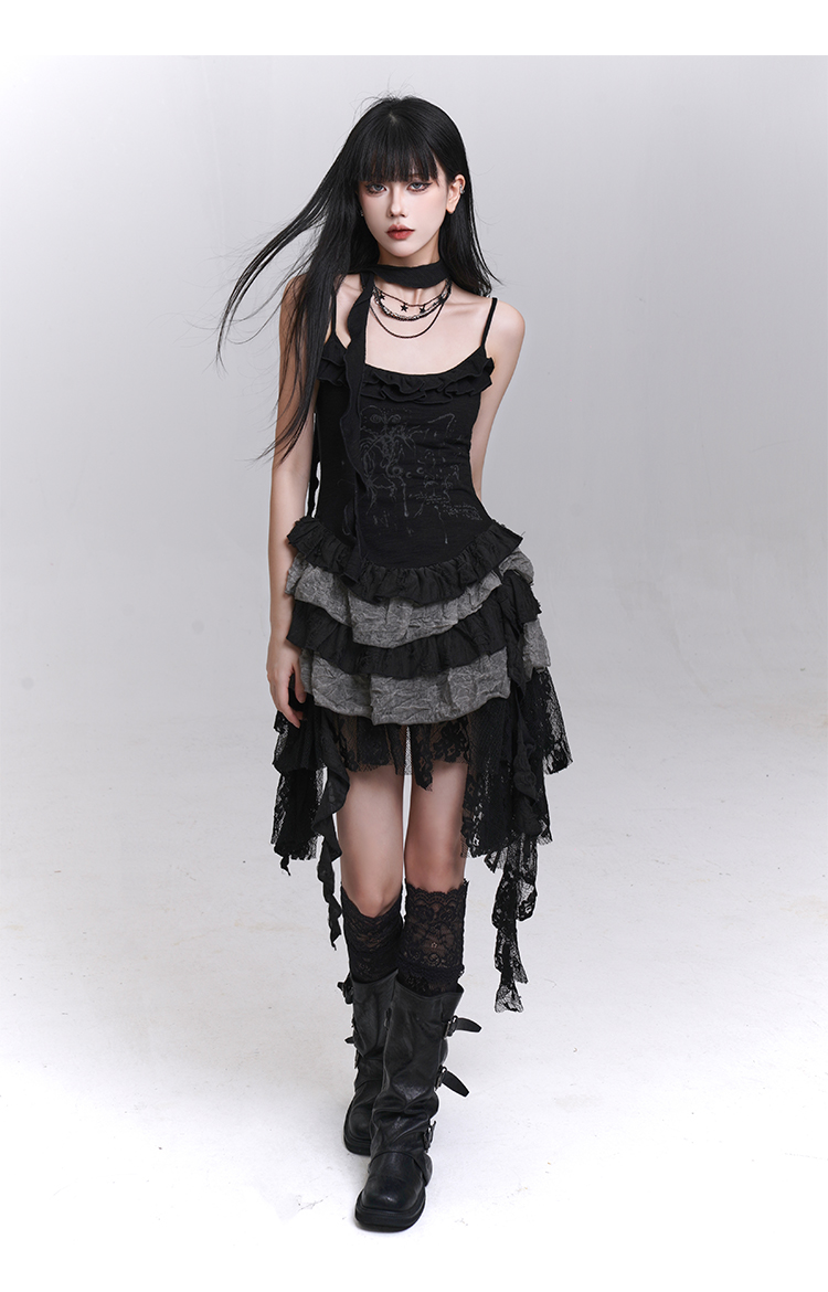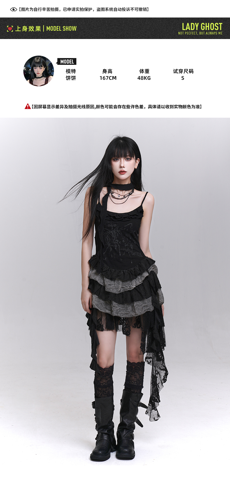 幽灵少女黑色超好看不规则蕾丝半身裙女夏音乐节辣妹穿搭打底裙子 [Original Page Link]