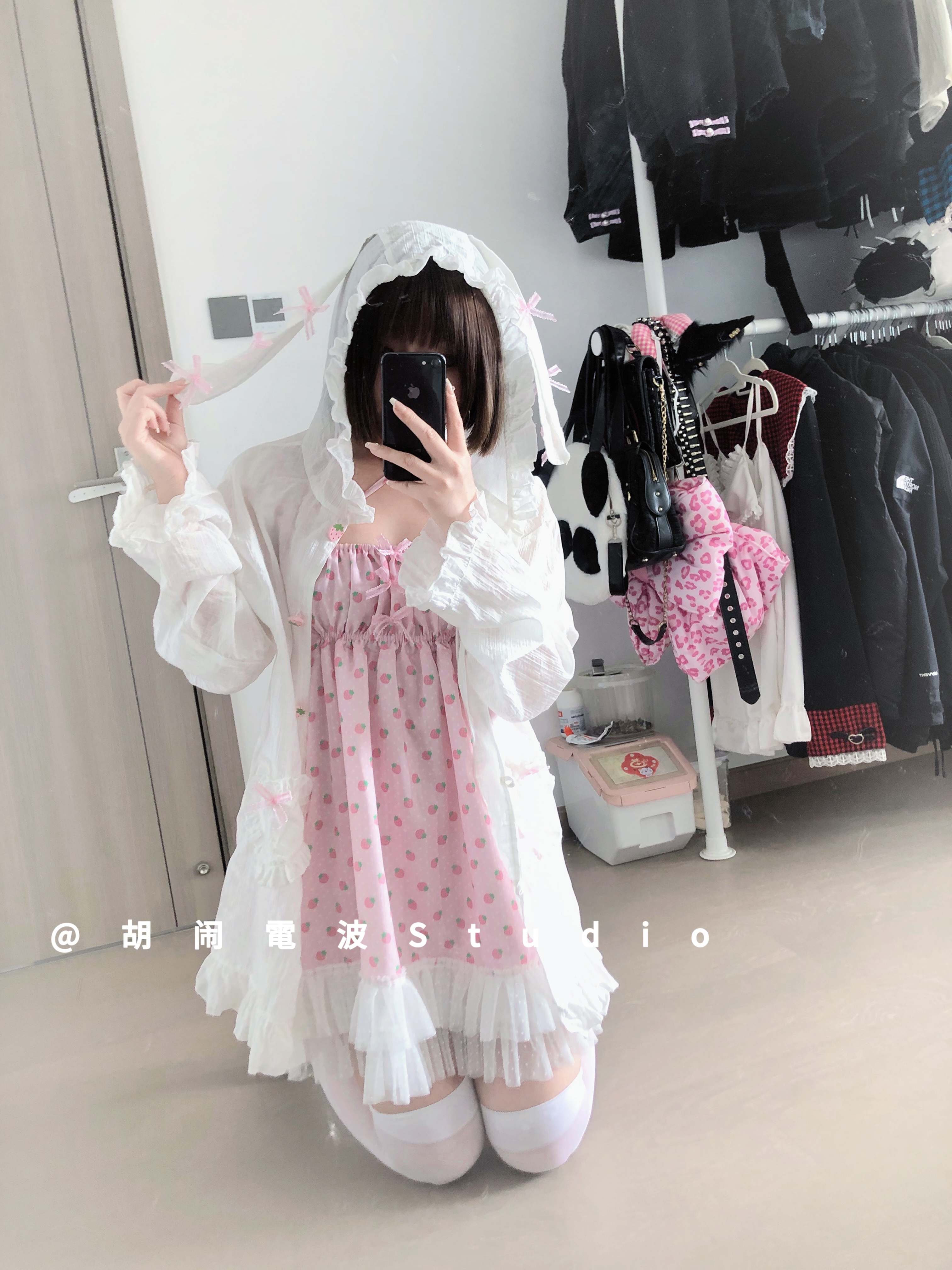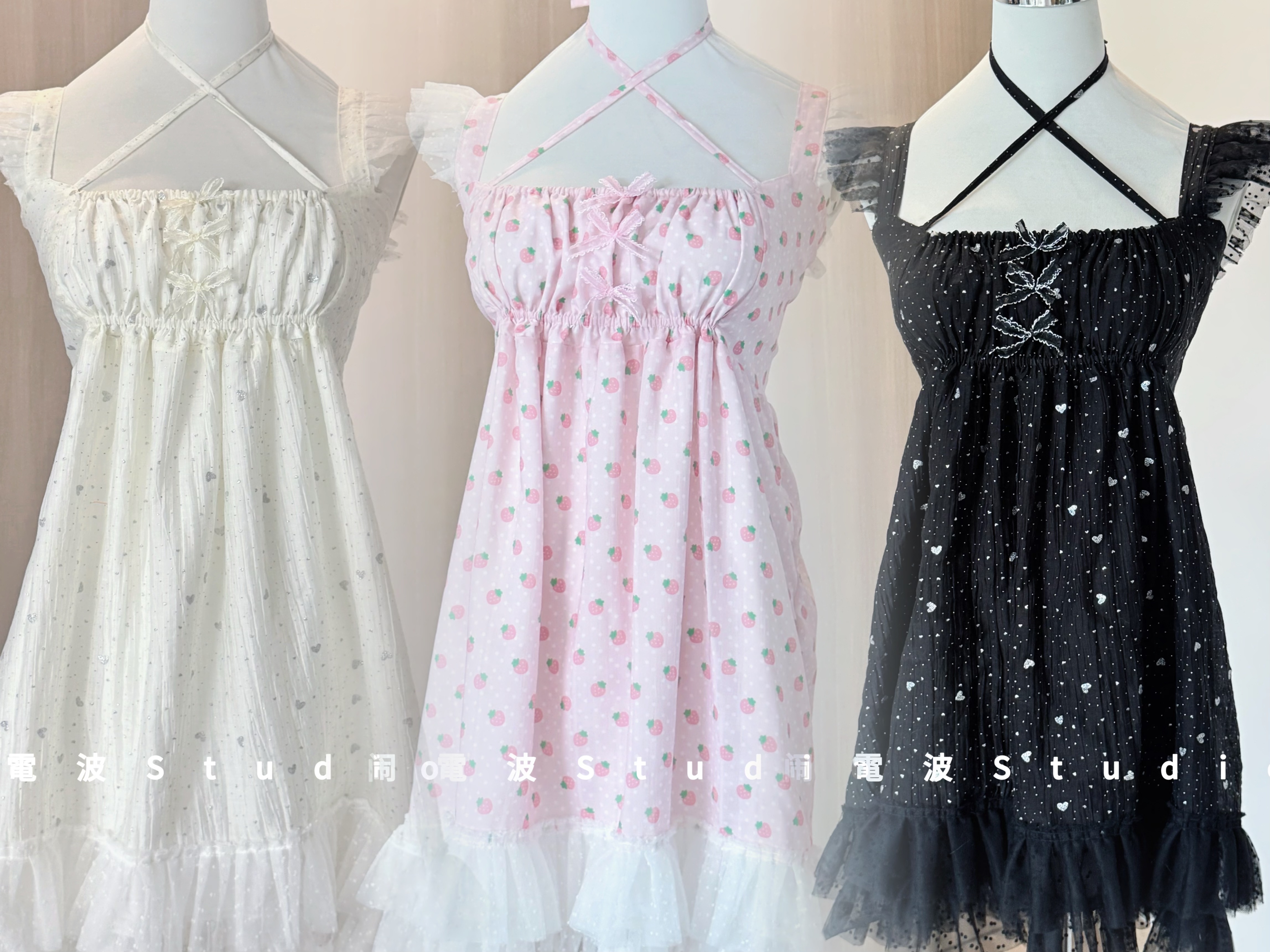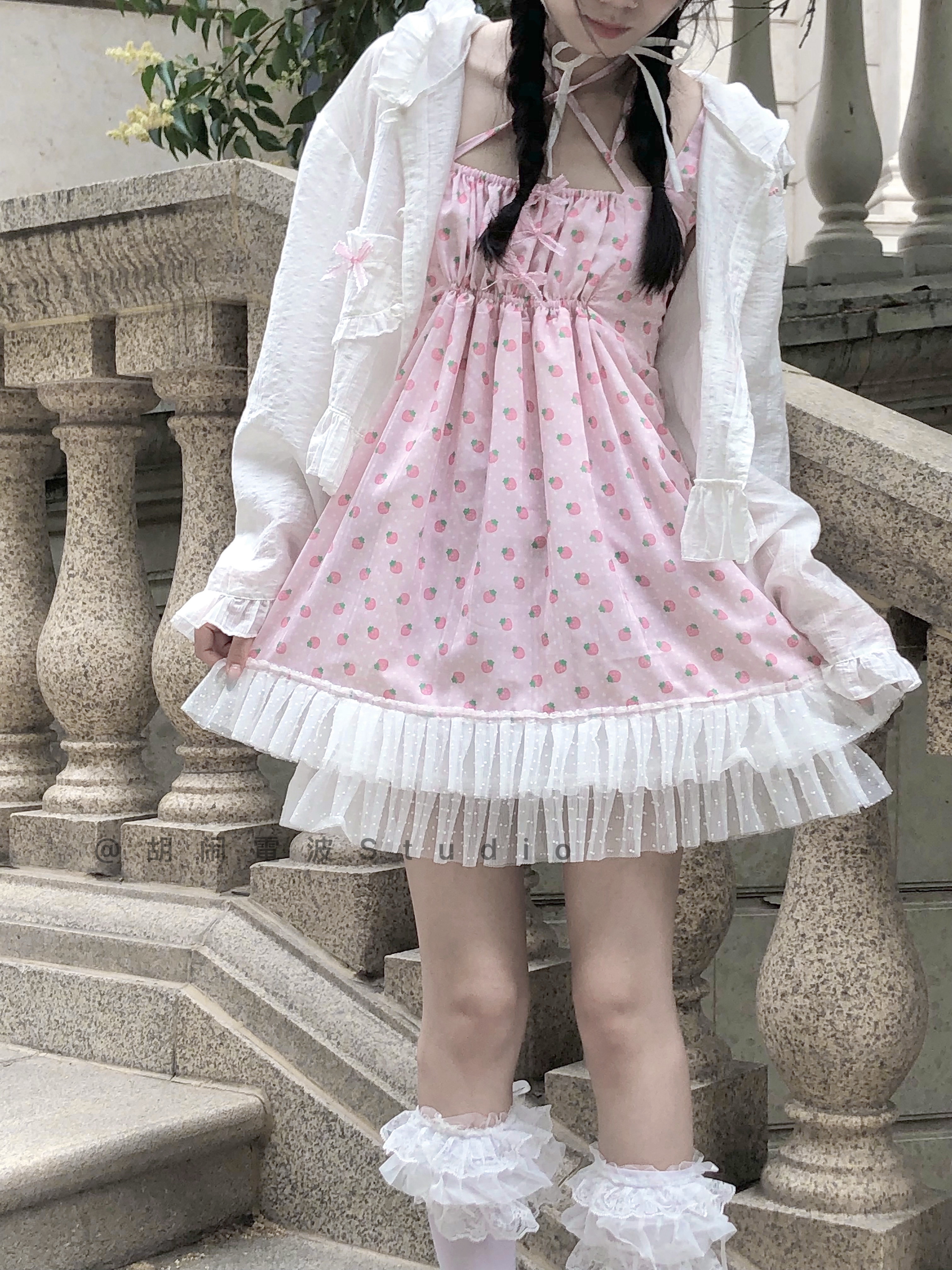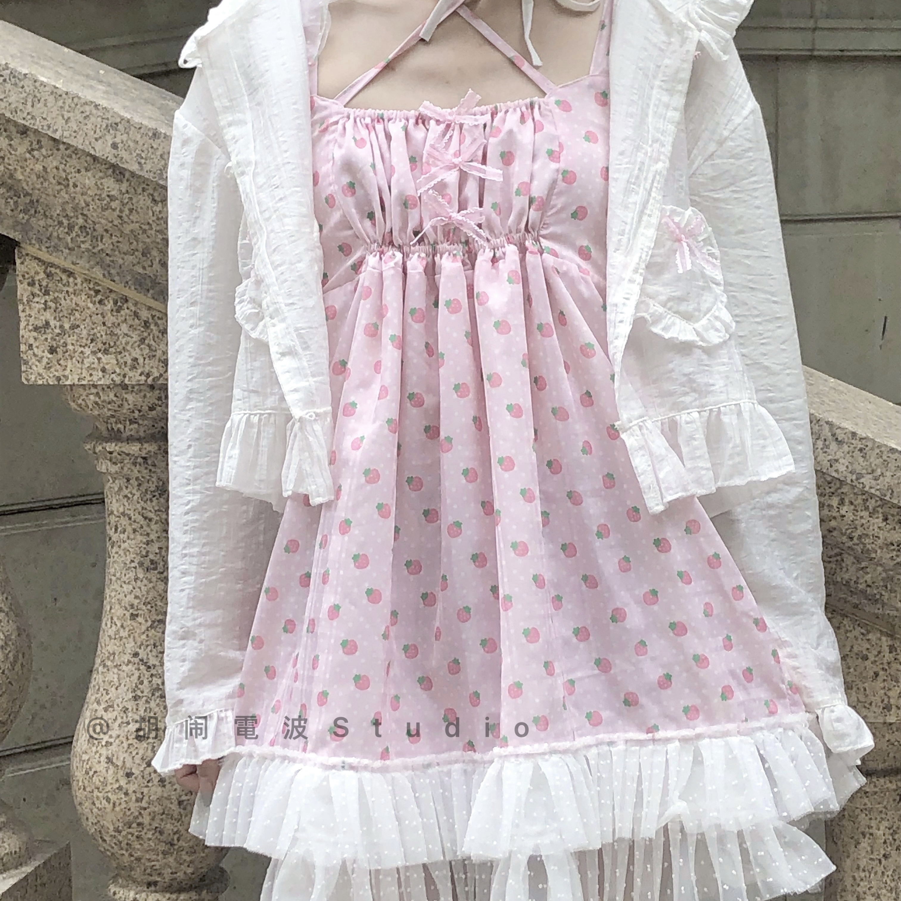 -甜波波-胡闹电波原创设计裙子可爱草莓粉吊带裙蛋糕裙夏季蕾丝裙 [Original Page Link]