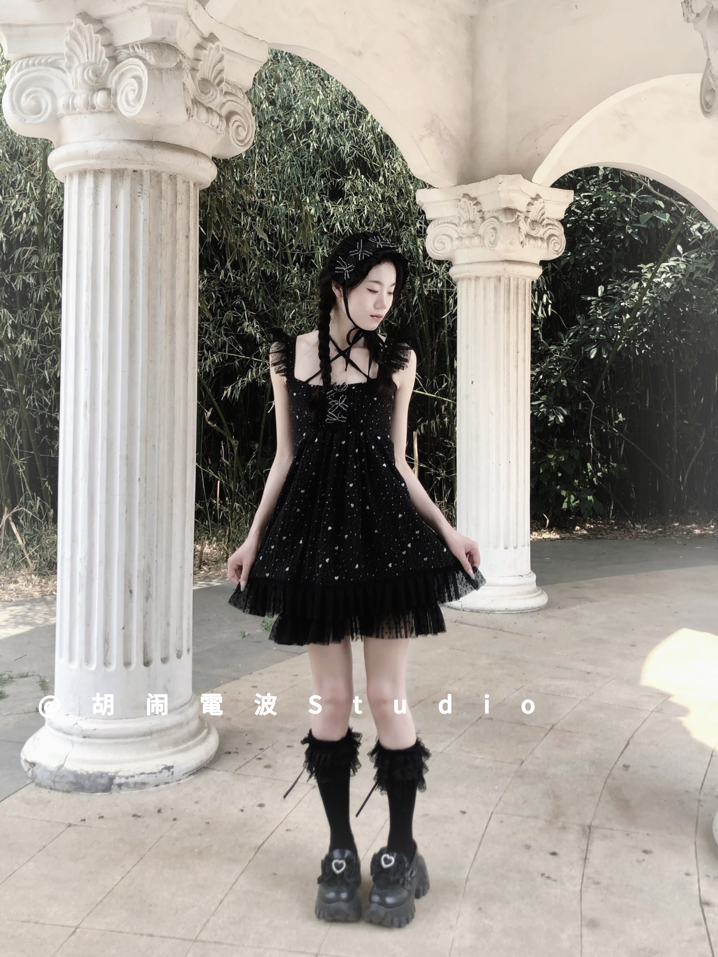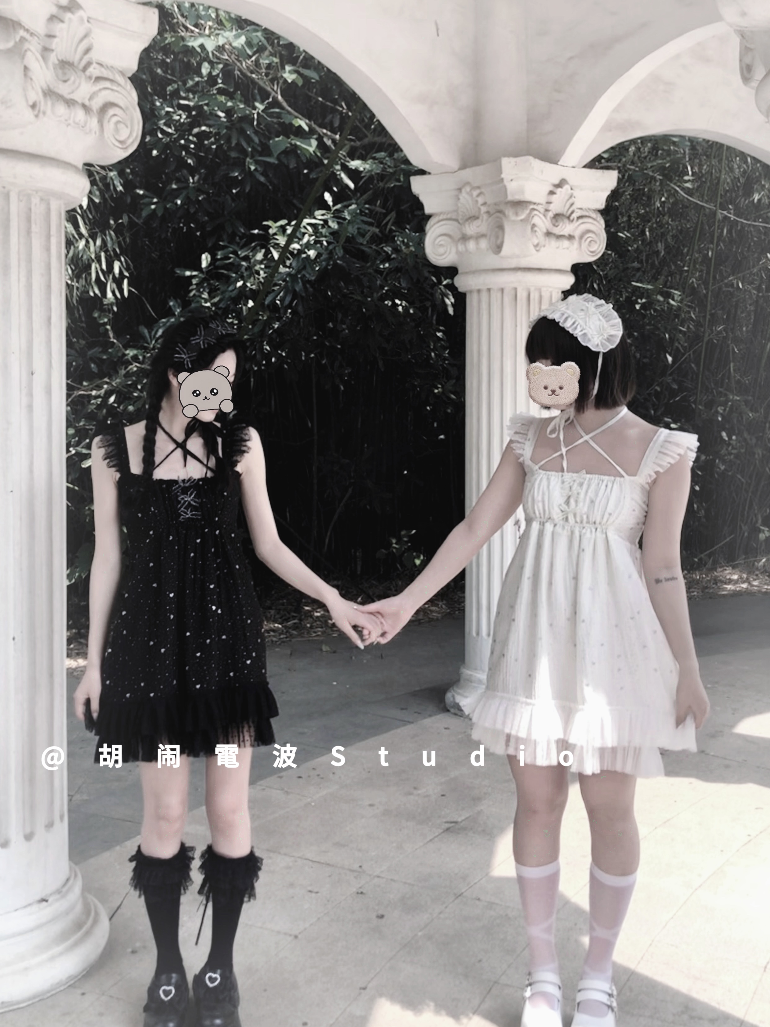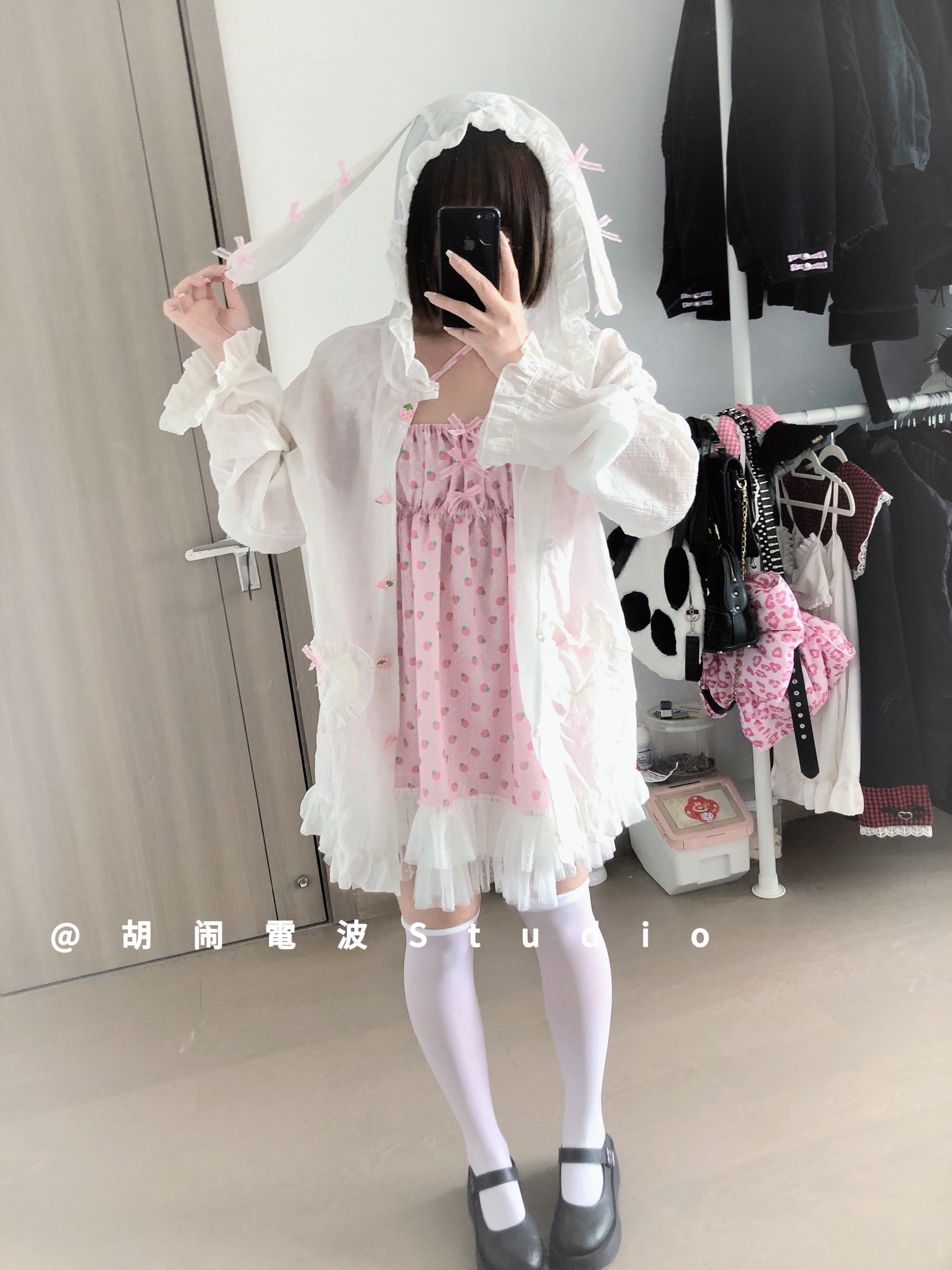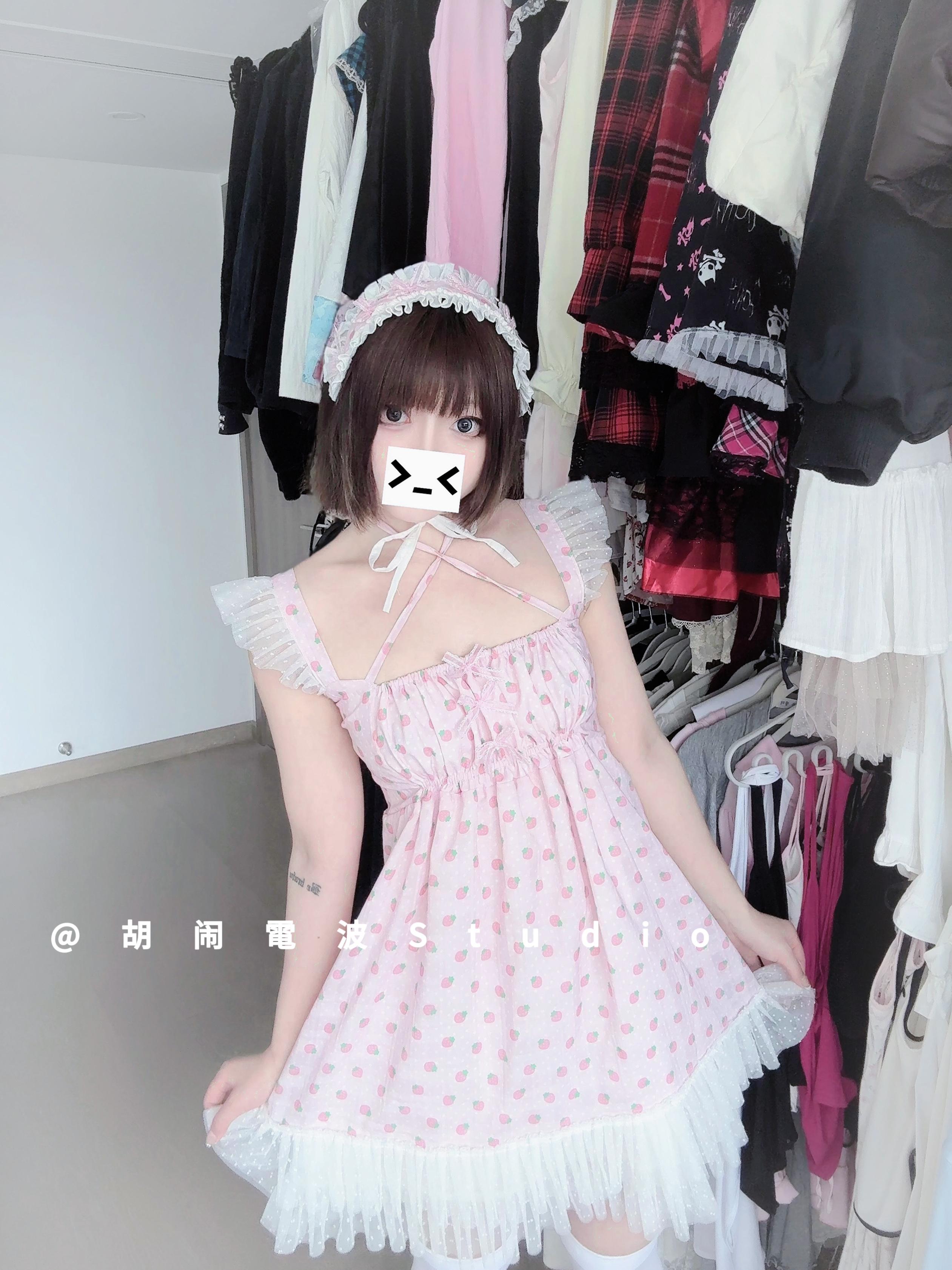 -甜波波-胡闹电波原创设计裙子可爱草莓粉吊带裙蛋糕裙夏季蕾丝裙 [Original Page Link]