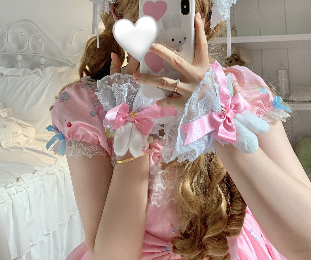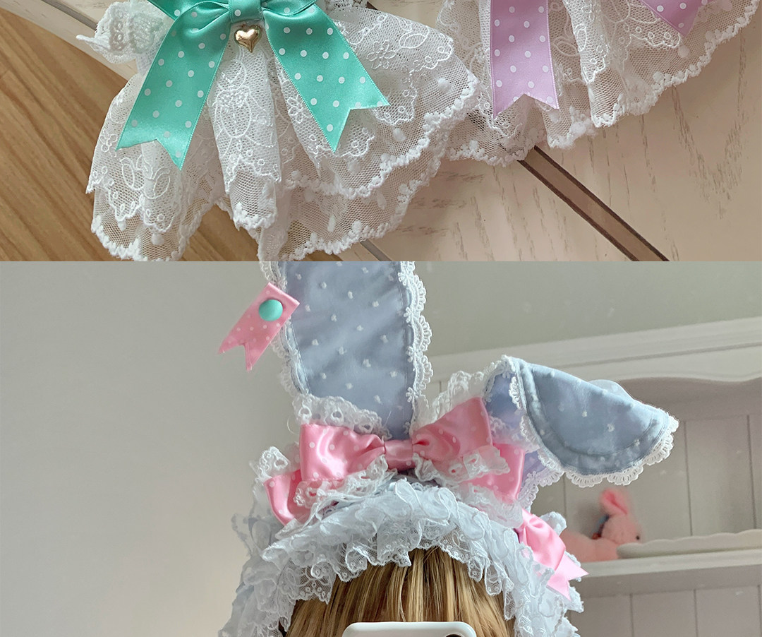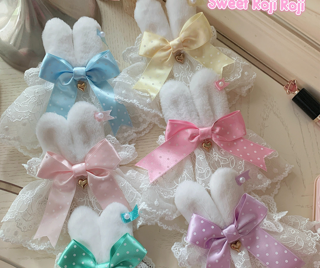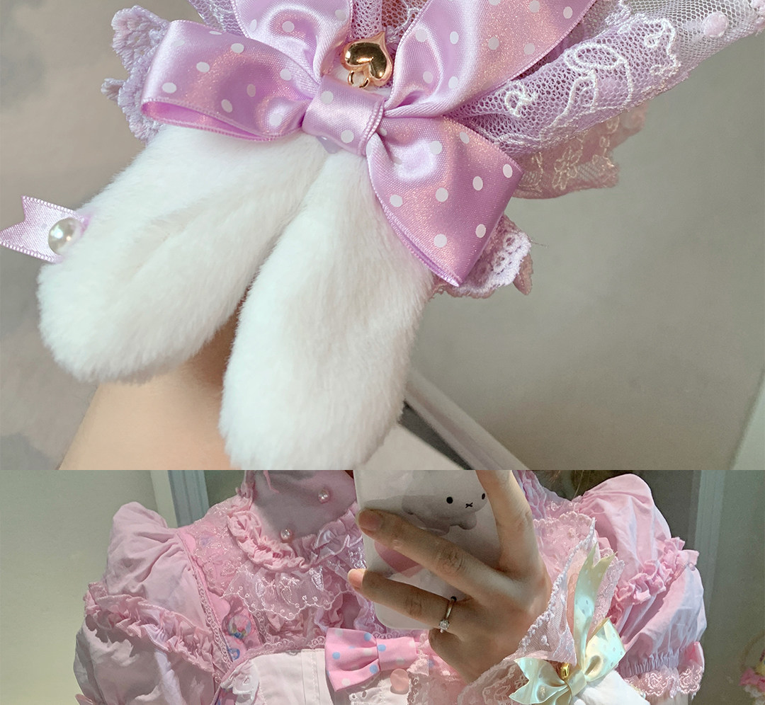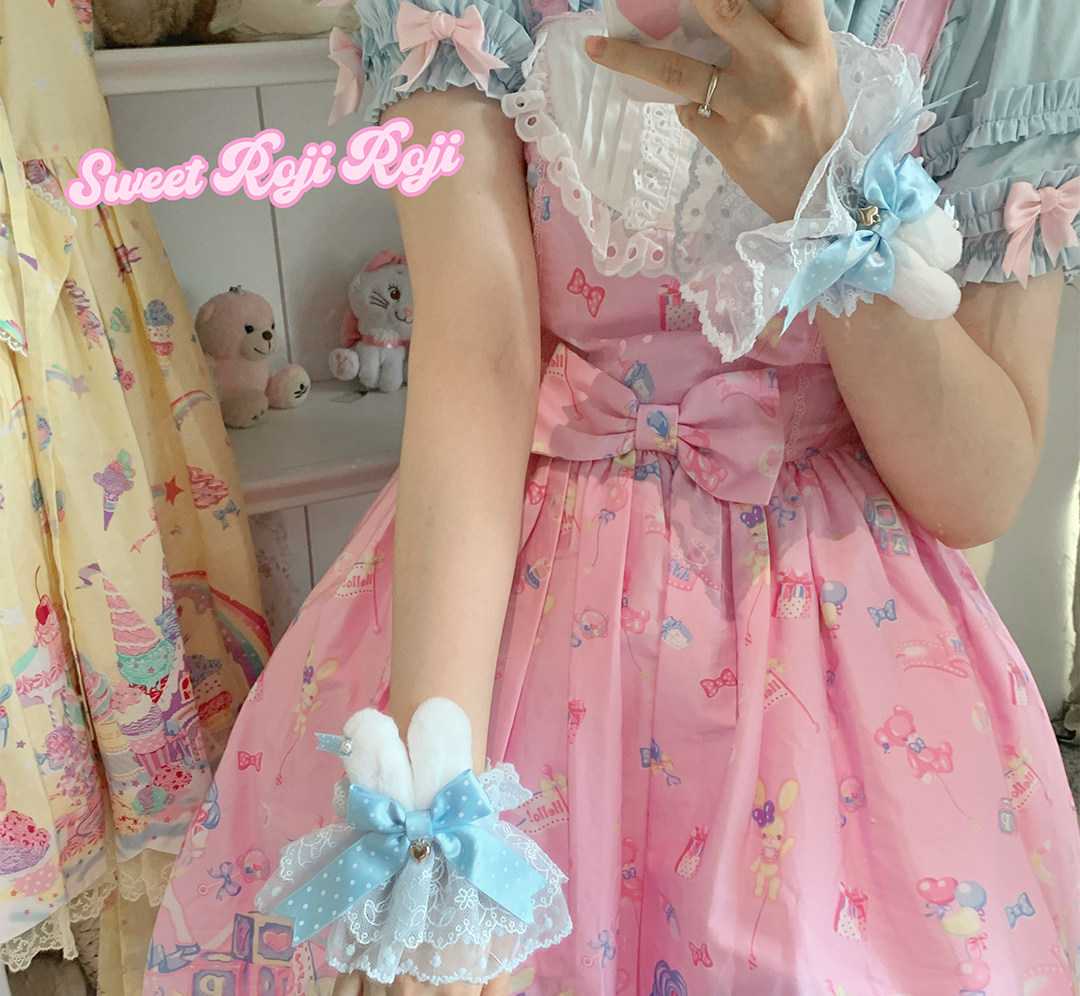 roji原创Lolita兔耳蕾丝手袖女蝴蝶结罗莉塔可爱花边甜美手作小物 [Original Page Link]