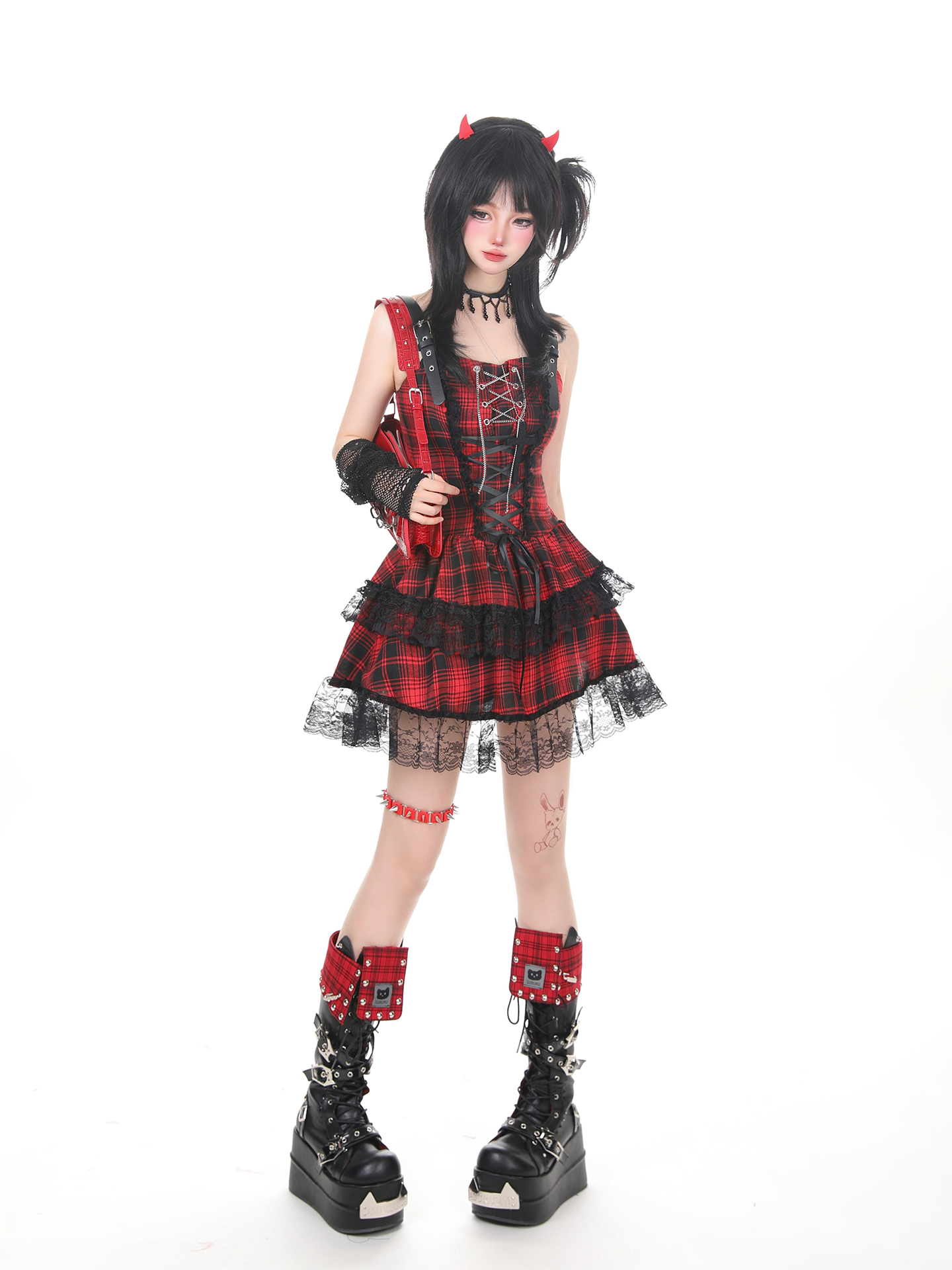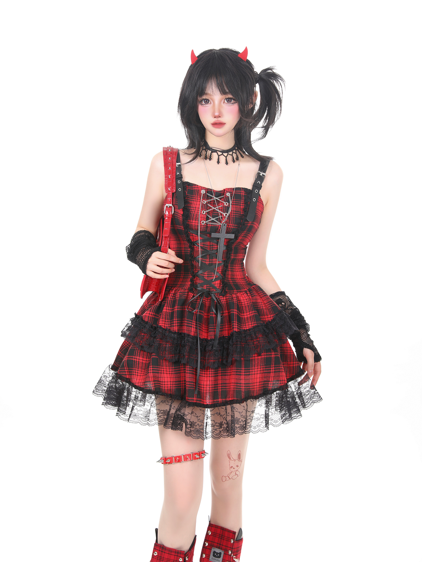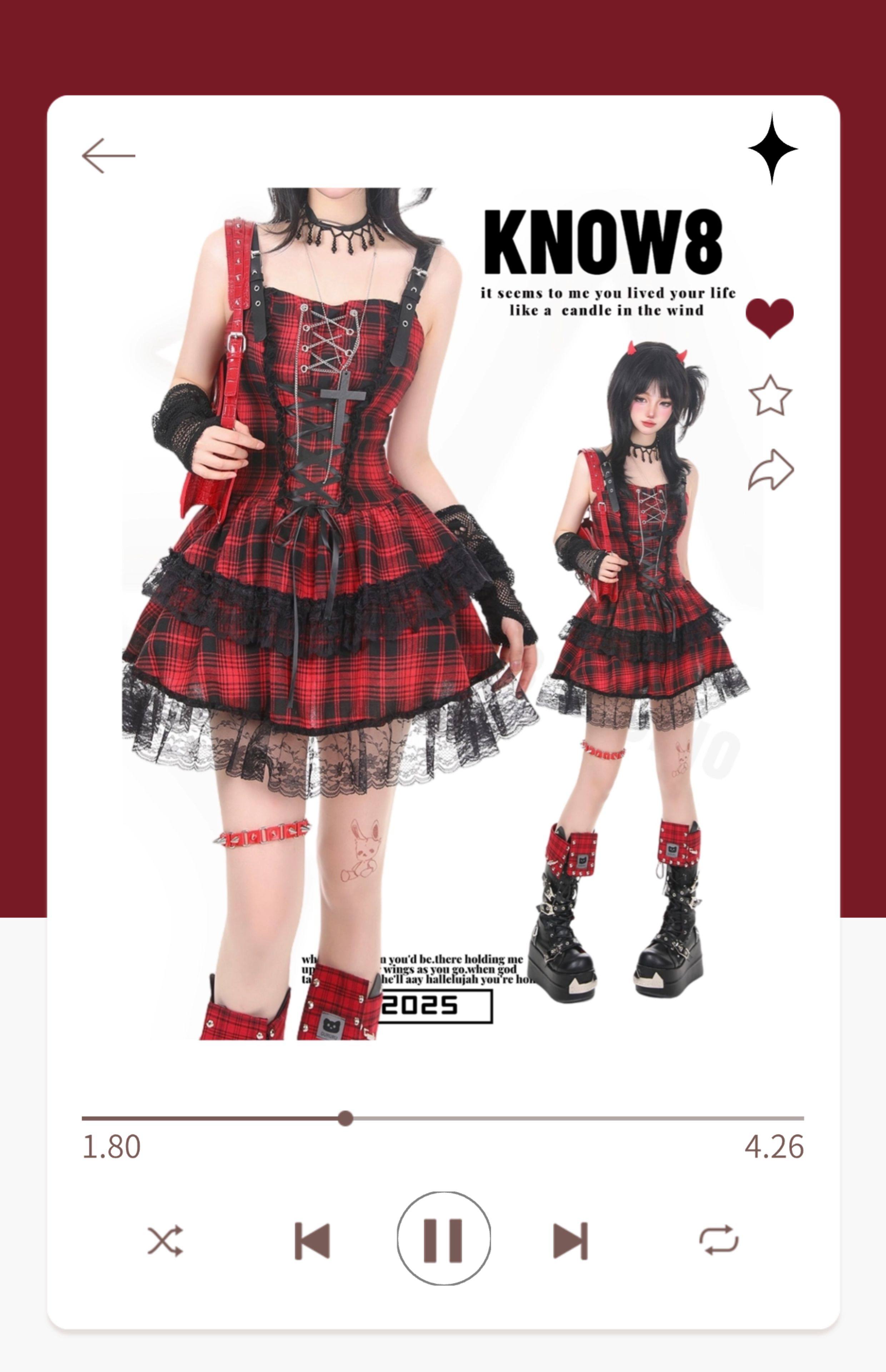 KNOW8暗黑哥特风轻音少女格子格子裙女红色演唱会穿搭连衣裙 [Original Page Link]