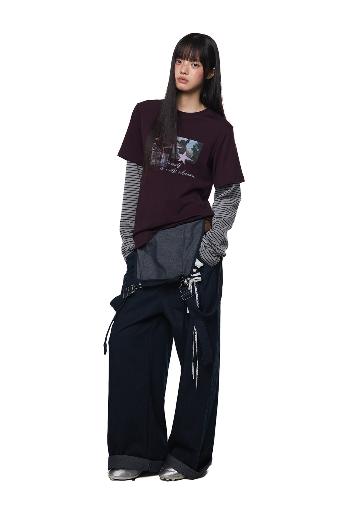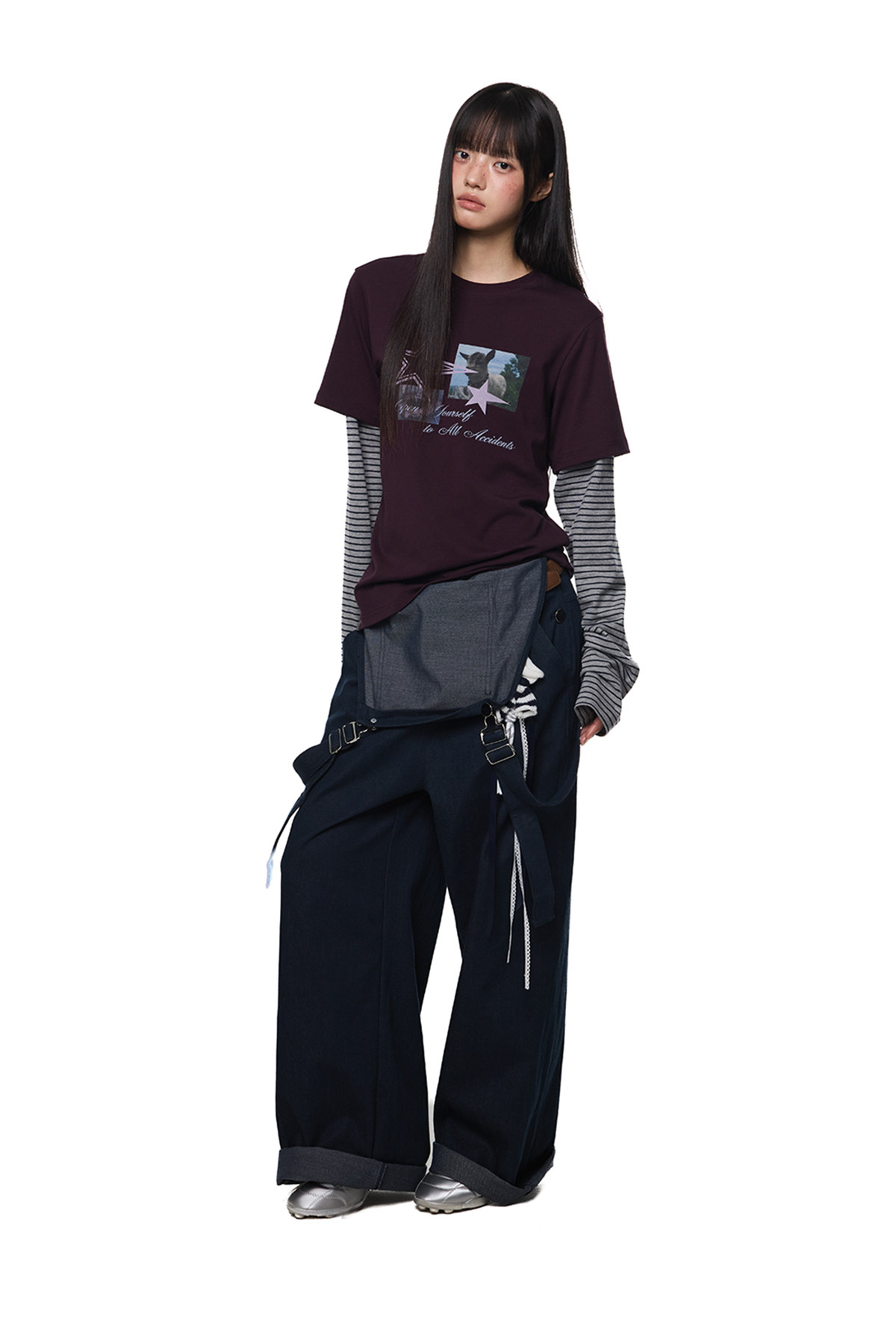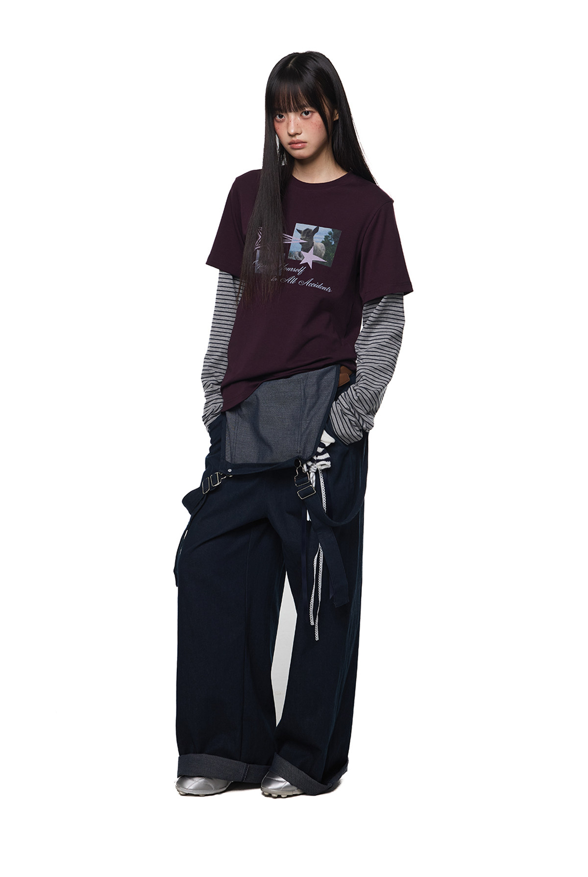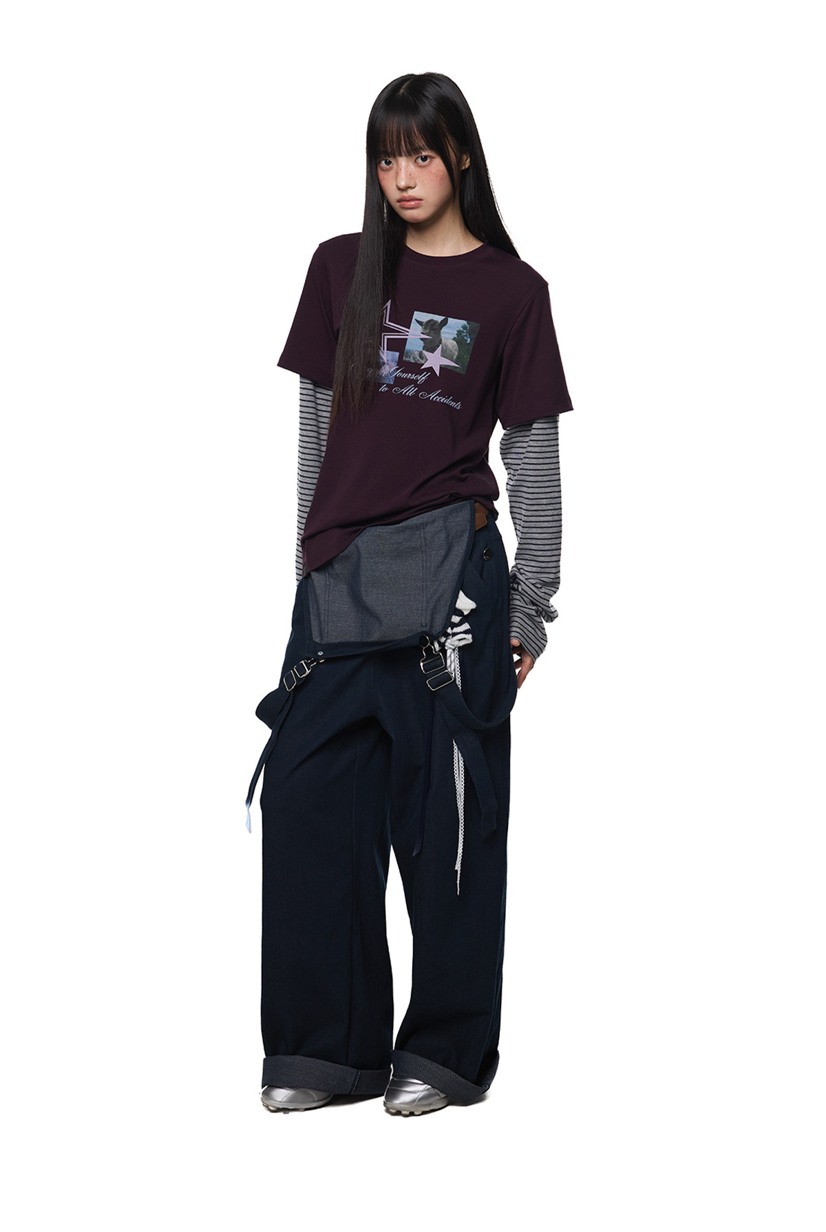 Ezek假两件套图案印花条纹长袖t恤女子夏季美国覆古休闲宽松圆领上衣 [Original Page Link]