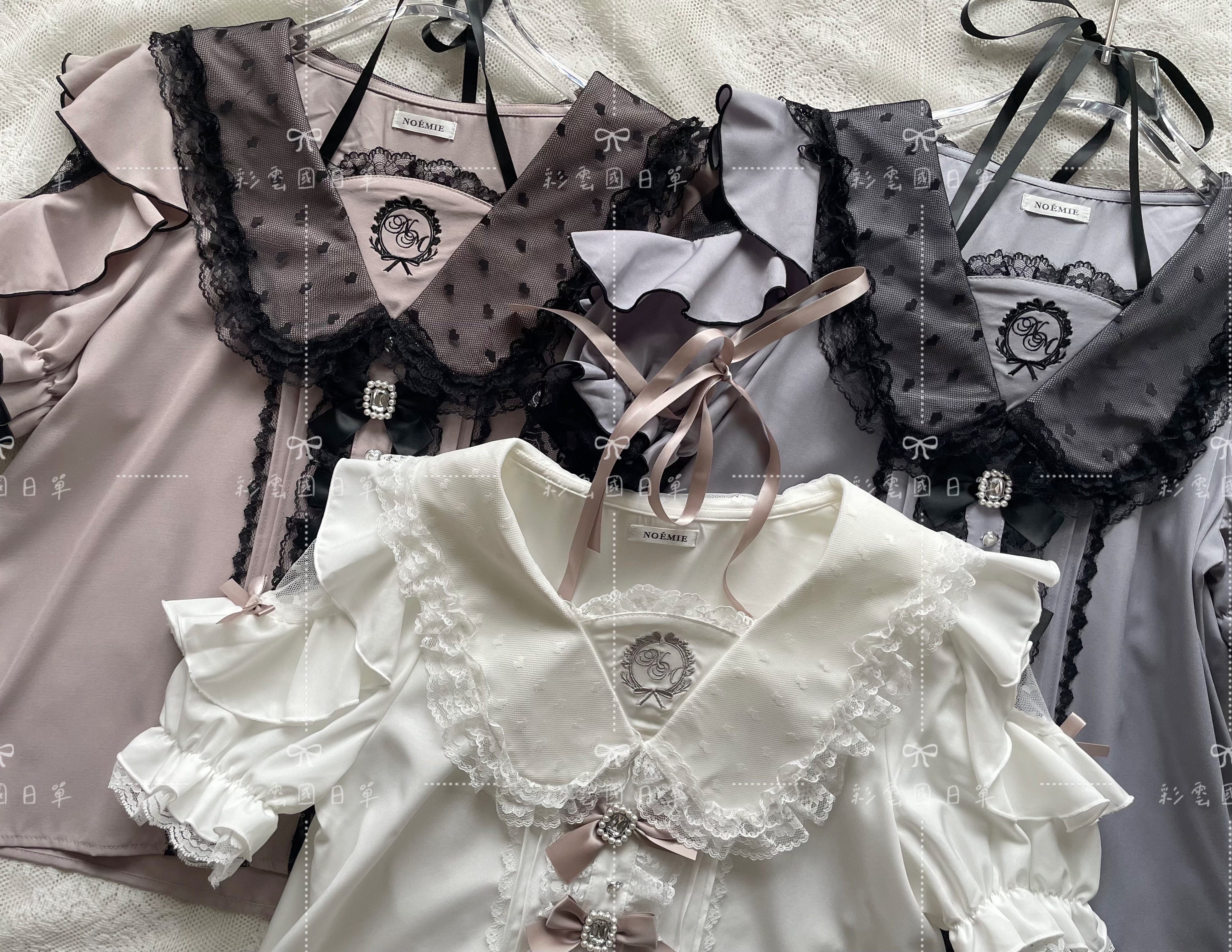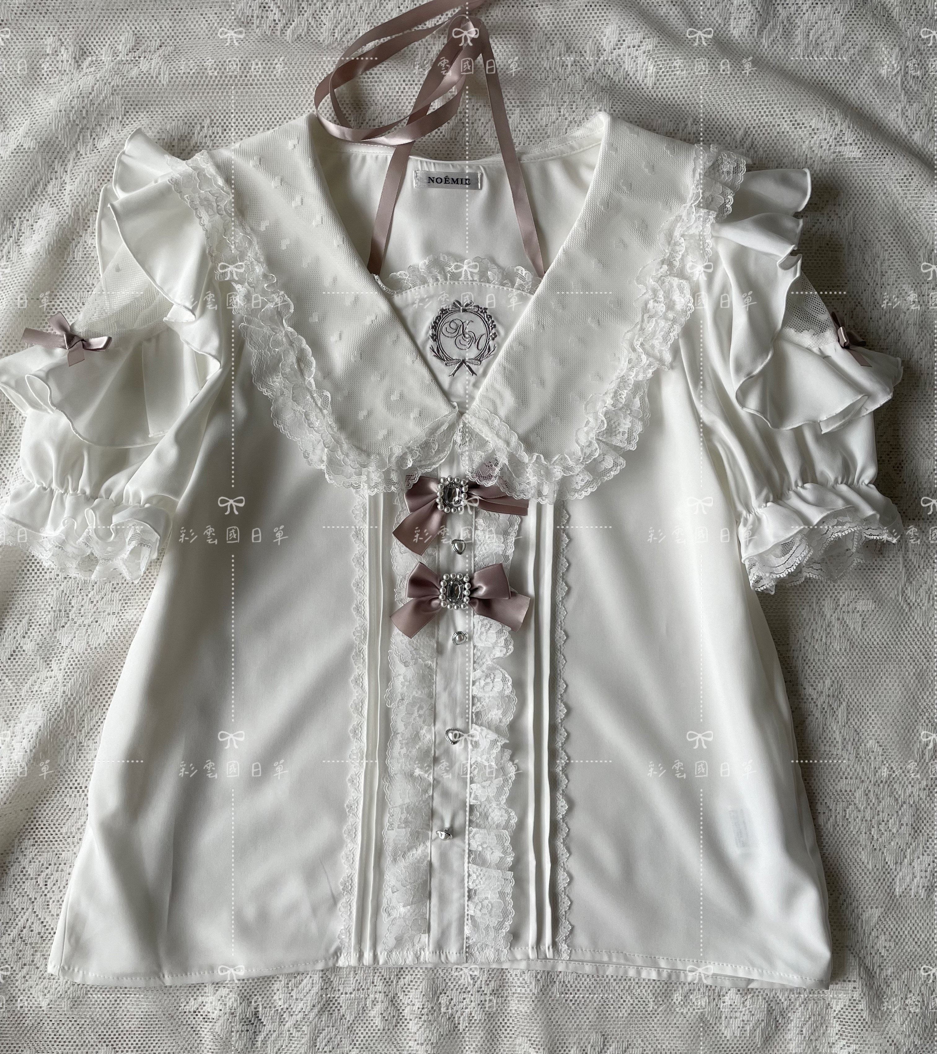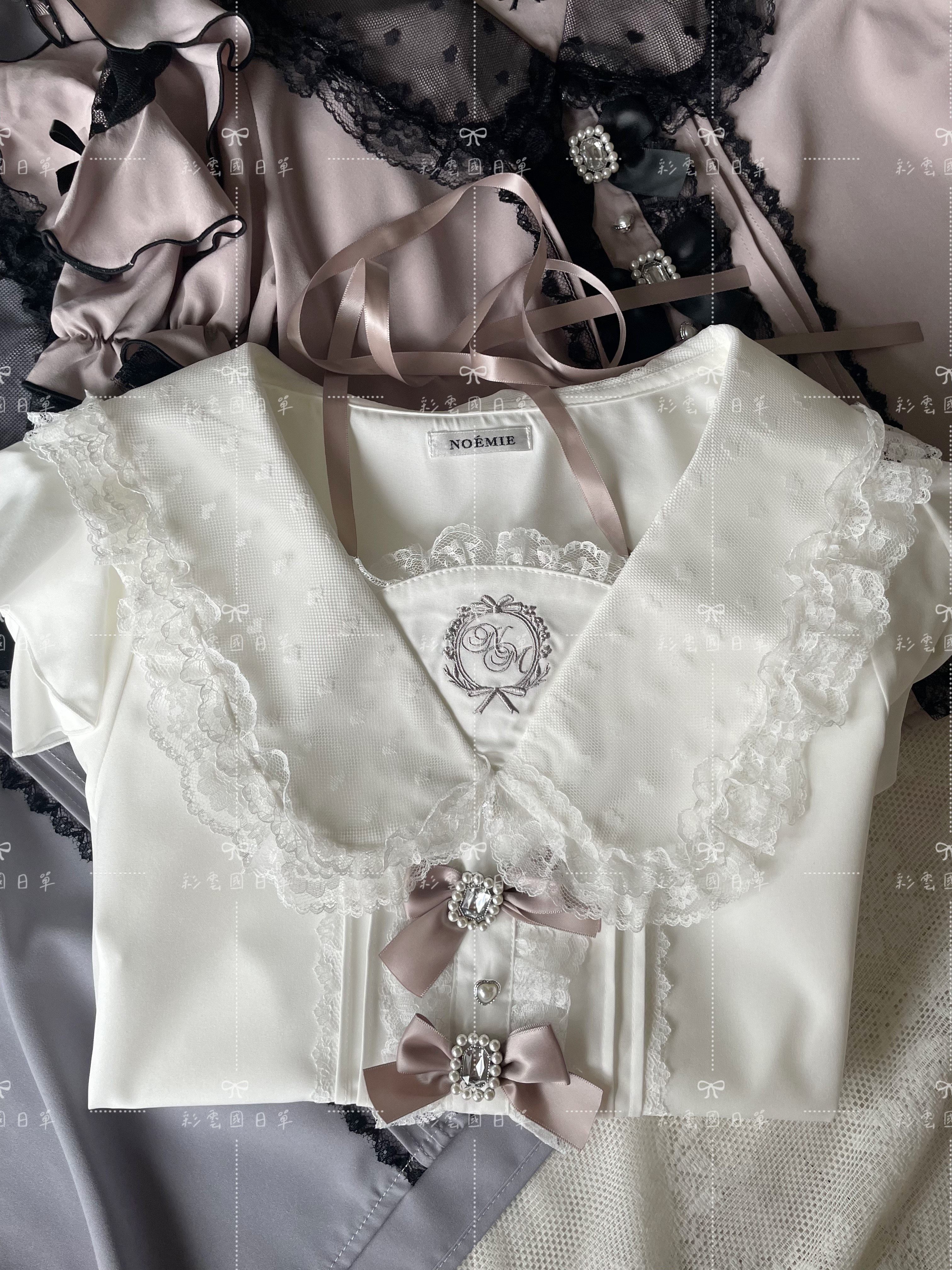 独家实拍noemie糯米新款量产型绑带刺绣蕾丝露肩短袖衬衫 [Original Page Link]