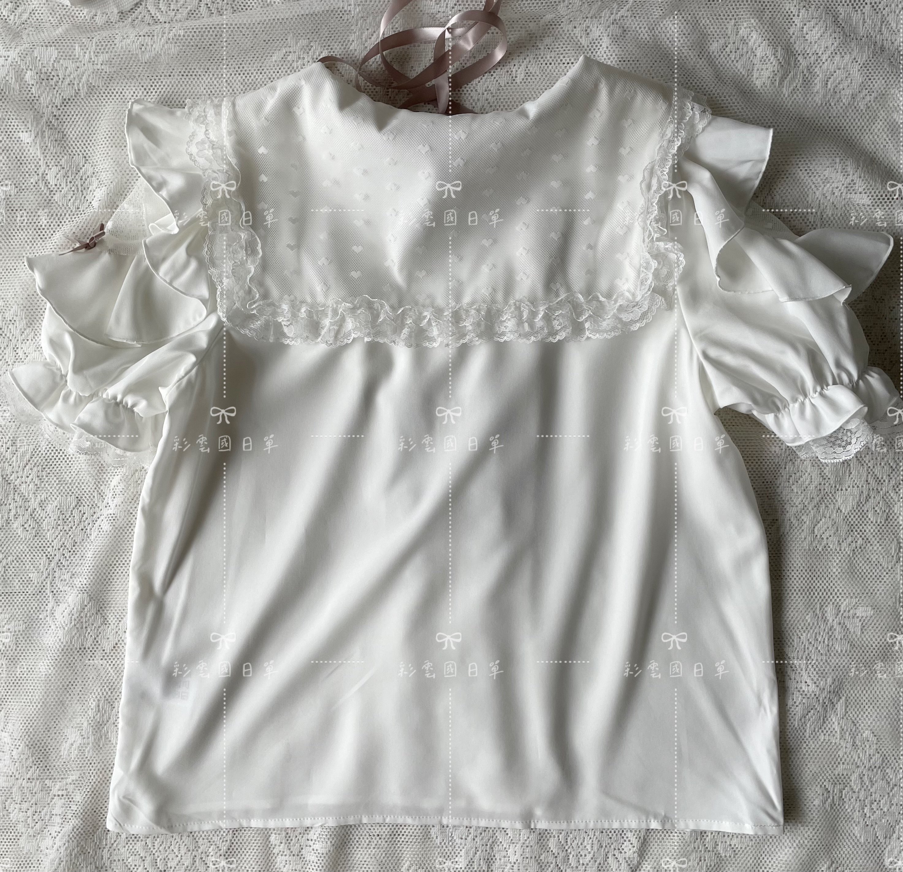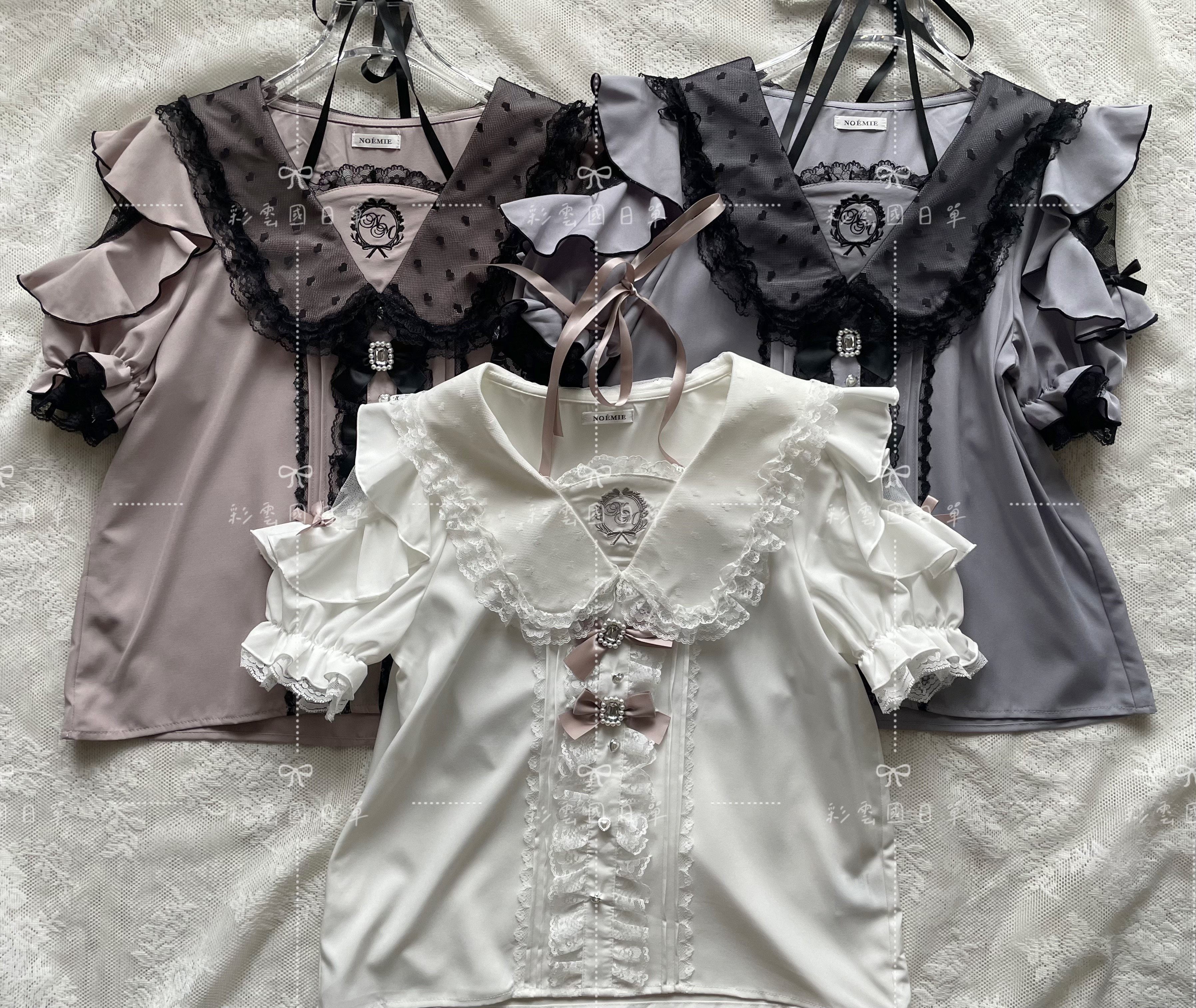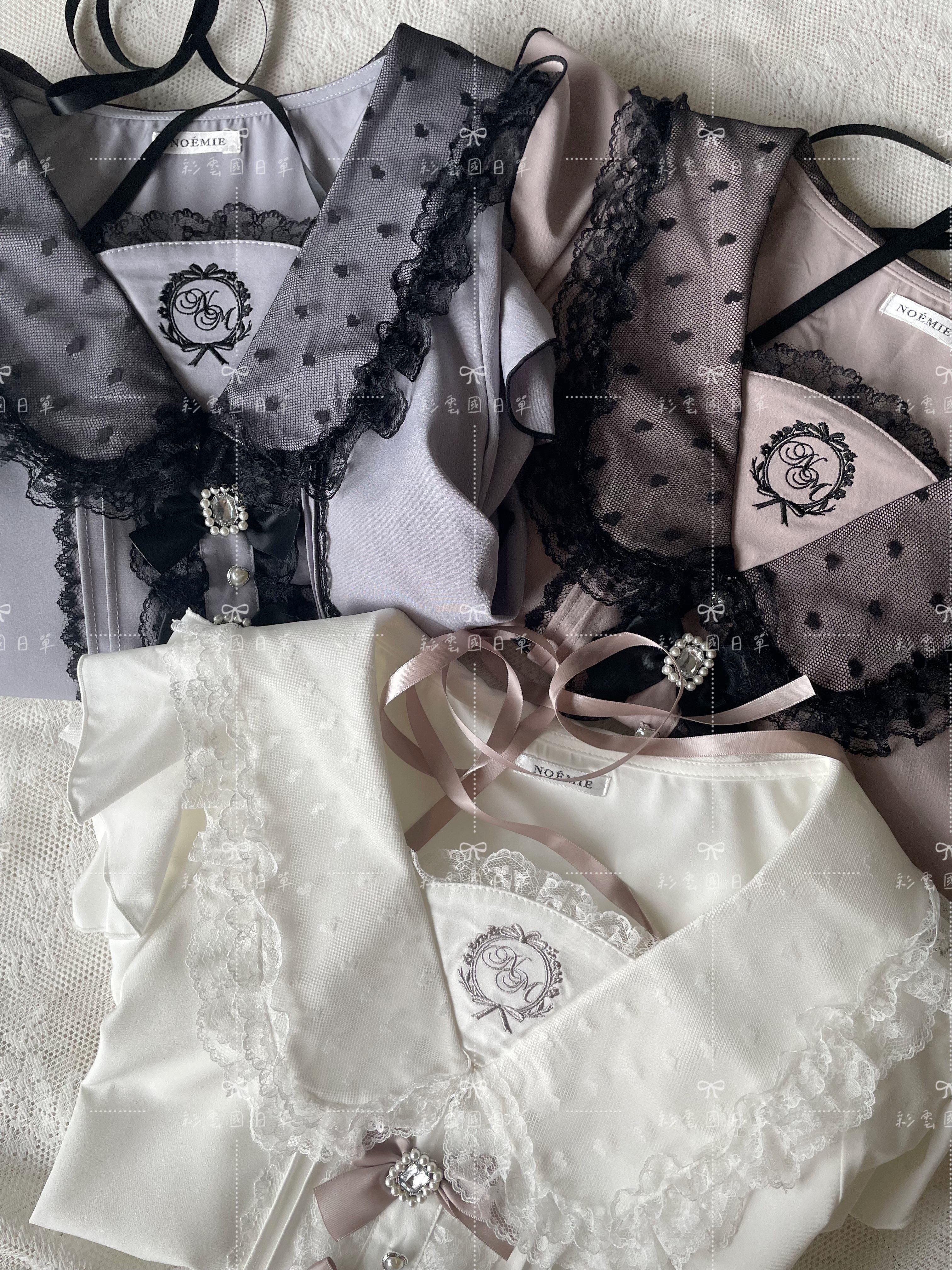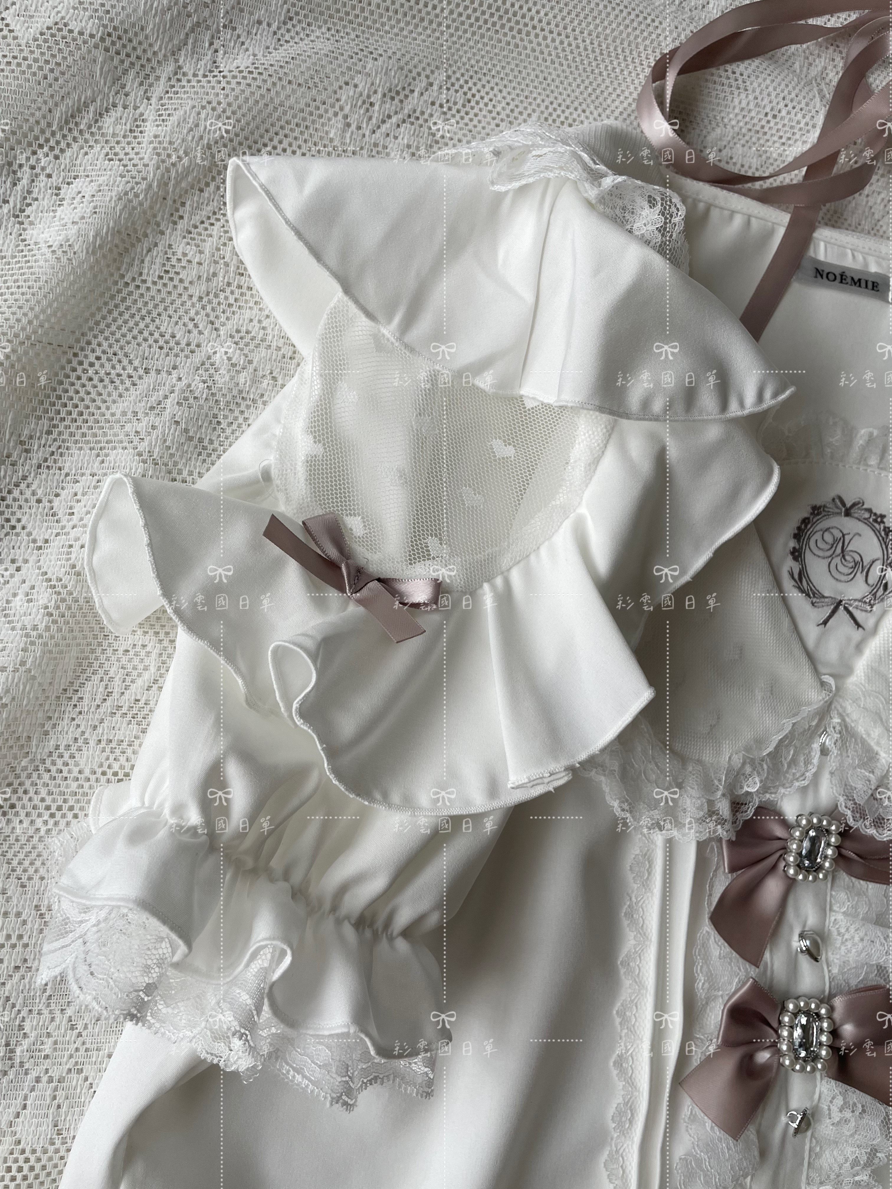 独家实拍noemie糯米新款量产型绑带刺绣蕾丝露肩短袖衬衫 [Original Page Link]