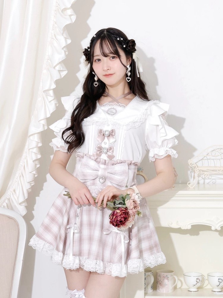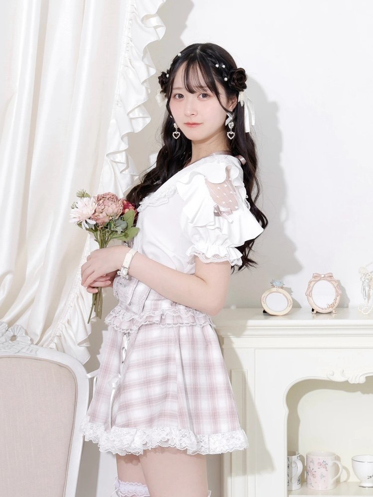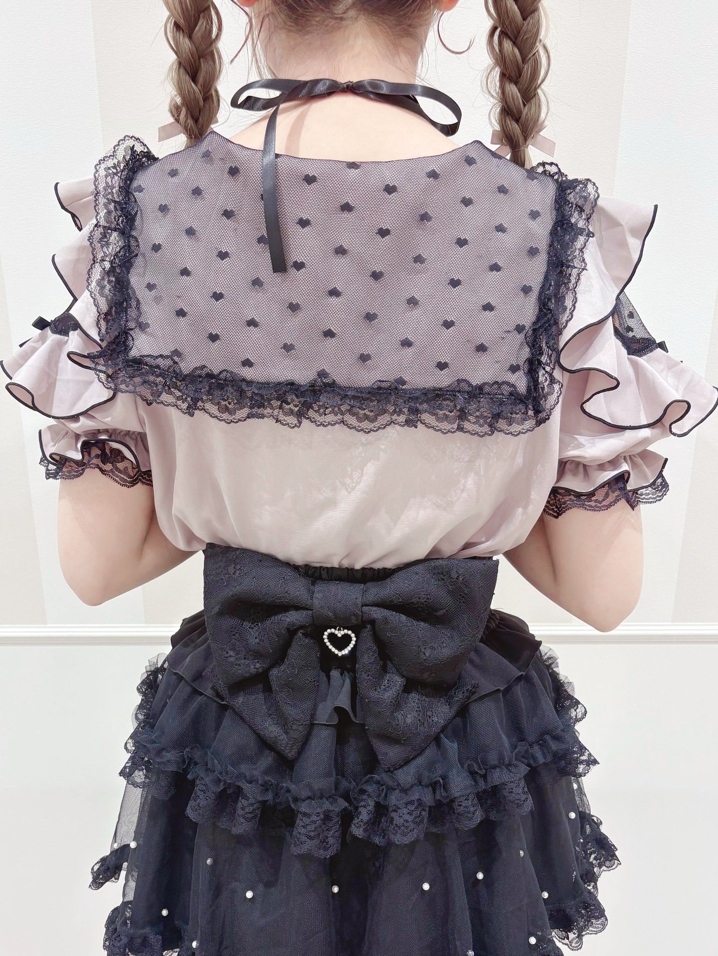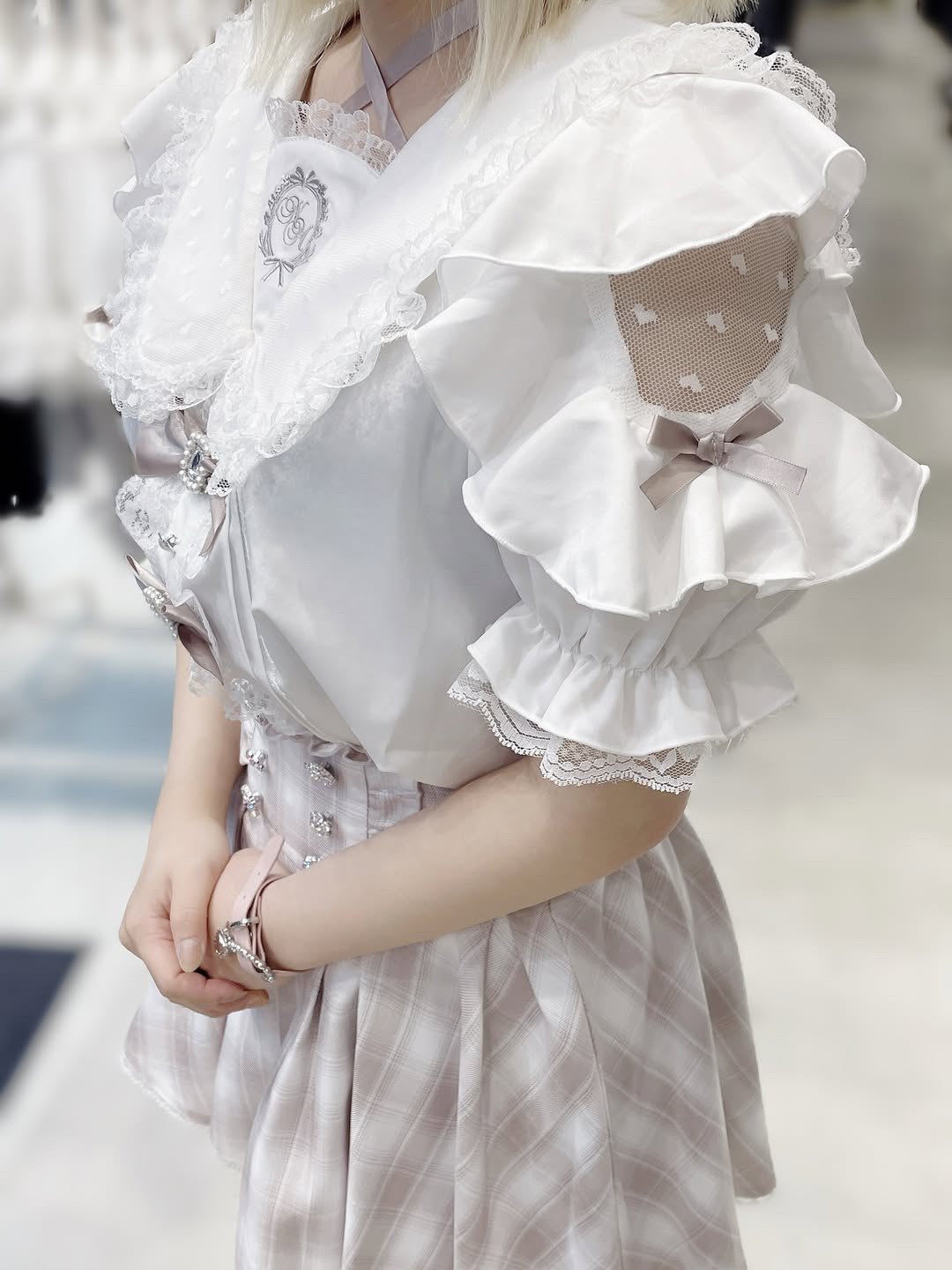 Exclusive real shot of noemie's new mass-produced tie-up embroidered lace off-shoulder short-sleeved shirt