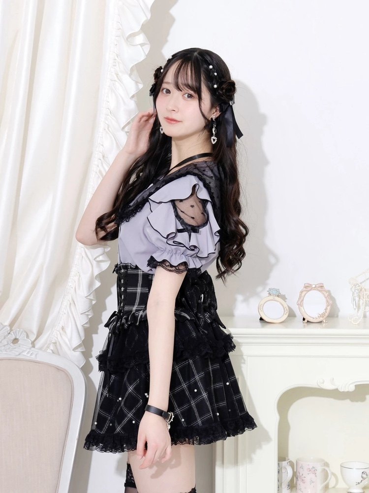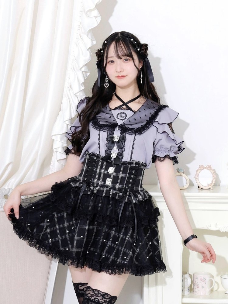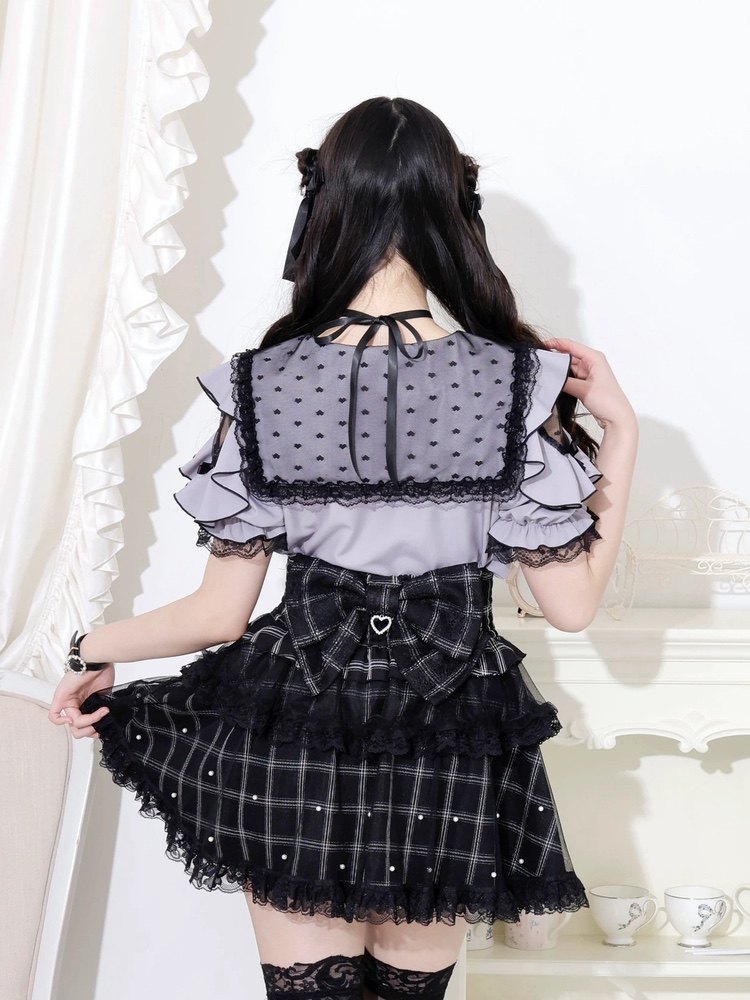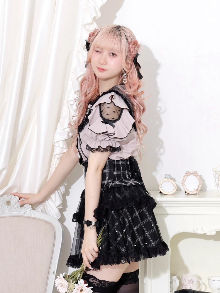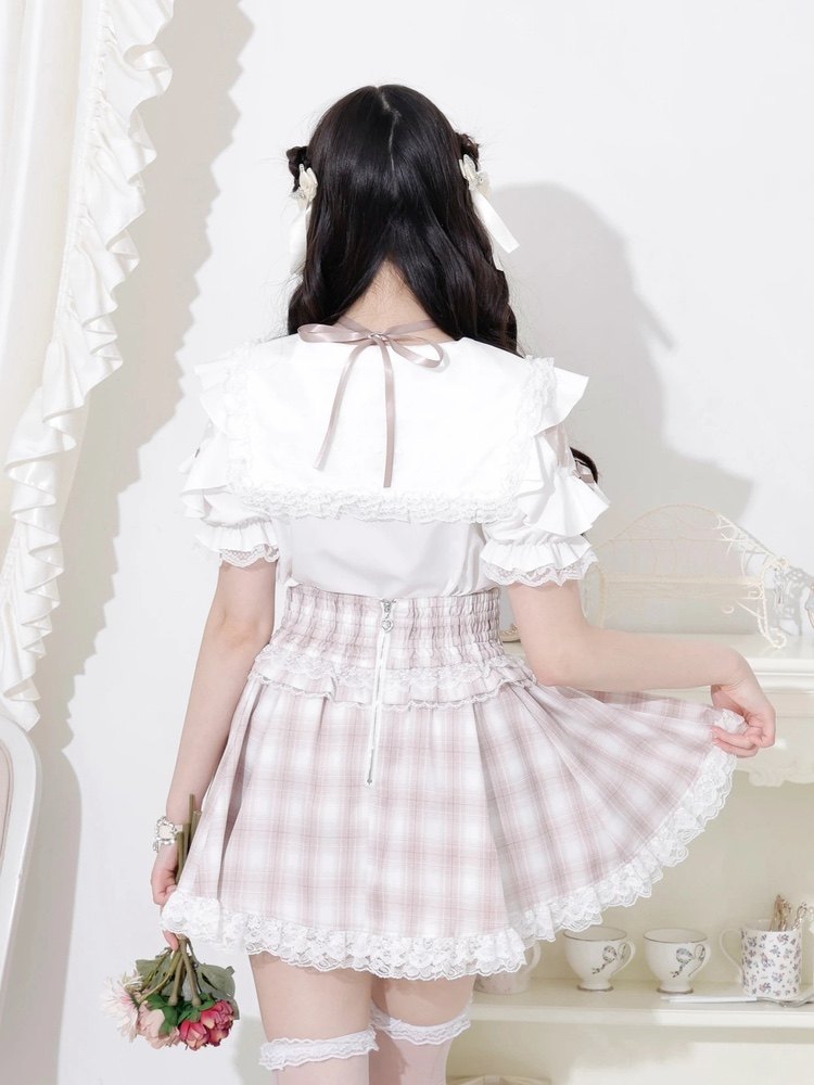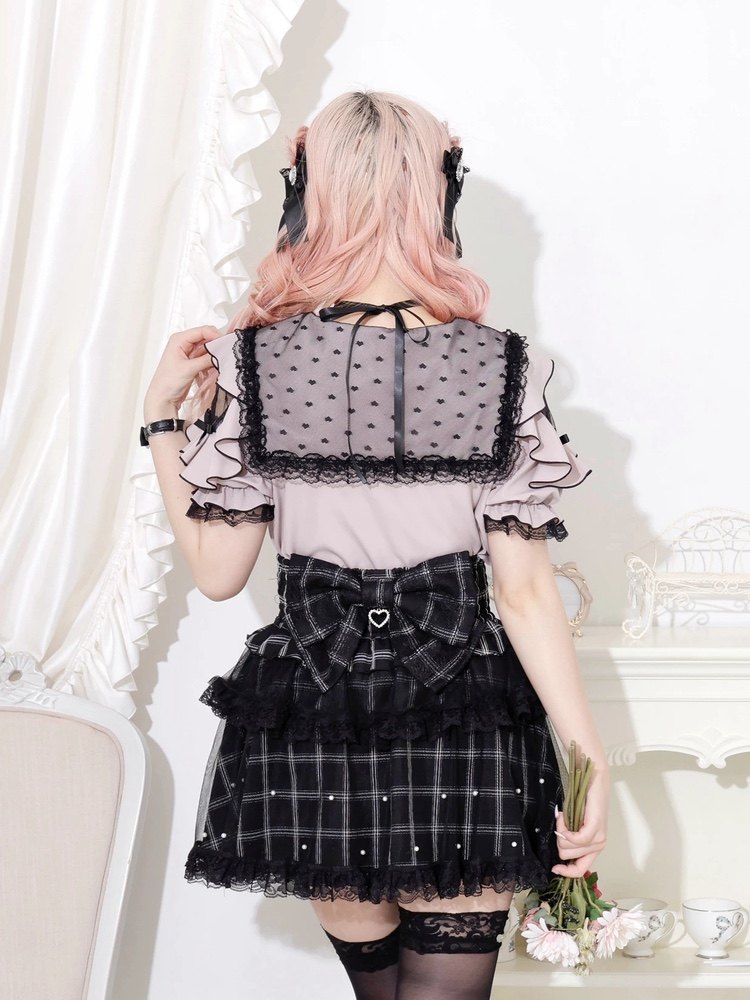 Exclusive real shot of noemie's new mass-produced tie-up embroidered lace off-shoulder short-sleeved shirt