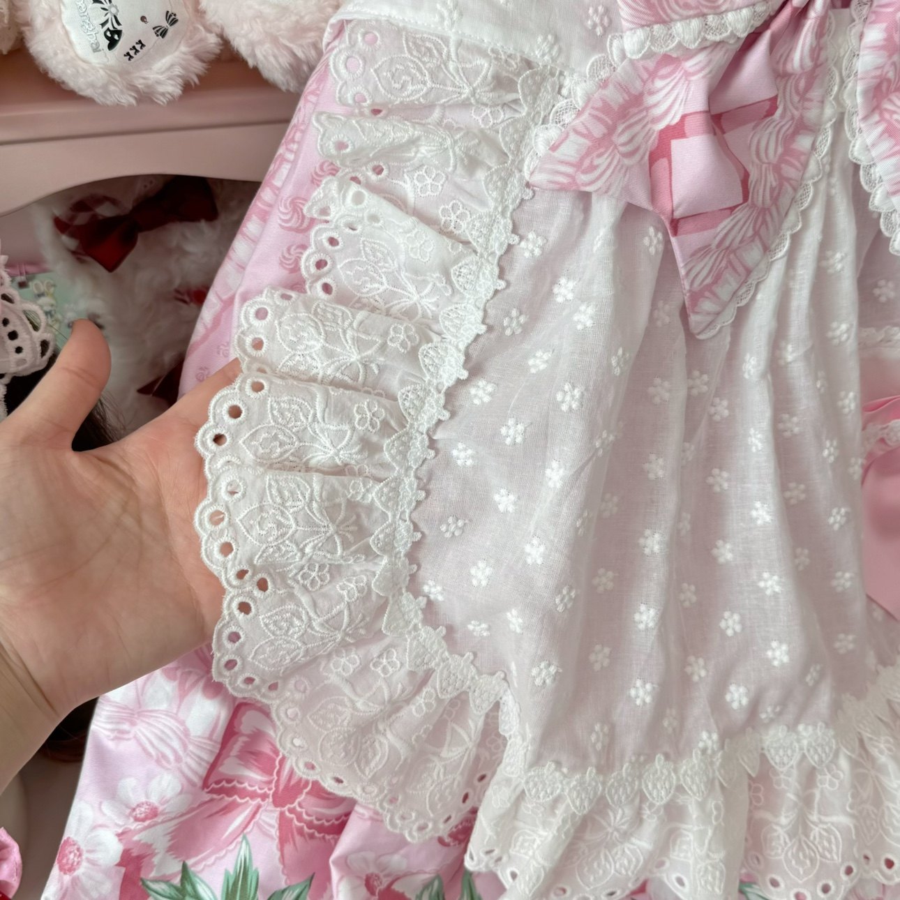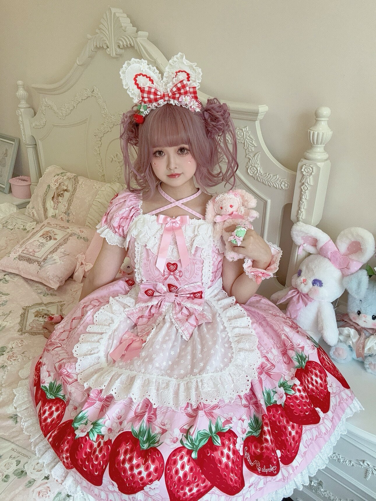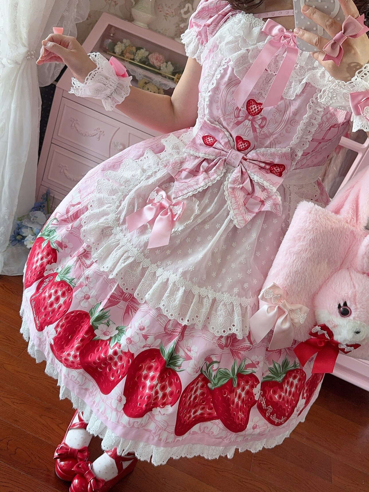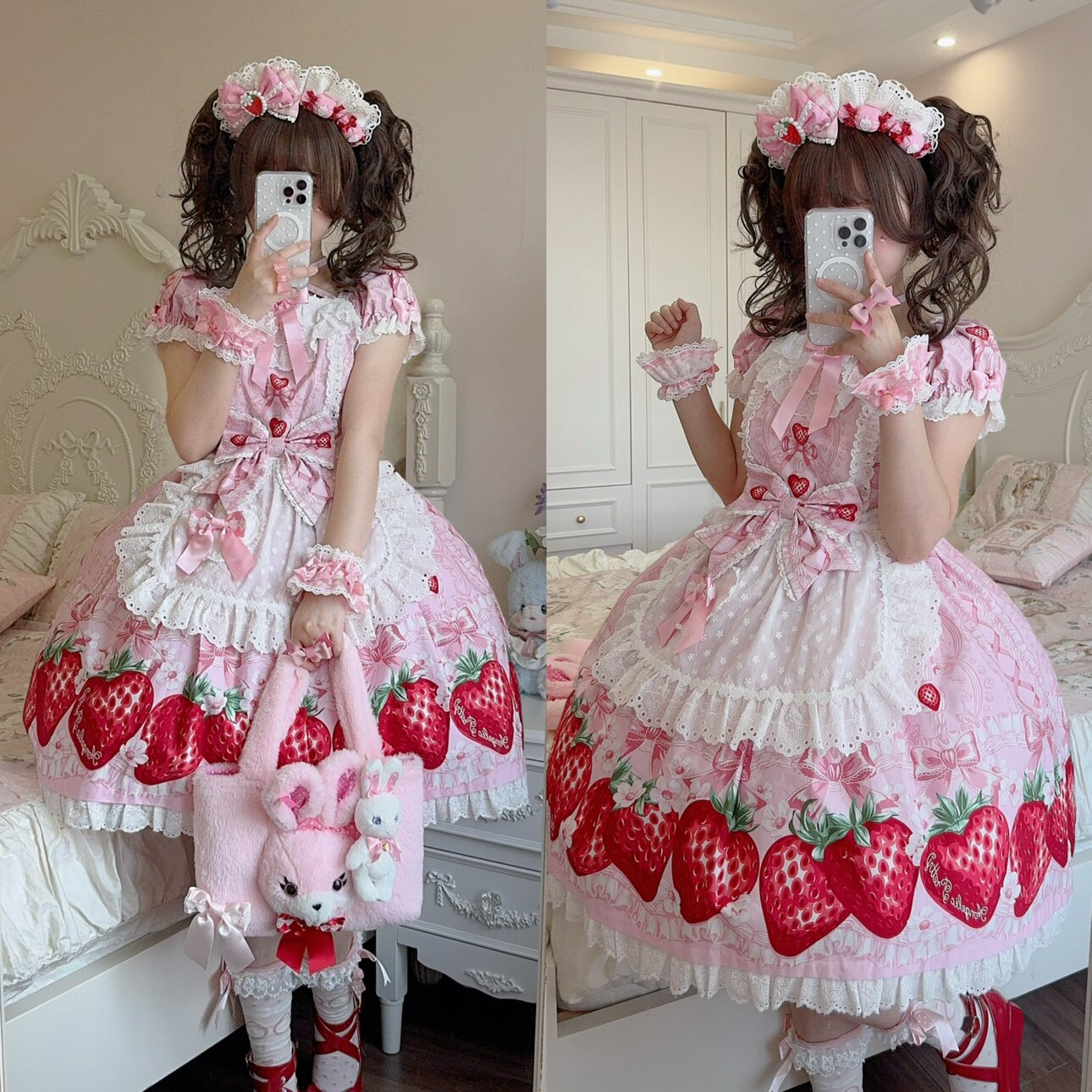 【芝士猫手作】超萌!新品草莓刺绣蕾丝蝴蝶结lolita小物棉布围裙 [Original Page Link]