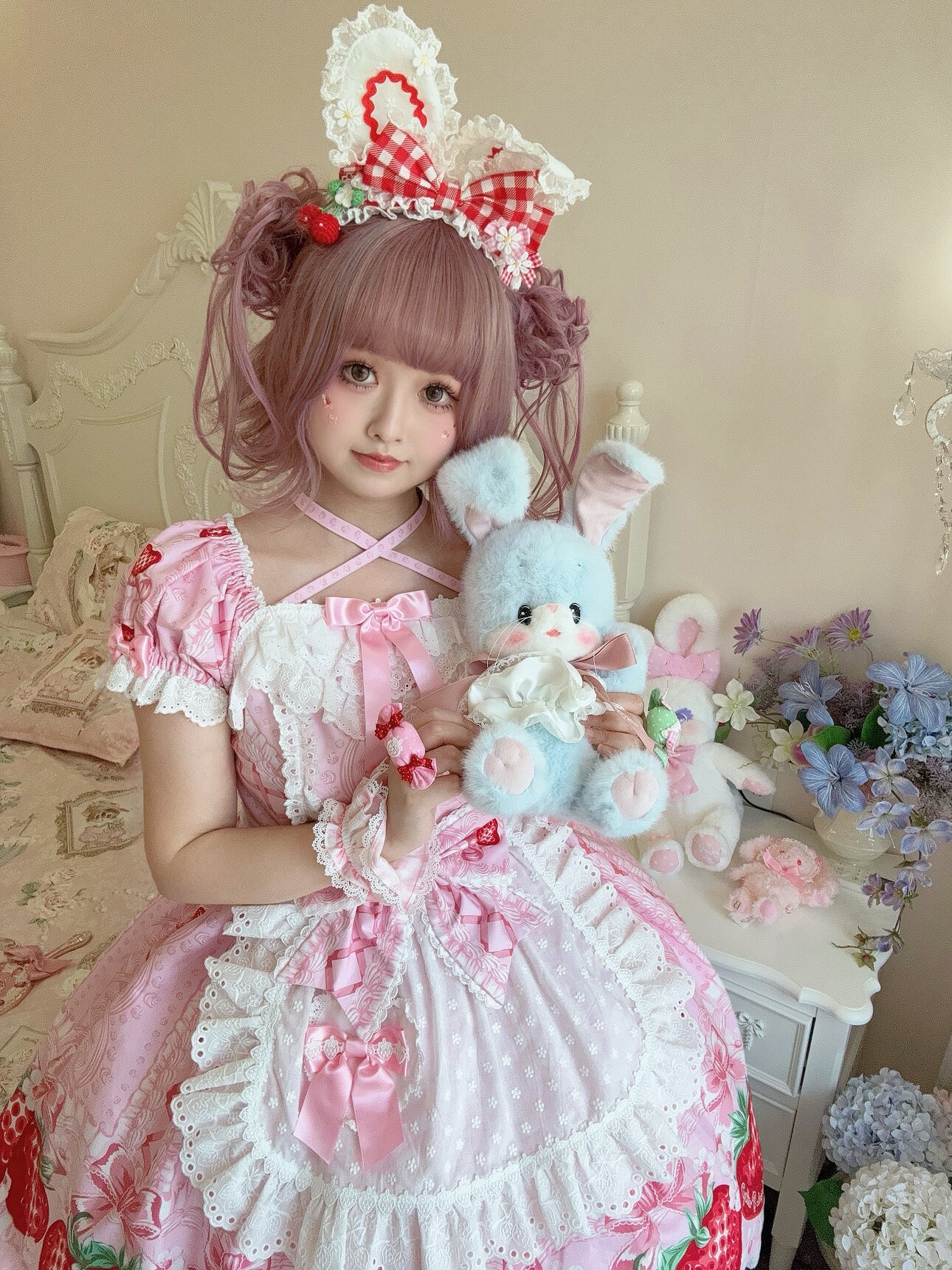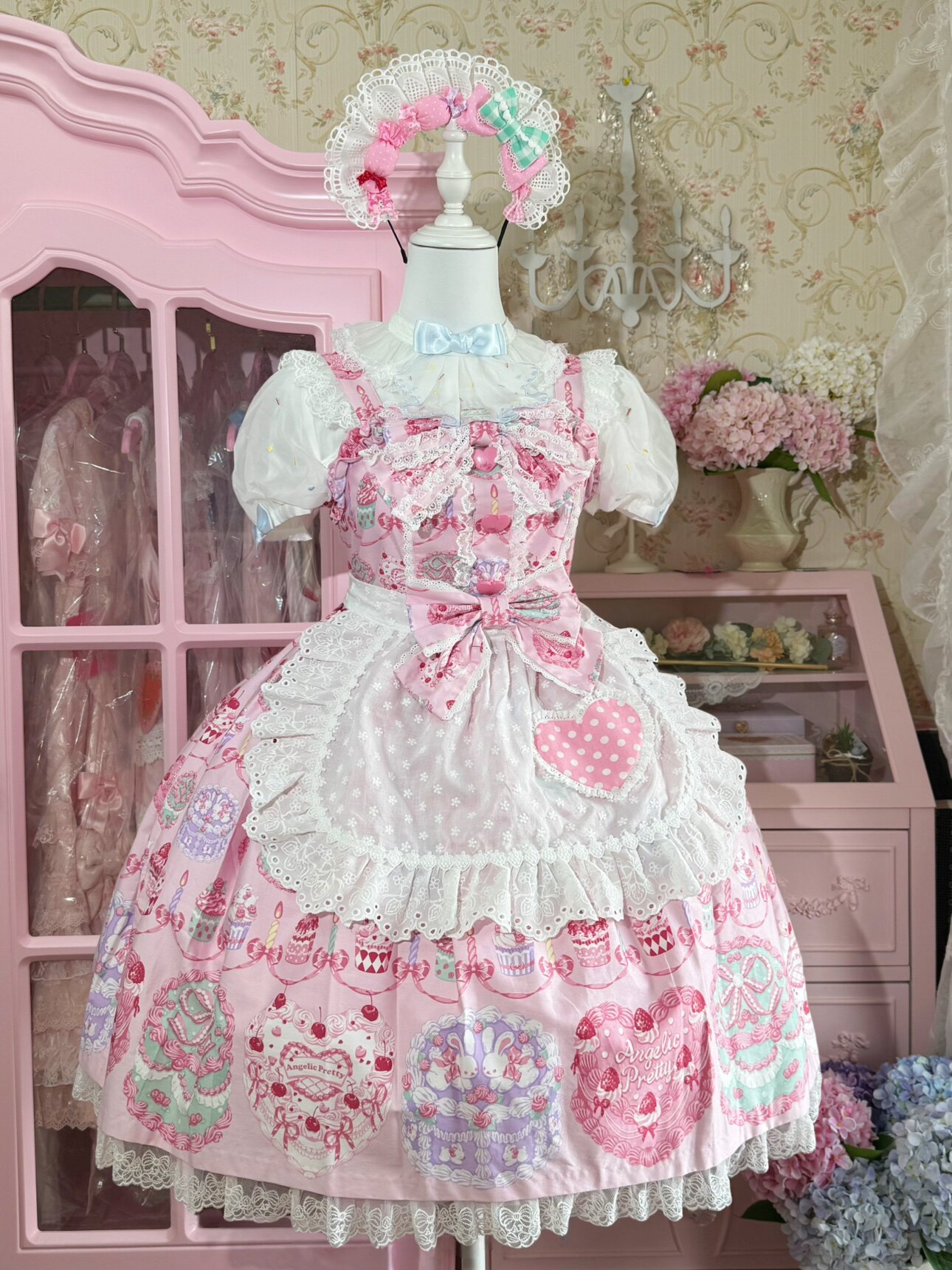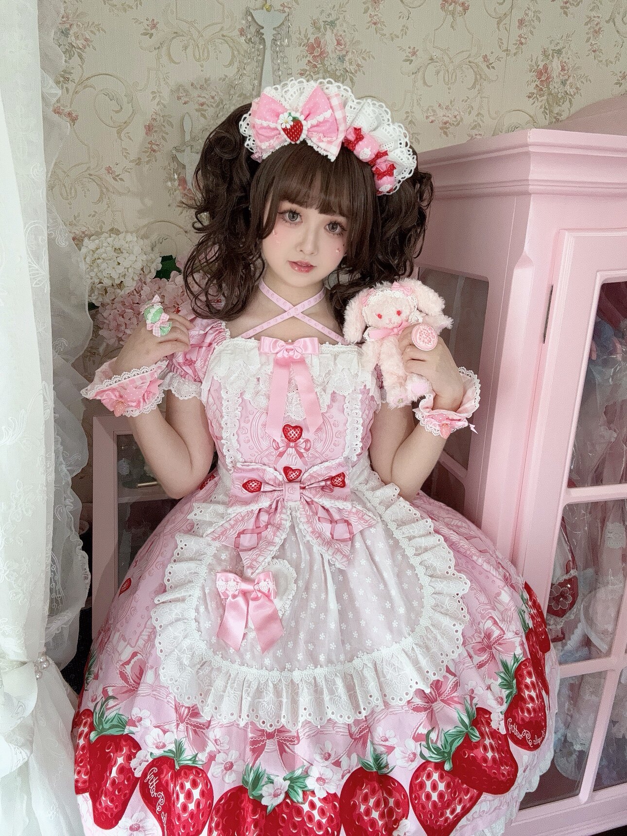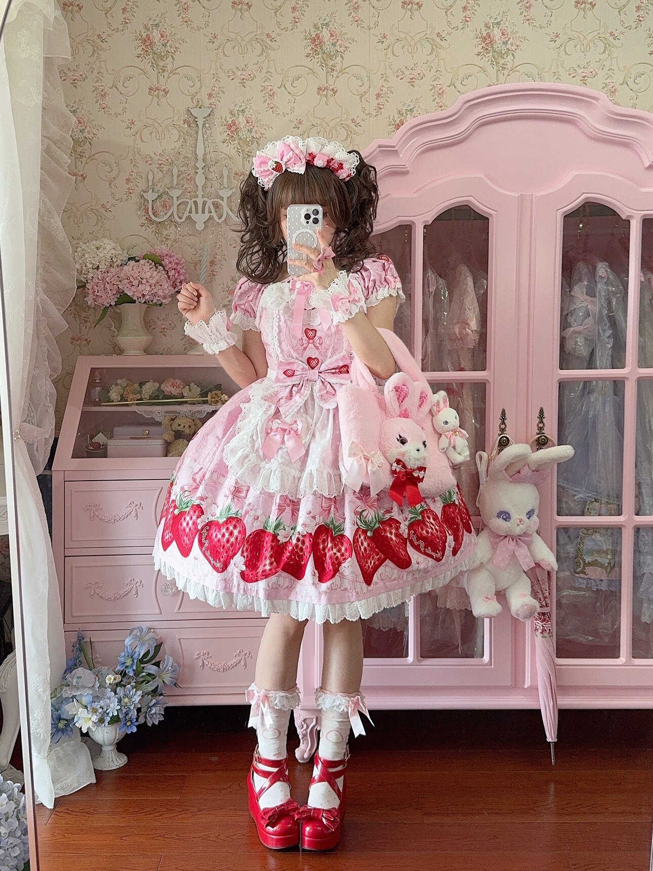 【芝士猫手作】超萌!新品草莓刺绣蕾丝蝴蝶结lolita小物棉布围裙 [Original Page Link]