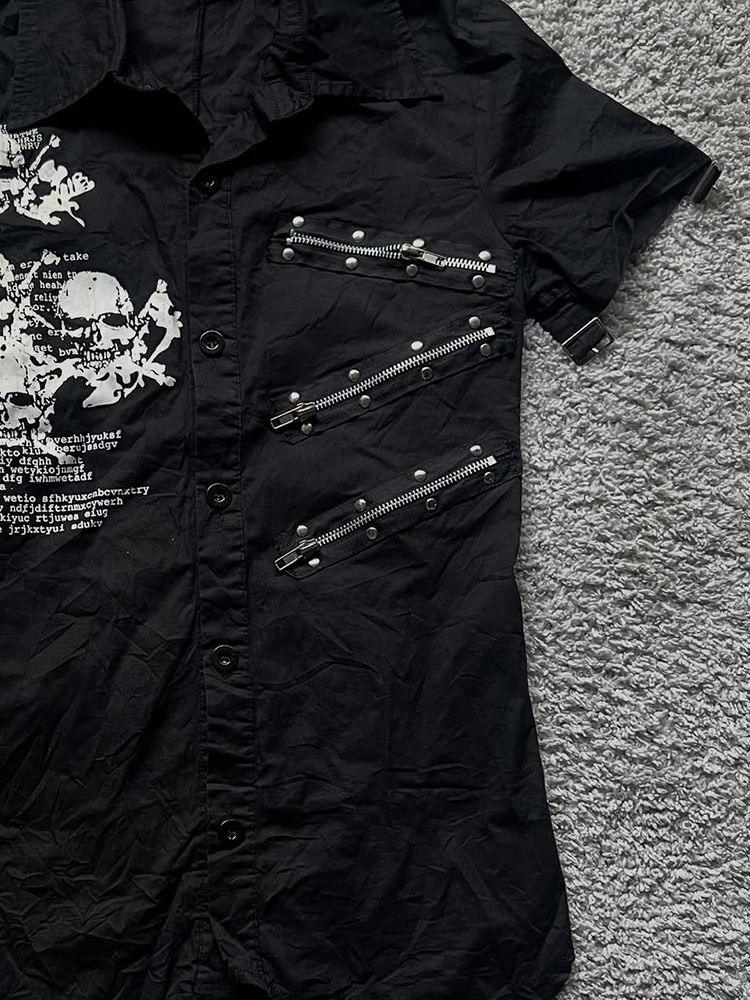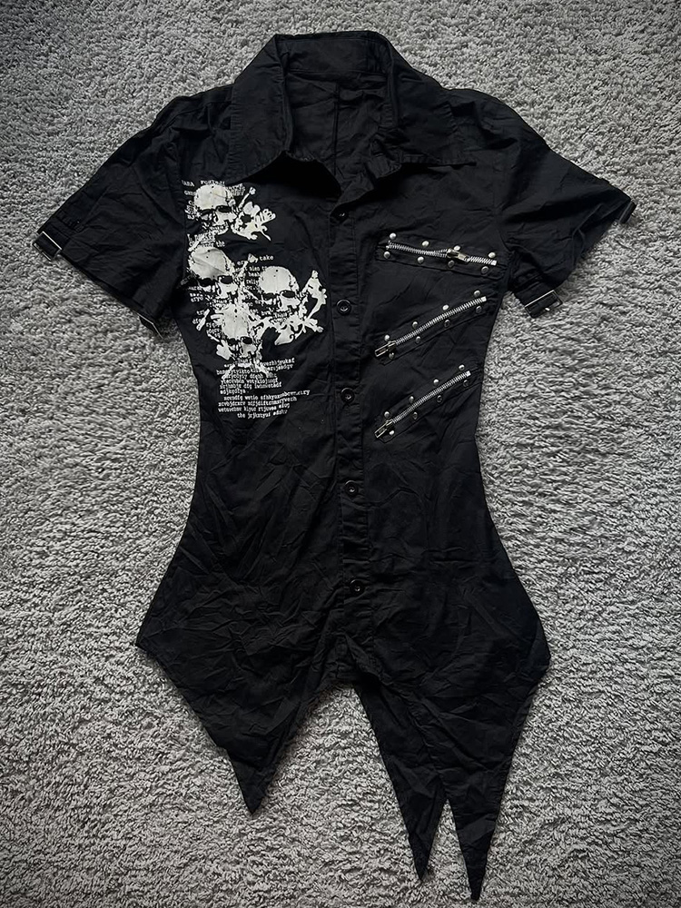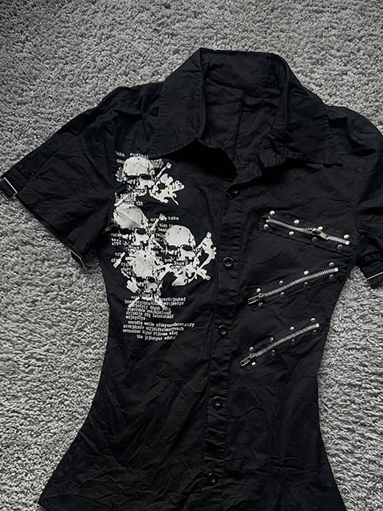 花末 原创覆古小众设计感黑色衬衫女夏季vintage气质别致显瘦上衣 [Original Page Link]