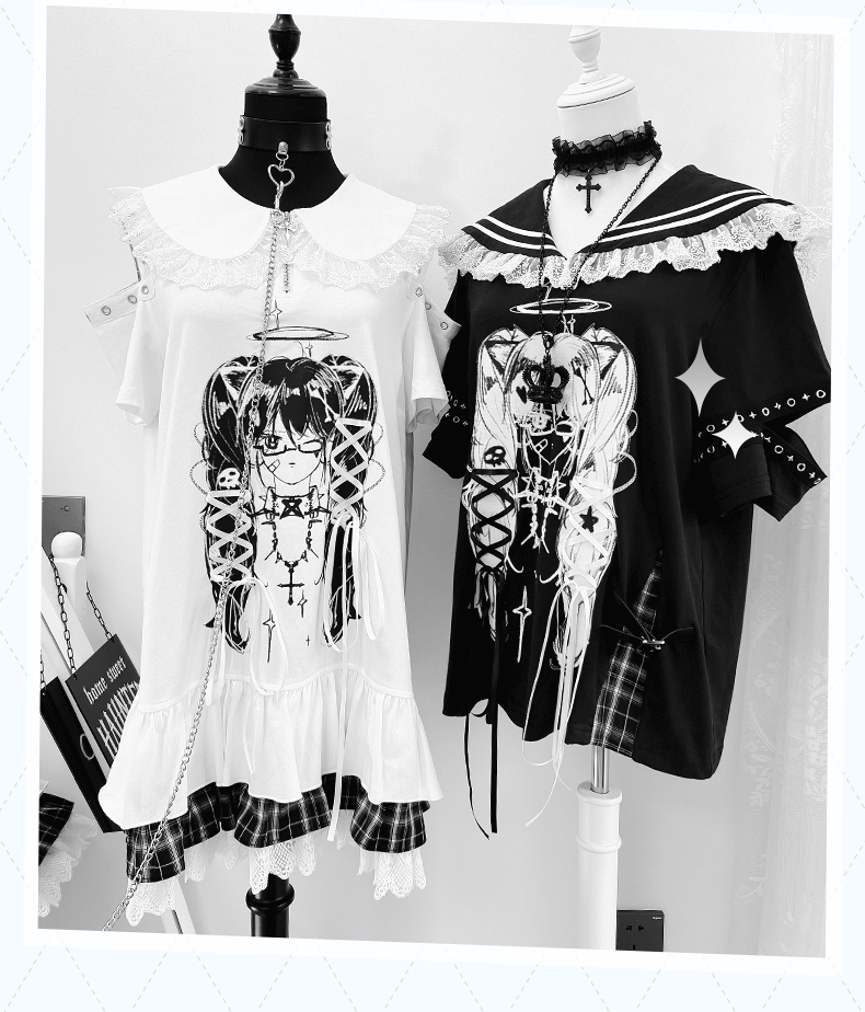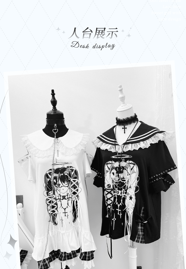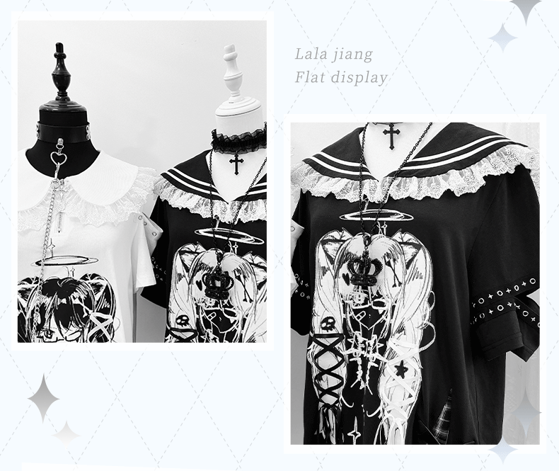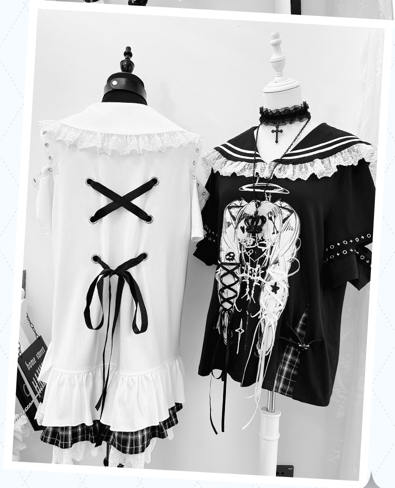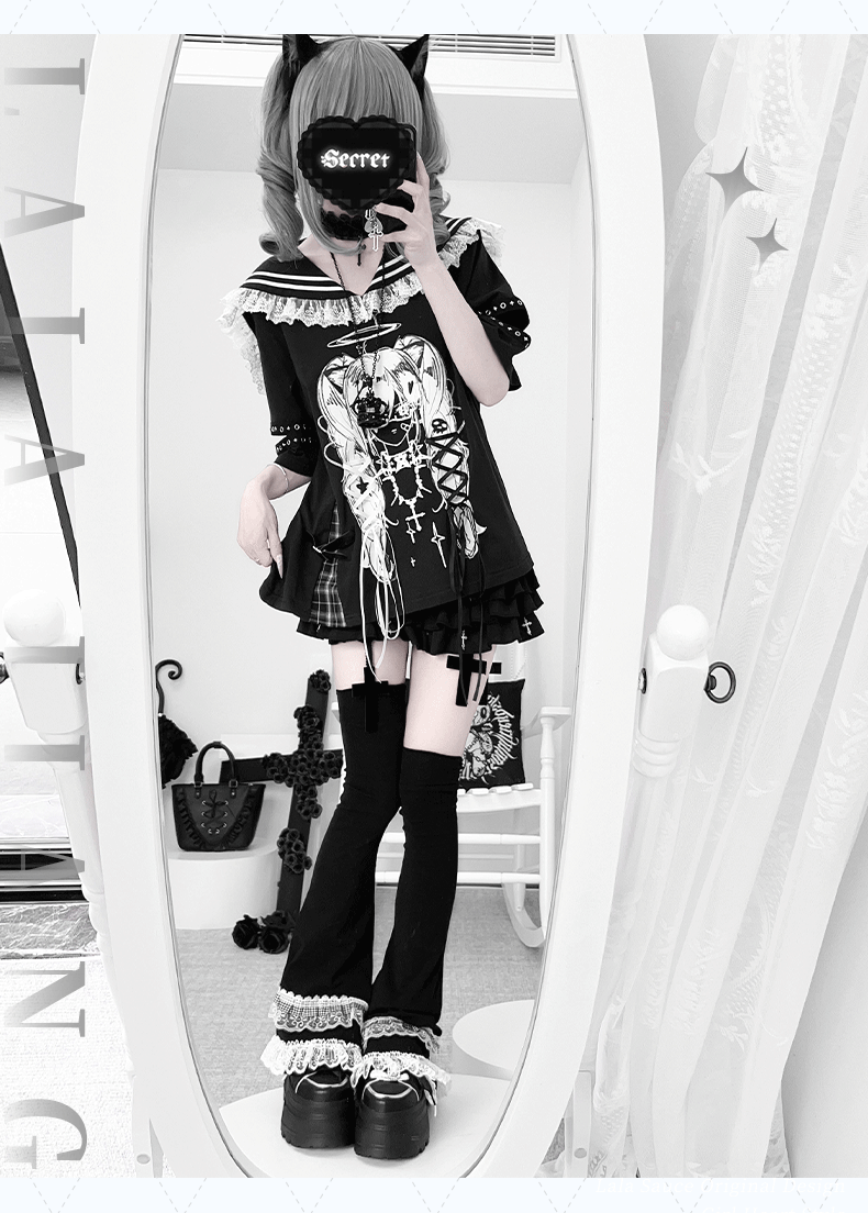 啦啦酱 至暗 原创设计亚文化印花海军领绑带上衣少女甜酷穿搭套装 [Original Page Link]