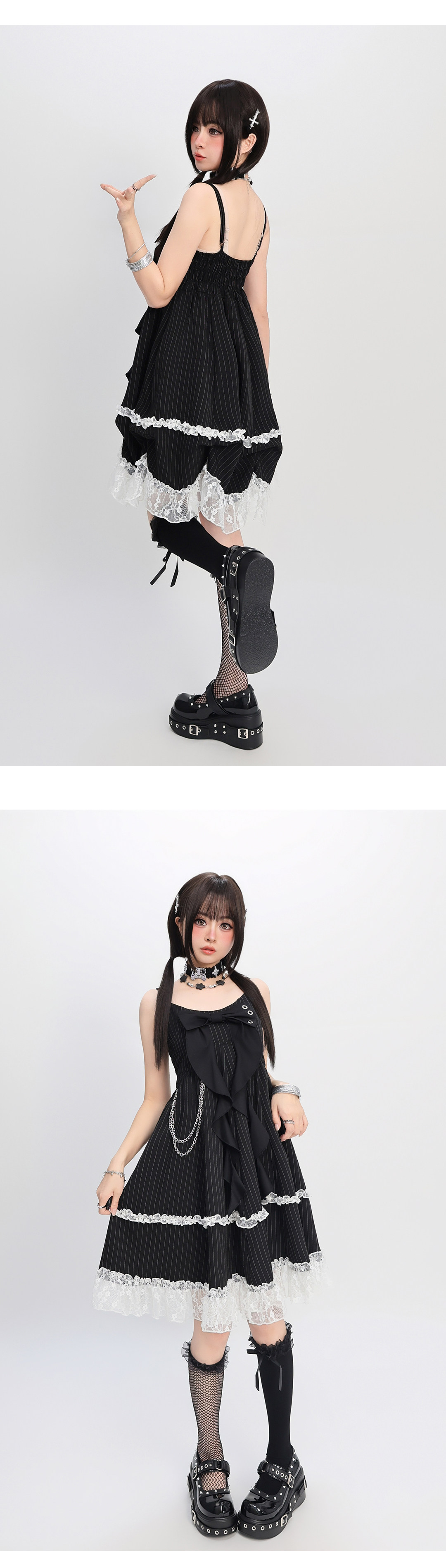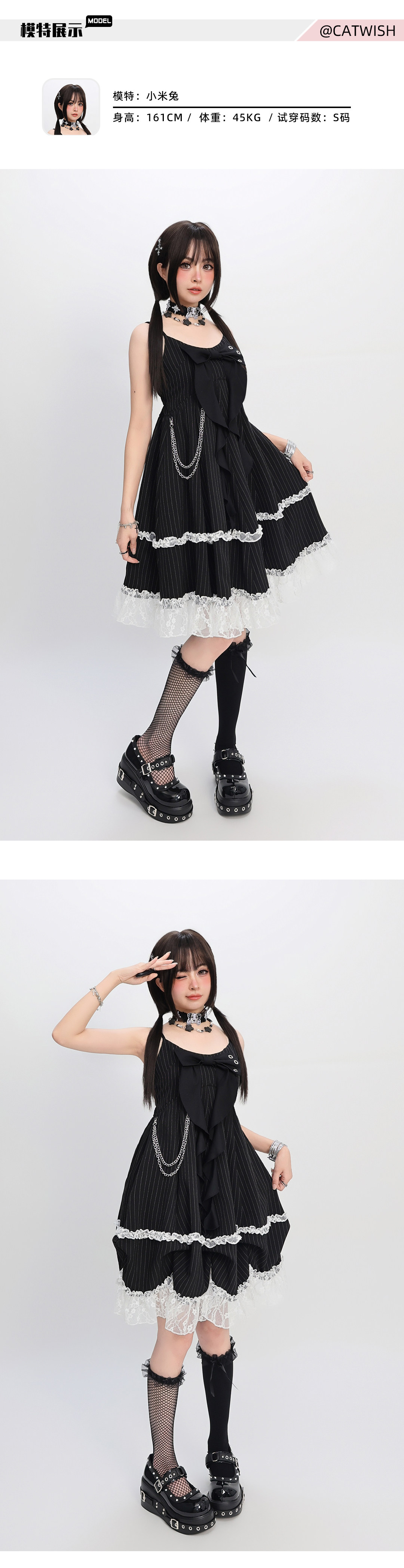 [新品95折]猫愿 𫖸原创【月影轨迹】甜酷轻亚吊带蕾丝花苞洋装蓬蓬 [Original Page Link]
