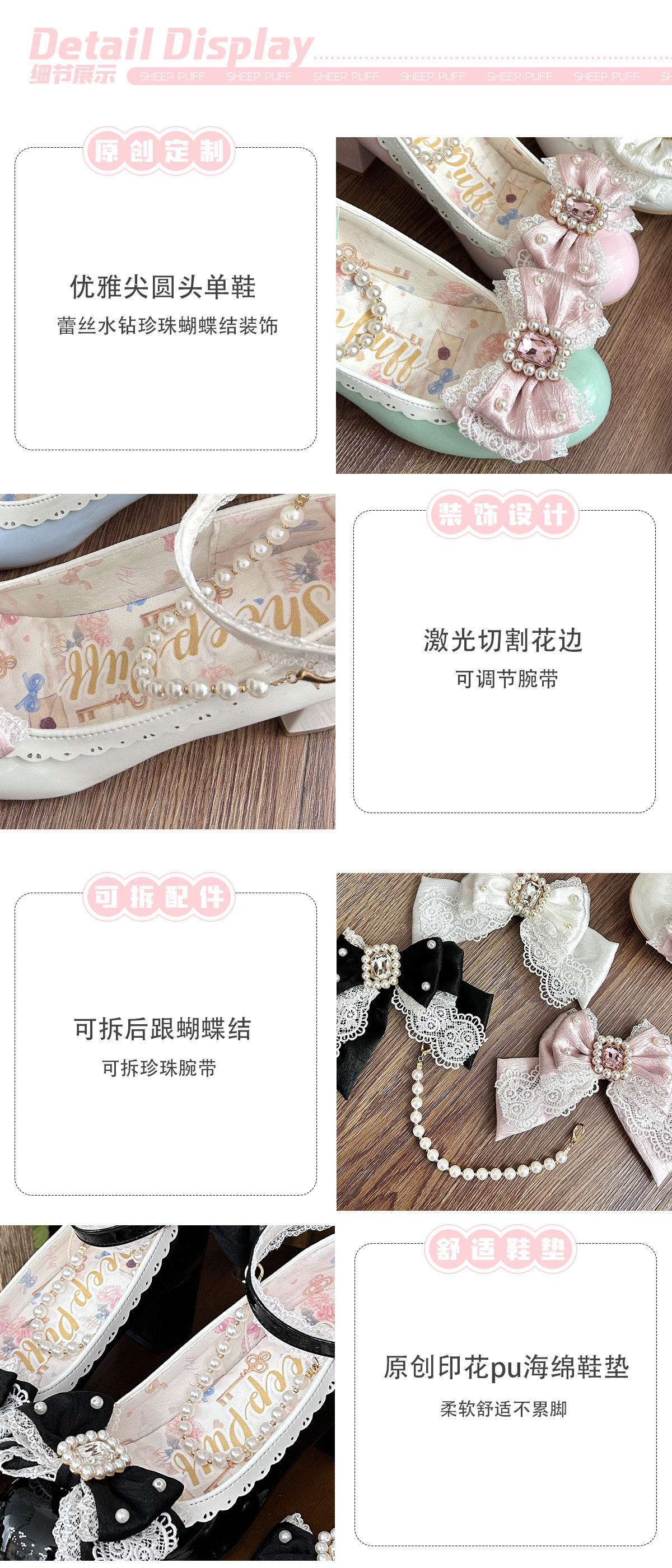 【尾款三团】香香公主 绵羊泡芙Lolita蝴蝶结中跟珍珠玛丽珍 [Original Page Link]