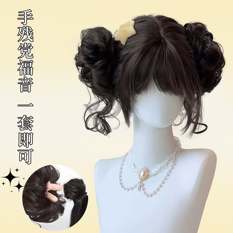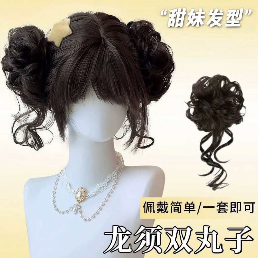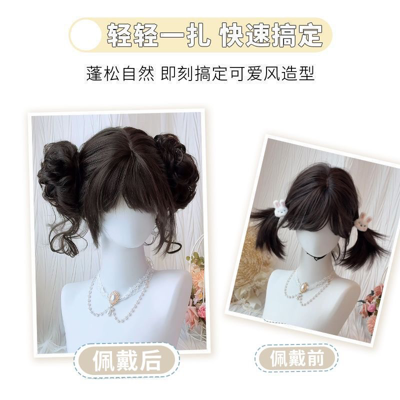 Dragon whisker double bun JK style Lolita style wig, natural fluffy Lolita style wig, sweet new curly wig bun