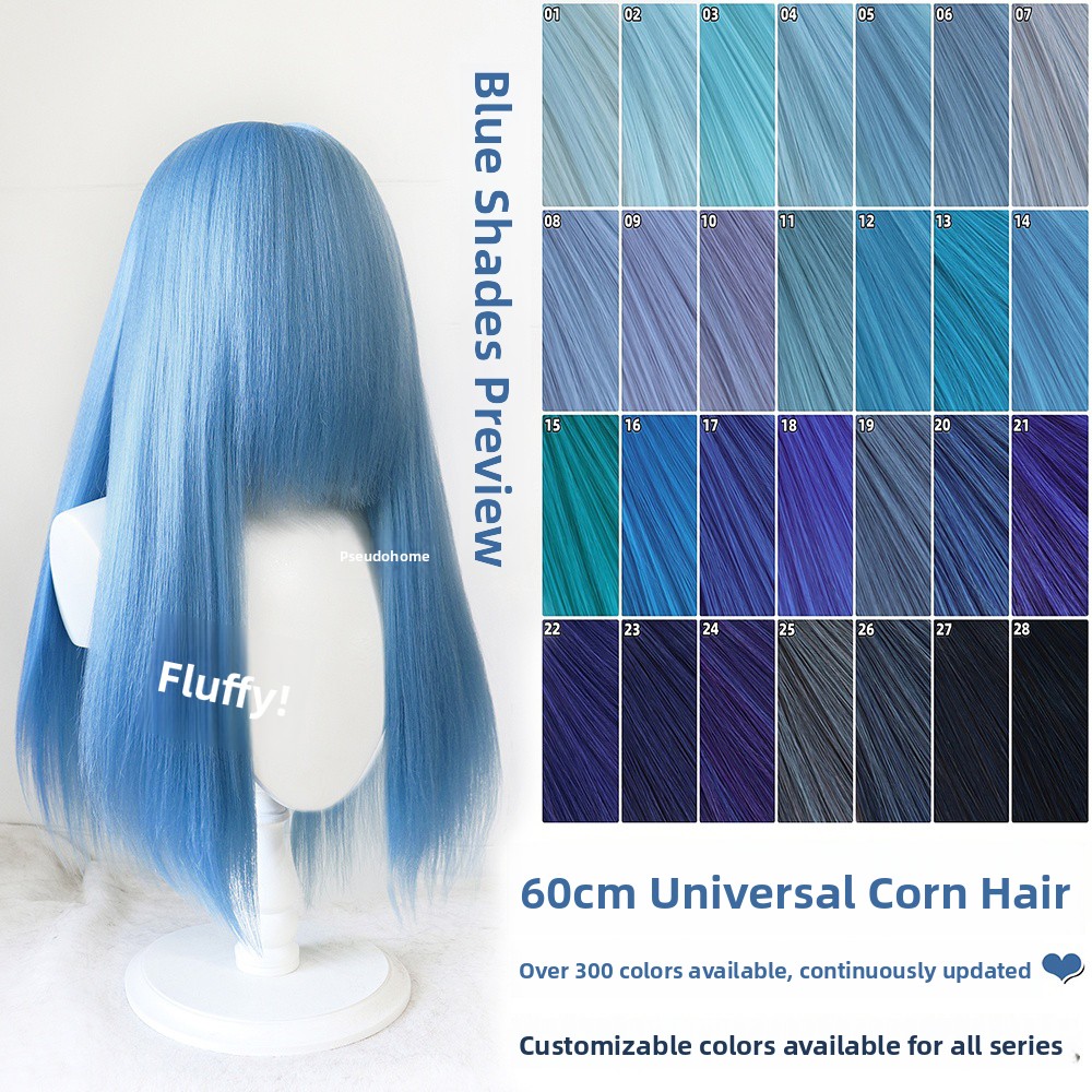 伪伪家蓝色系万用玉米须60cm长直蓬蓬丝cos深浅青碧靛cosplay假发 [Original Page Link]