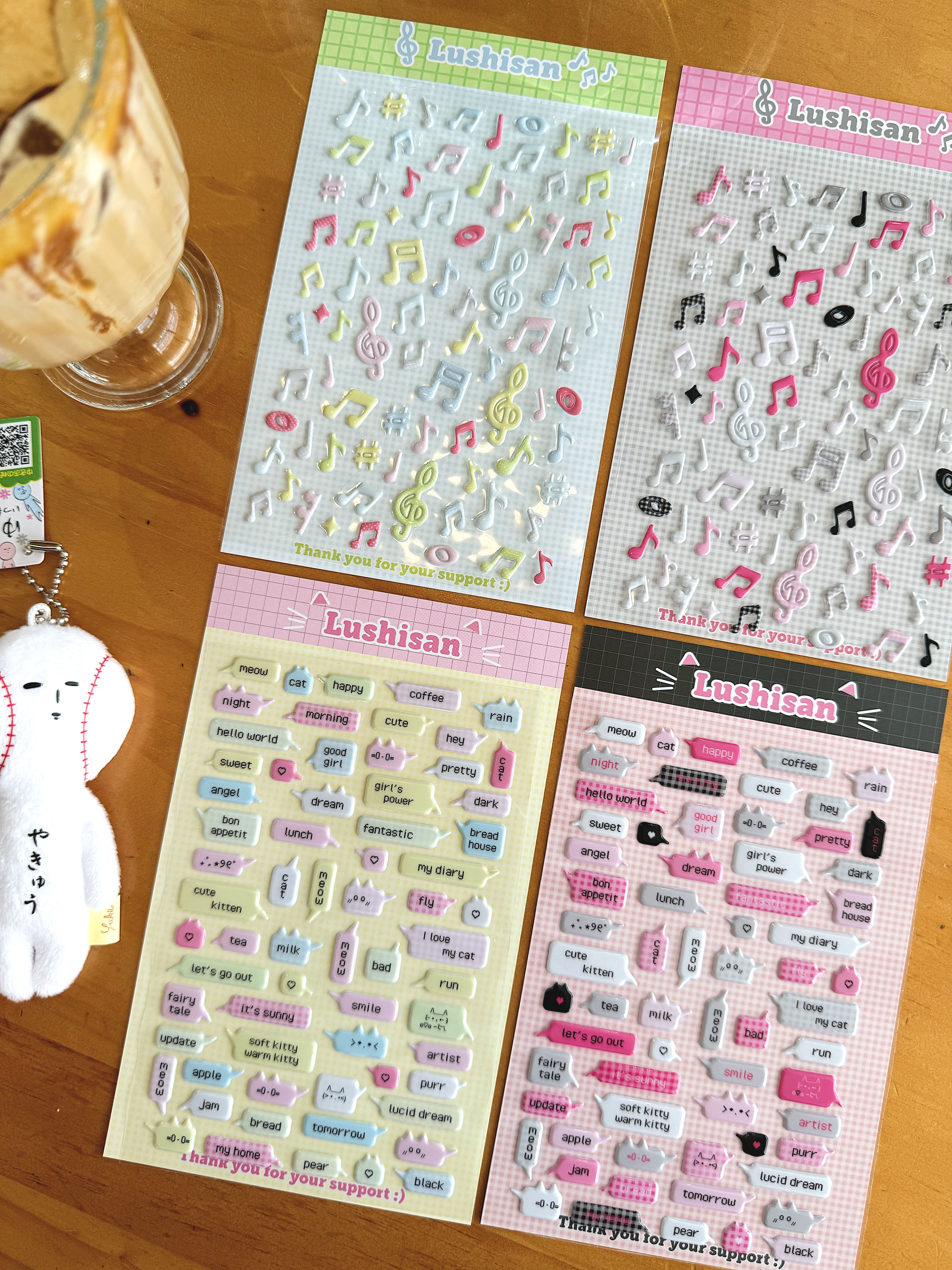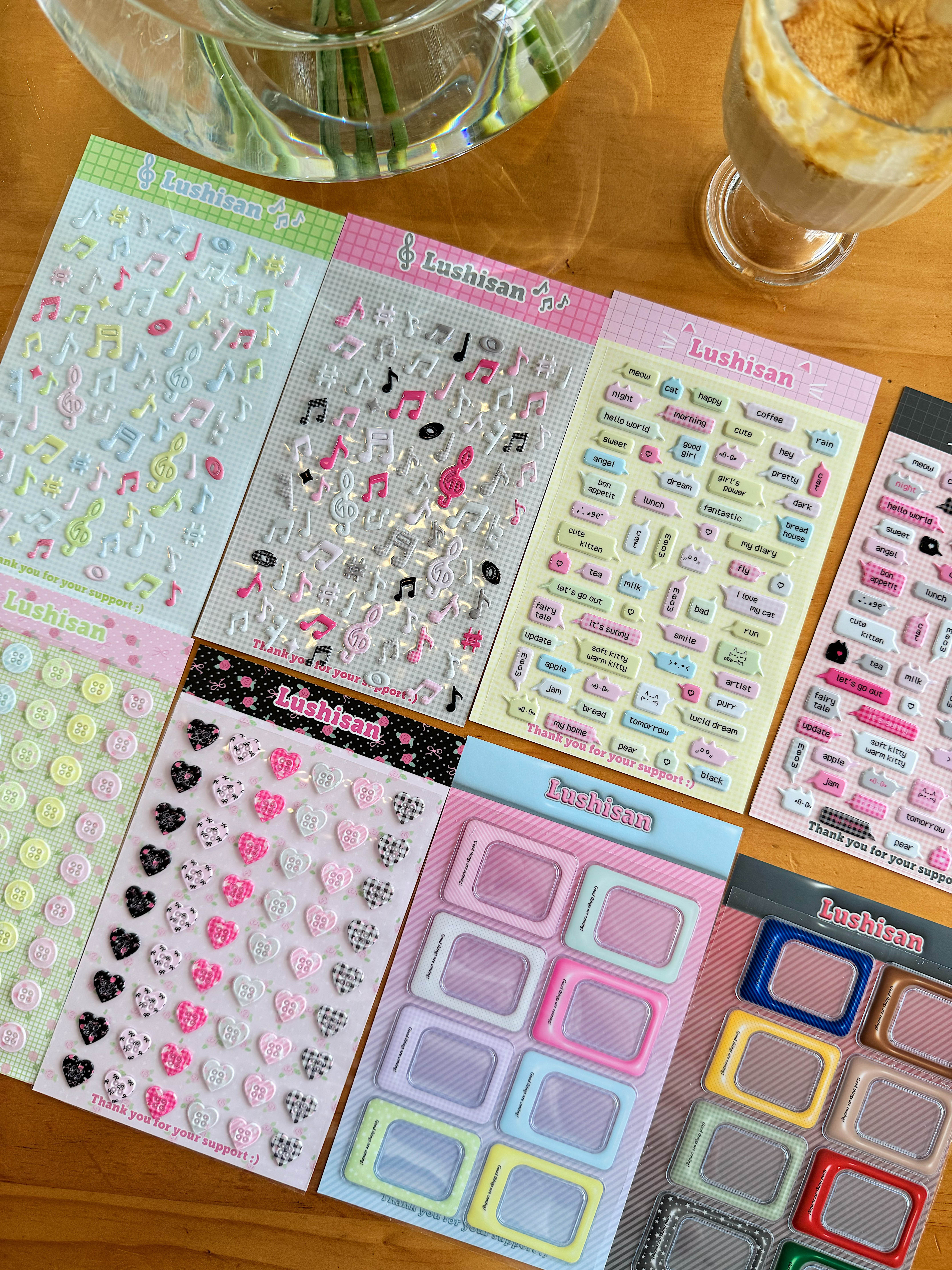 [现货]鹿拾三 猫咪对话框猫/音符/碎花钮扣原创立体泡泡棉贴纸 [Original Page Link]