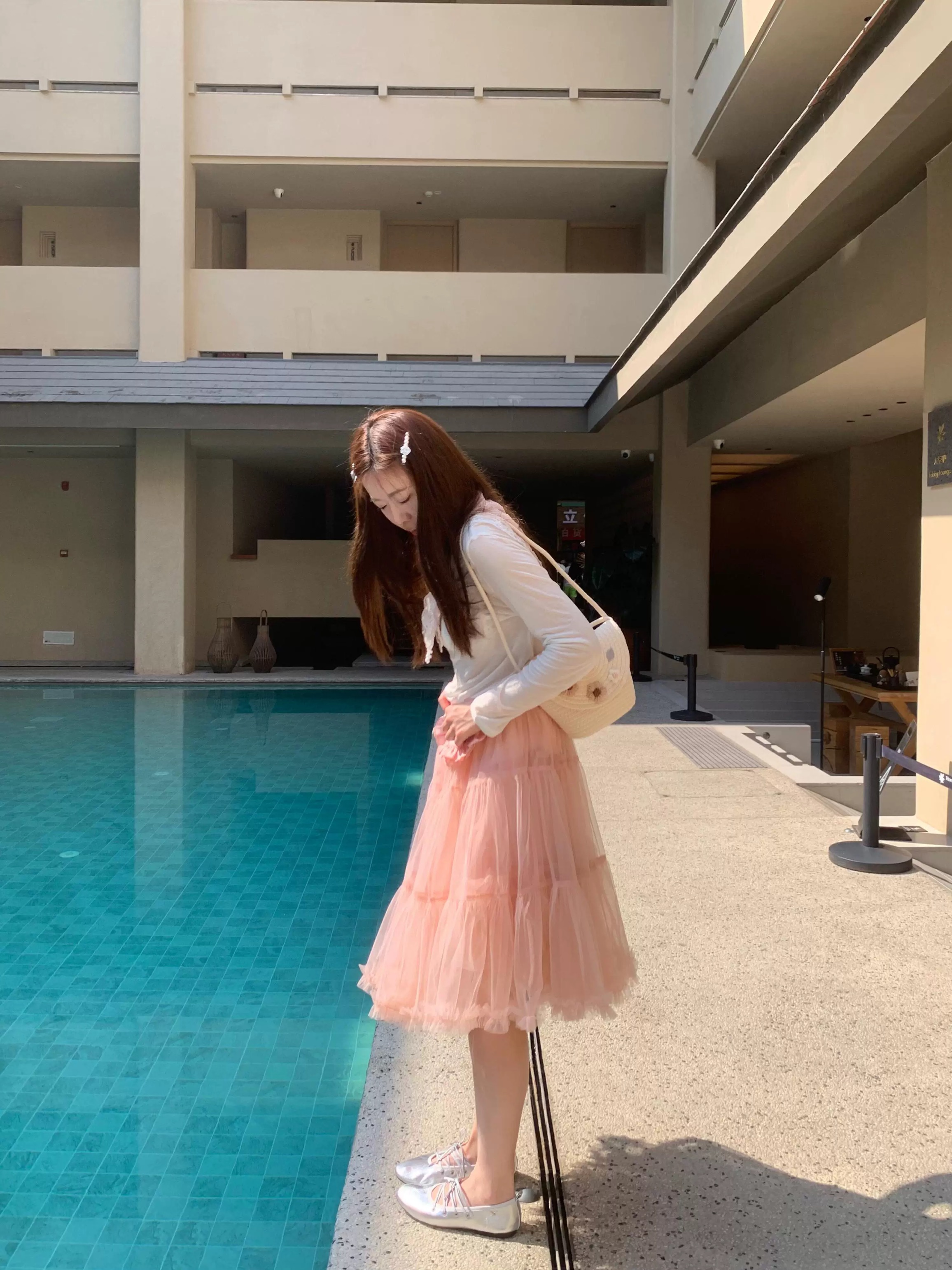 Ovins Yang highly recommends this! The quality is really good~ A stylish high-waisted, elegant, and versatile tulle skirt with pockets.