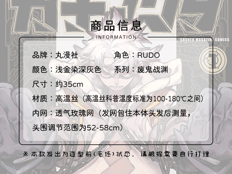 【丸漫社】废鬼战渊 RUDO路德 z型发缝染色款cos假发 毛坯 玉米须 [Original Page Link]
