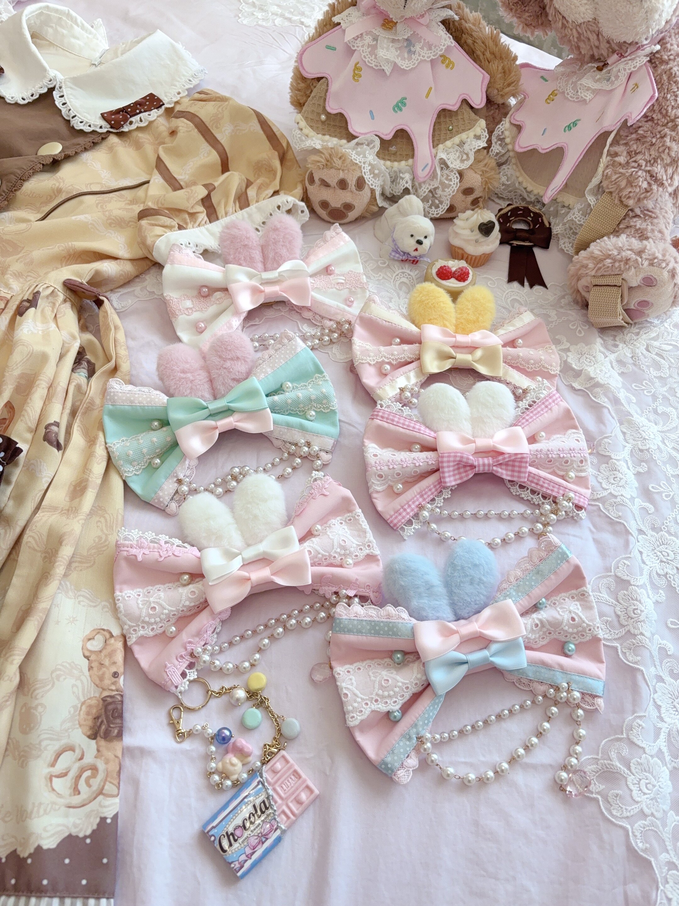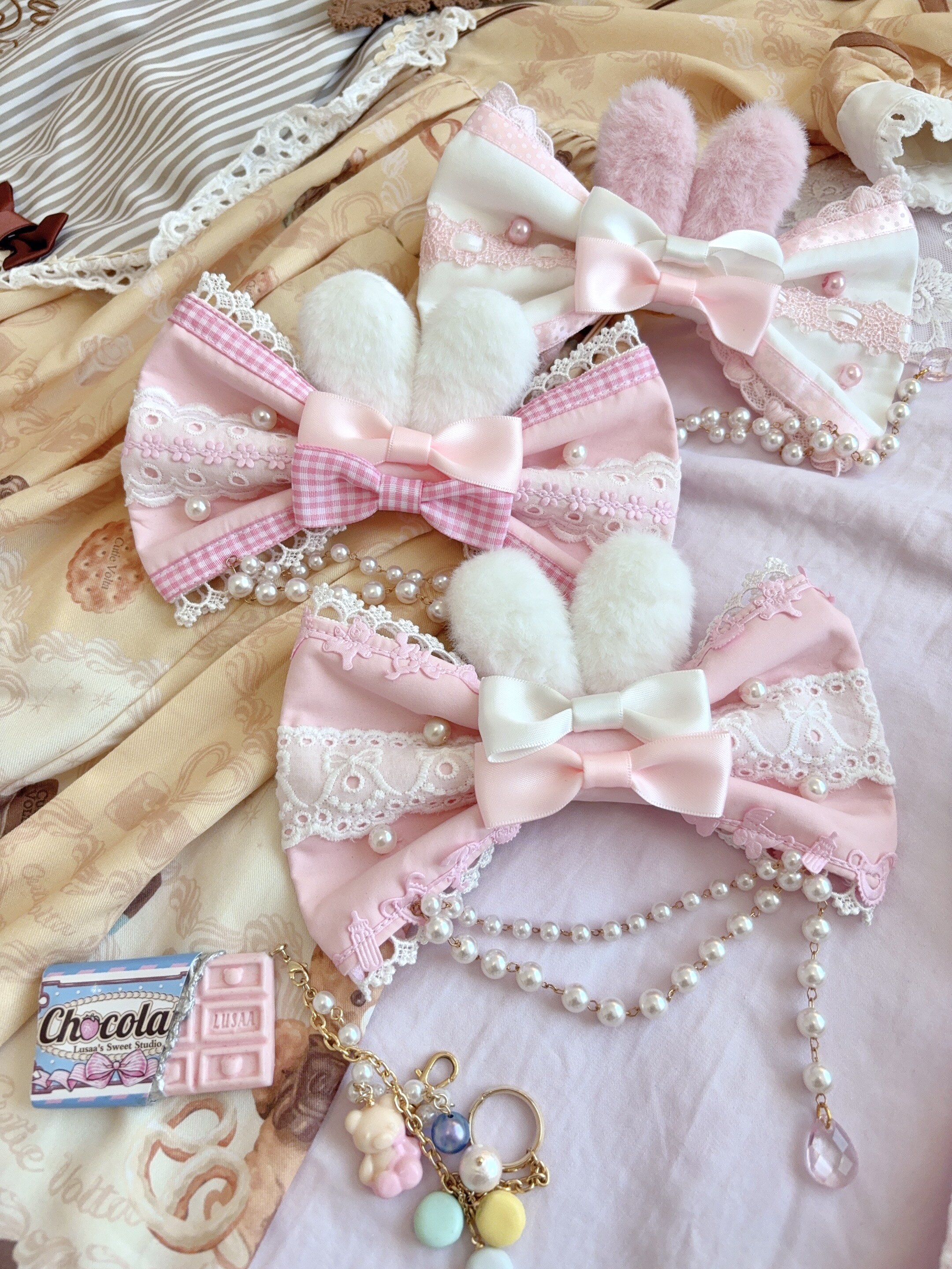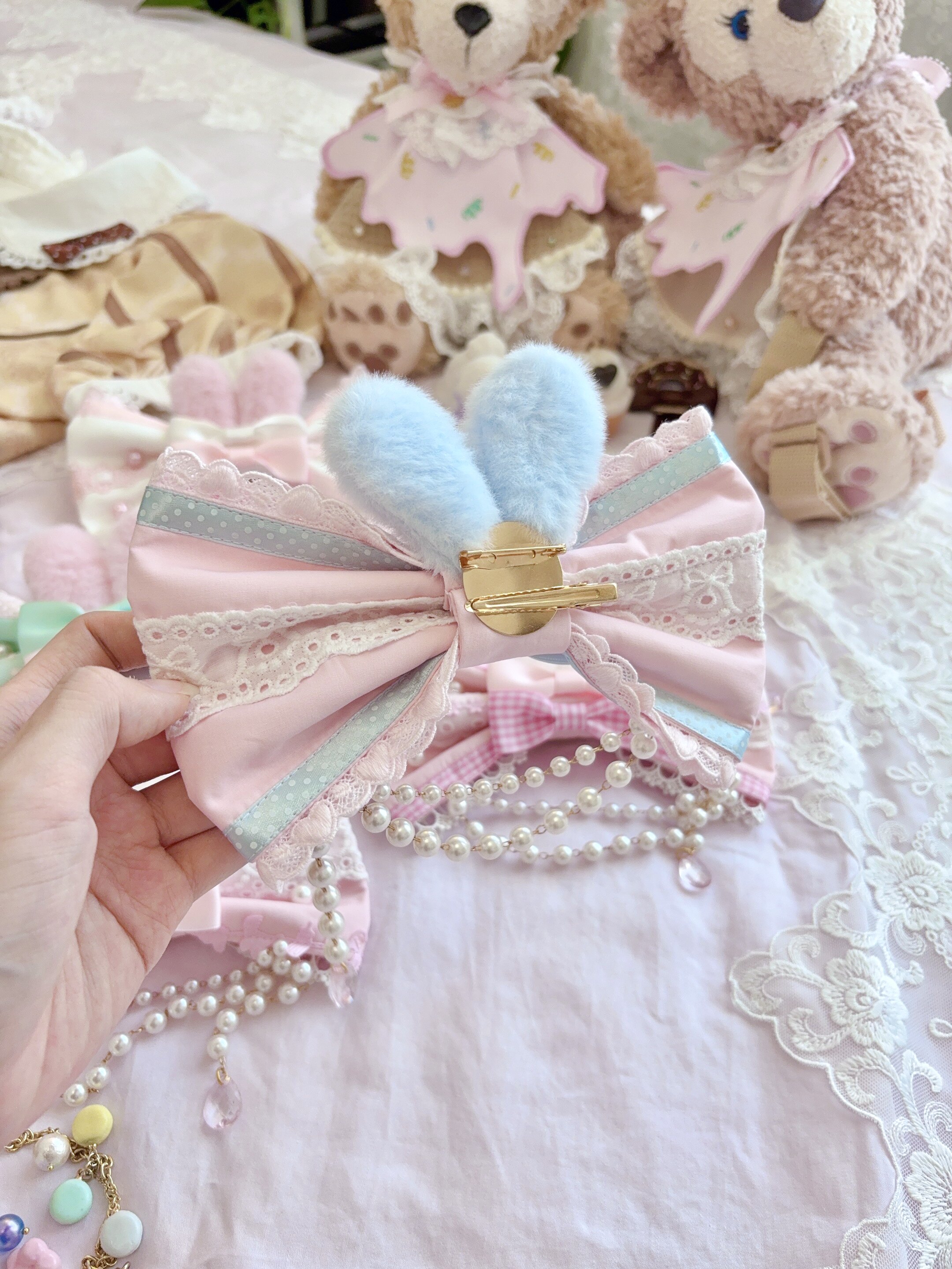 *两件包邮*兔耳蝴蝶结边夹胸针两用夹 手作Lolita fluff mollie [Original Page Link]