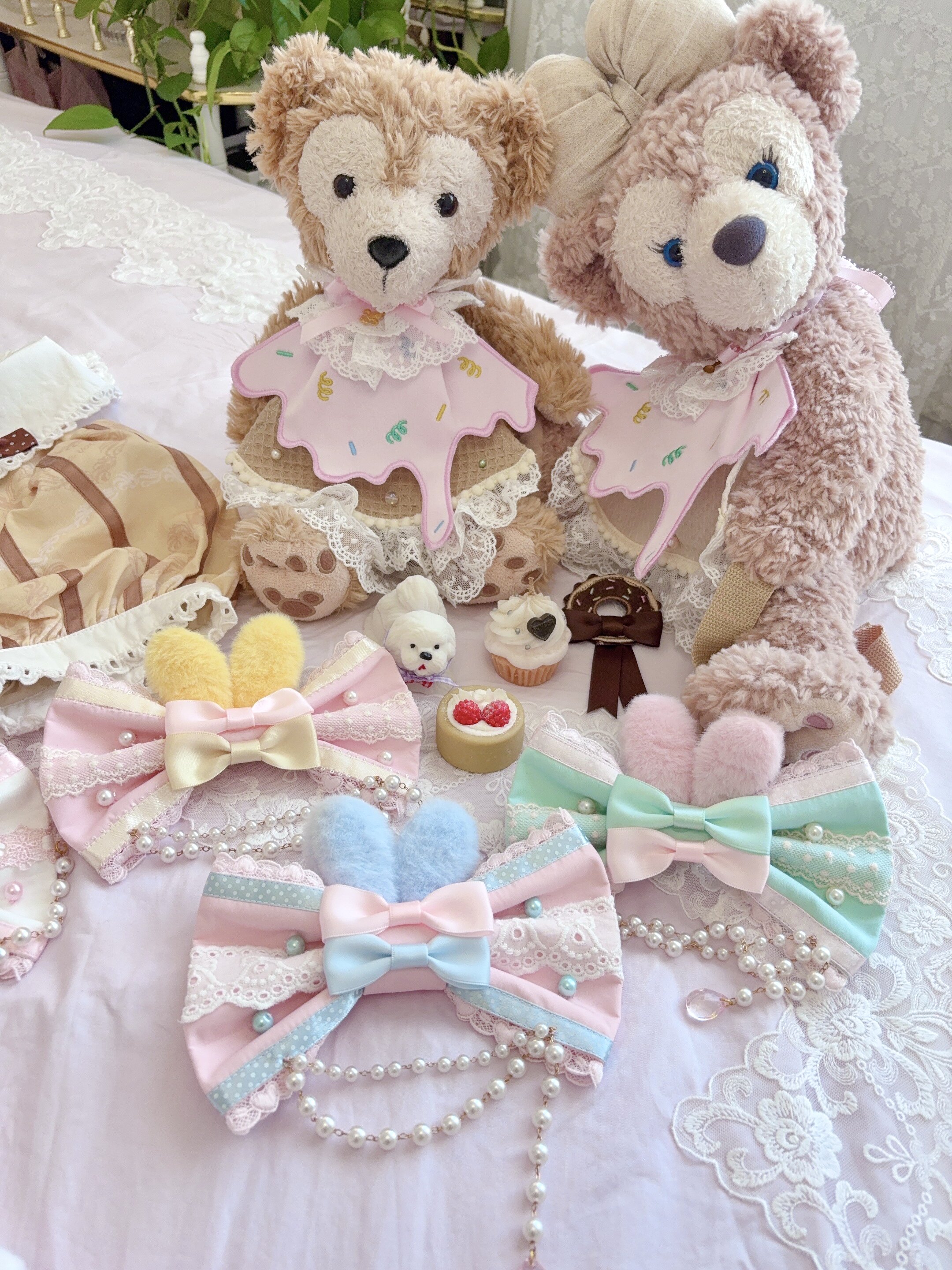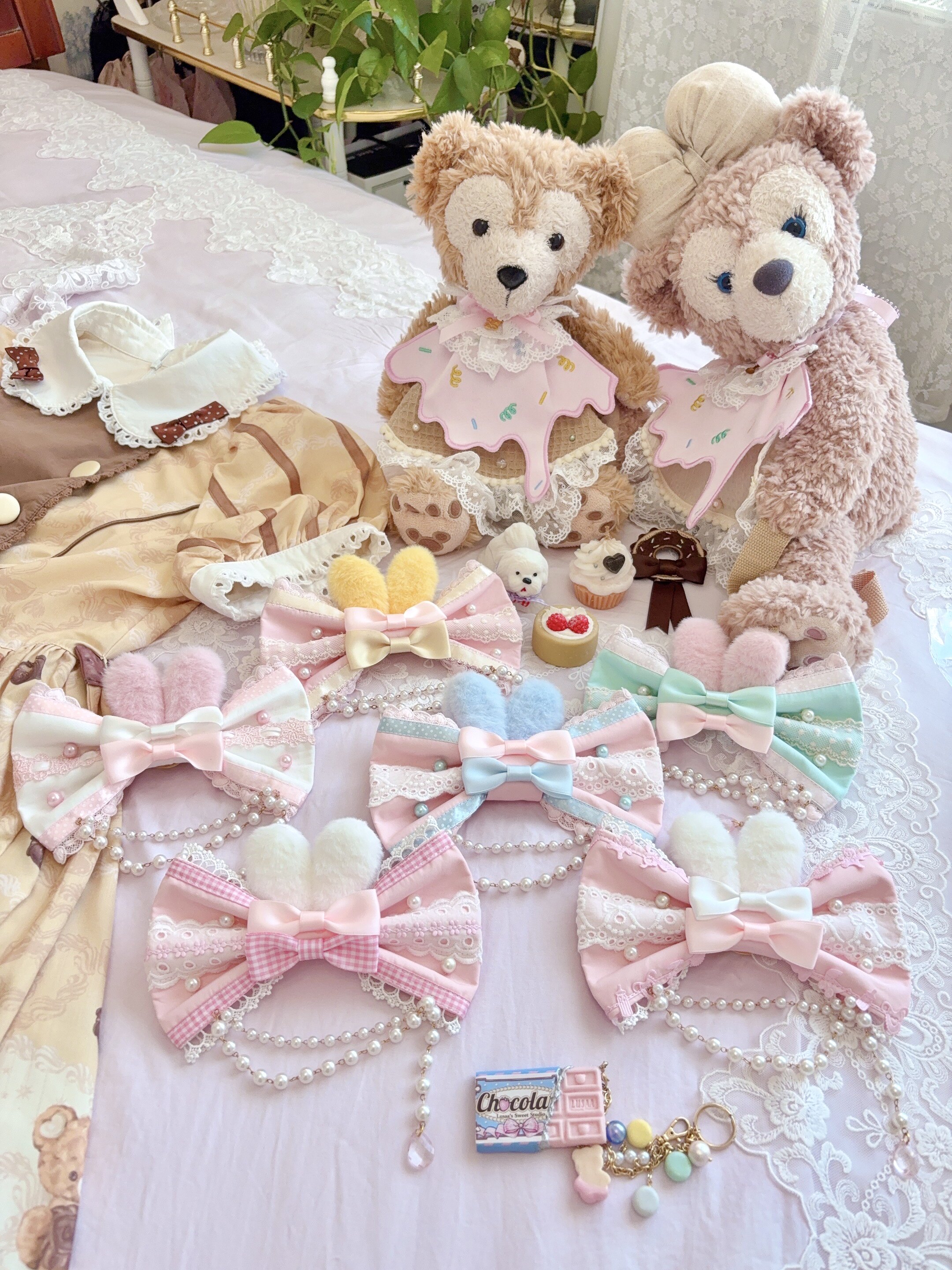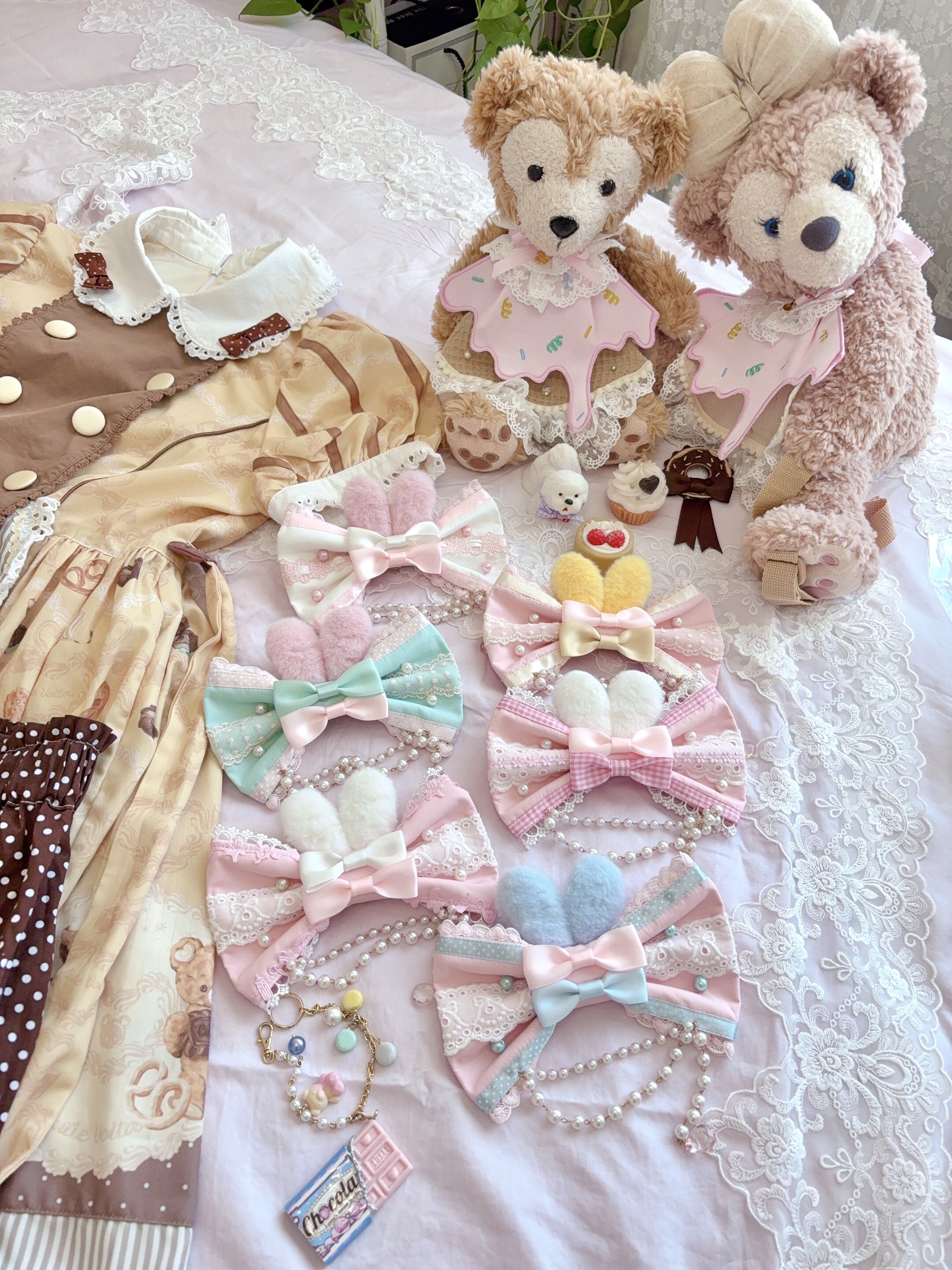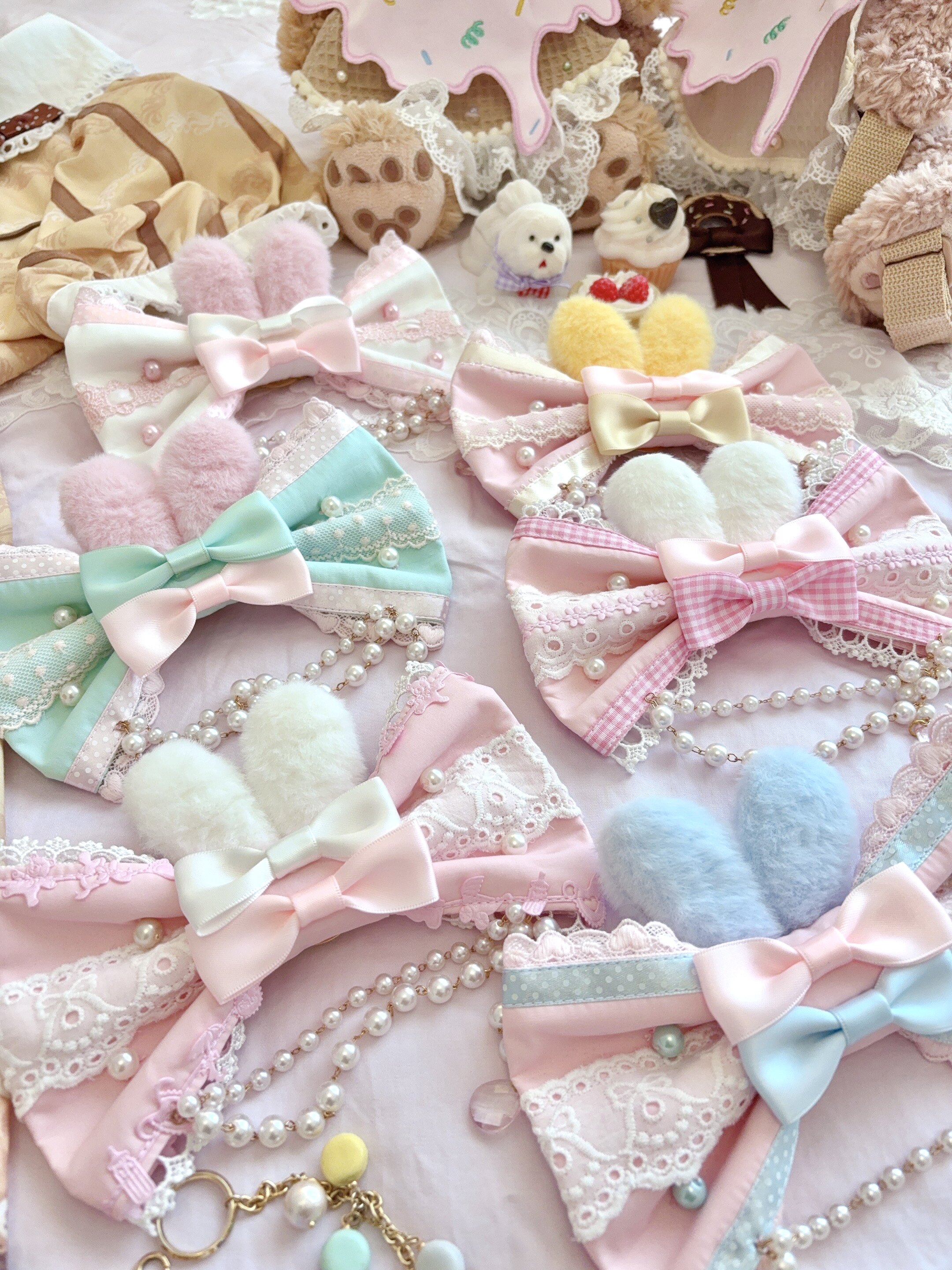 *两件包邮*兔耳蝴蝶结边夹胸针两用夹 手作Lolita fluff mollie [Original Page Link]