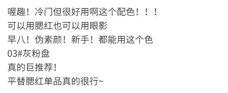 Ash Blush - A less popular single-color blush, low saturation, versatile, contouring shade, and gentle, suitable for students.