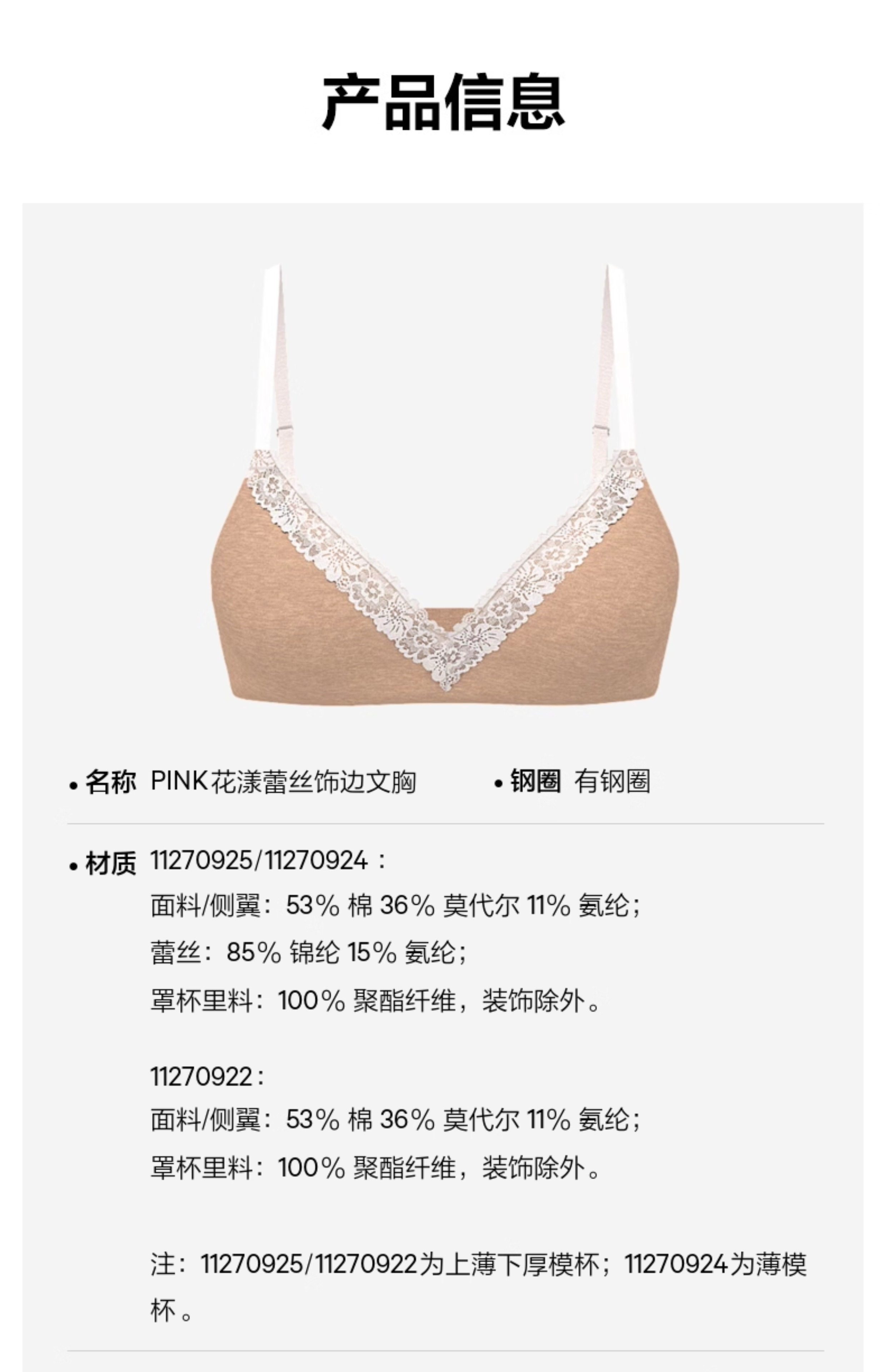 直降138|维多利亚的秘密 PINK 花漾蕾丝饰边舒适文胸内衣女2025秋 [Original Page Link]