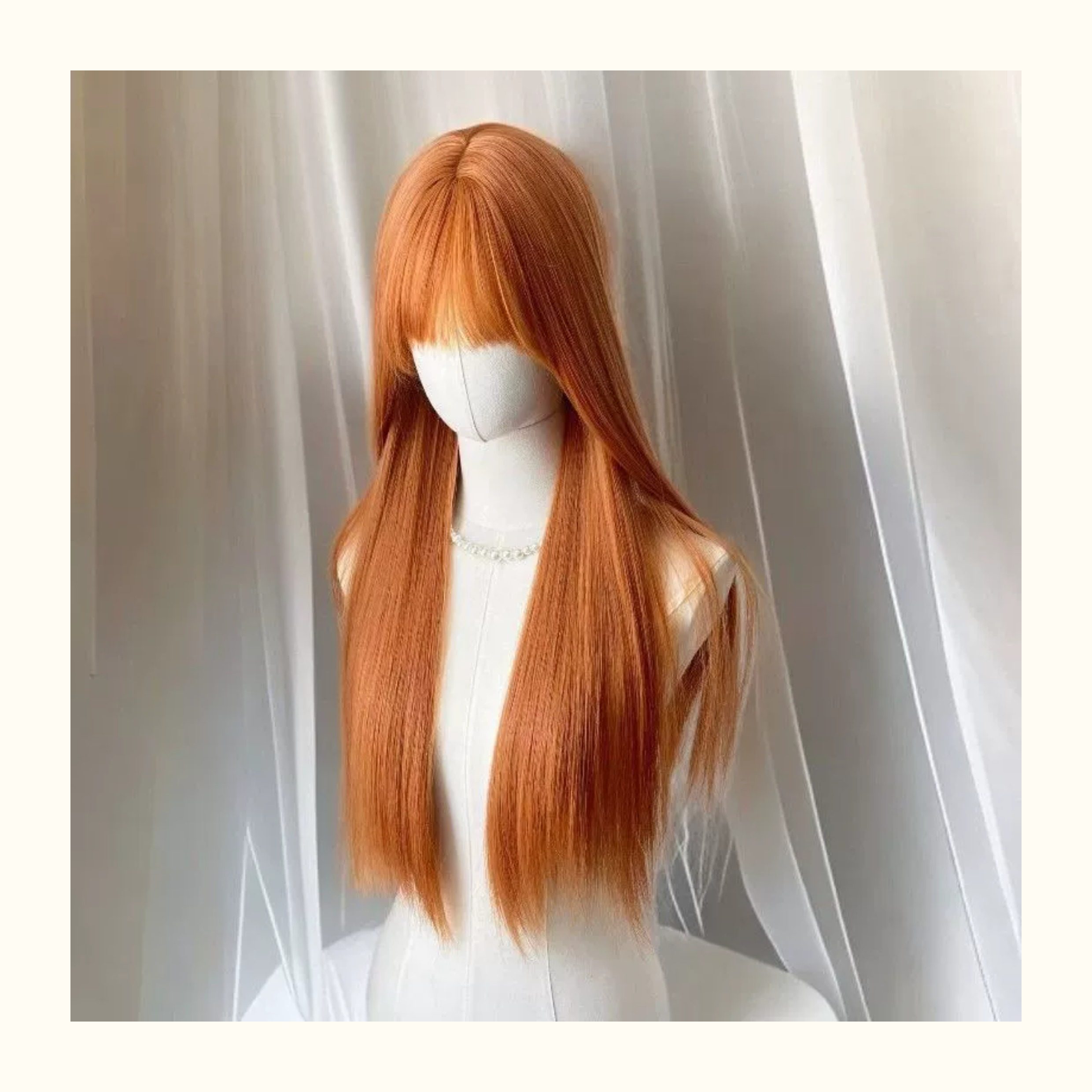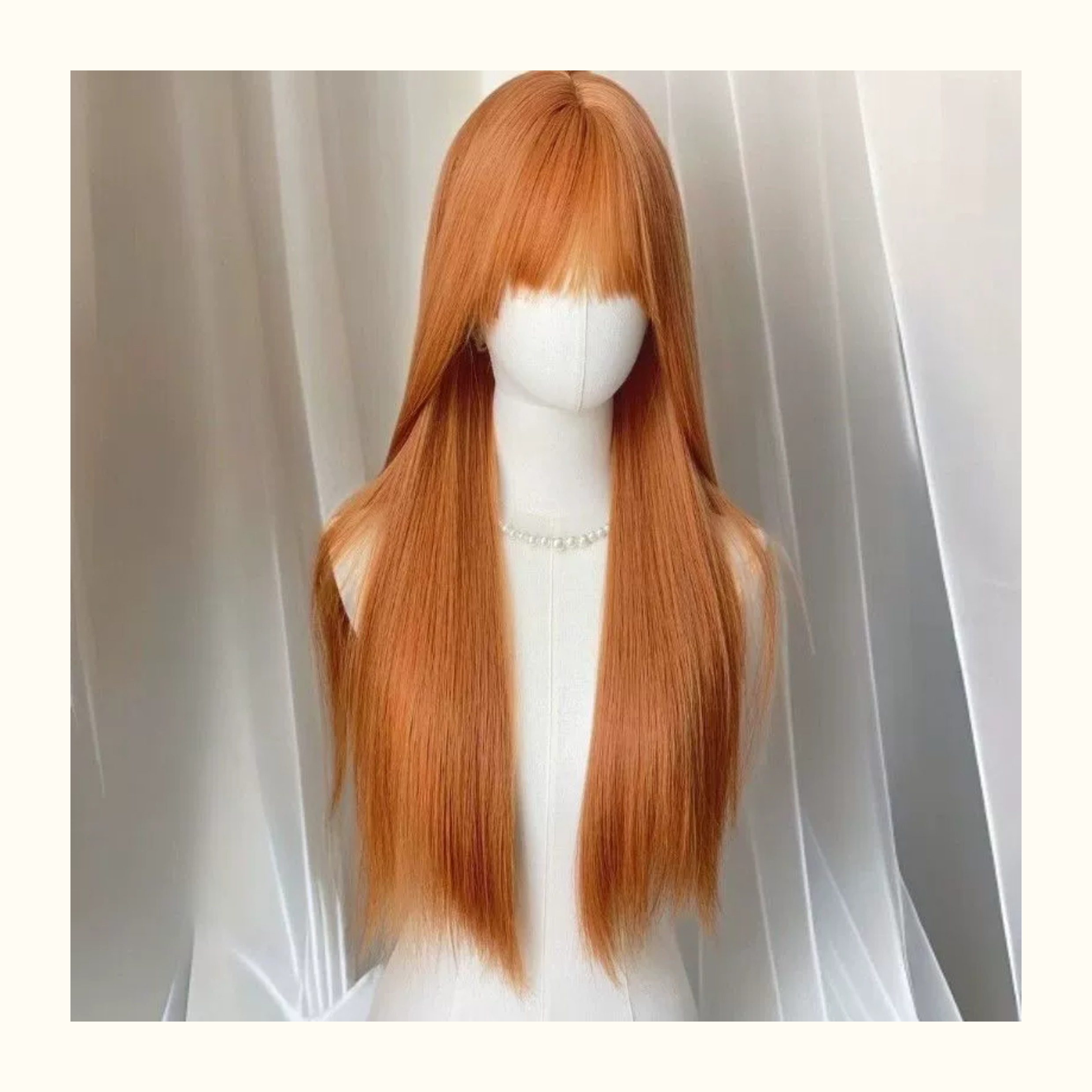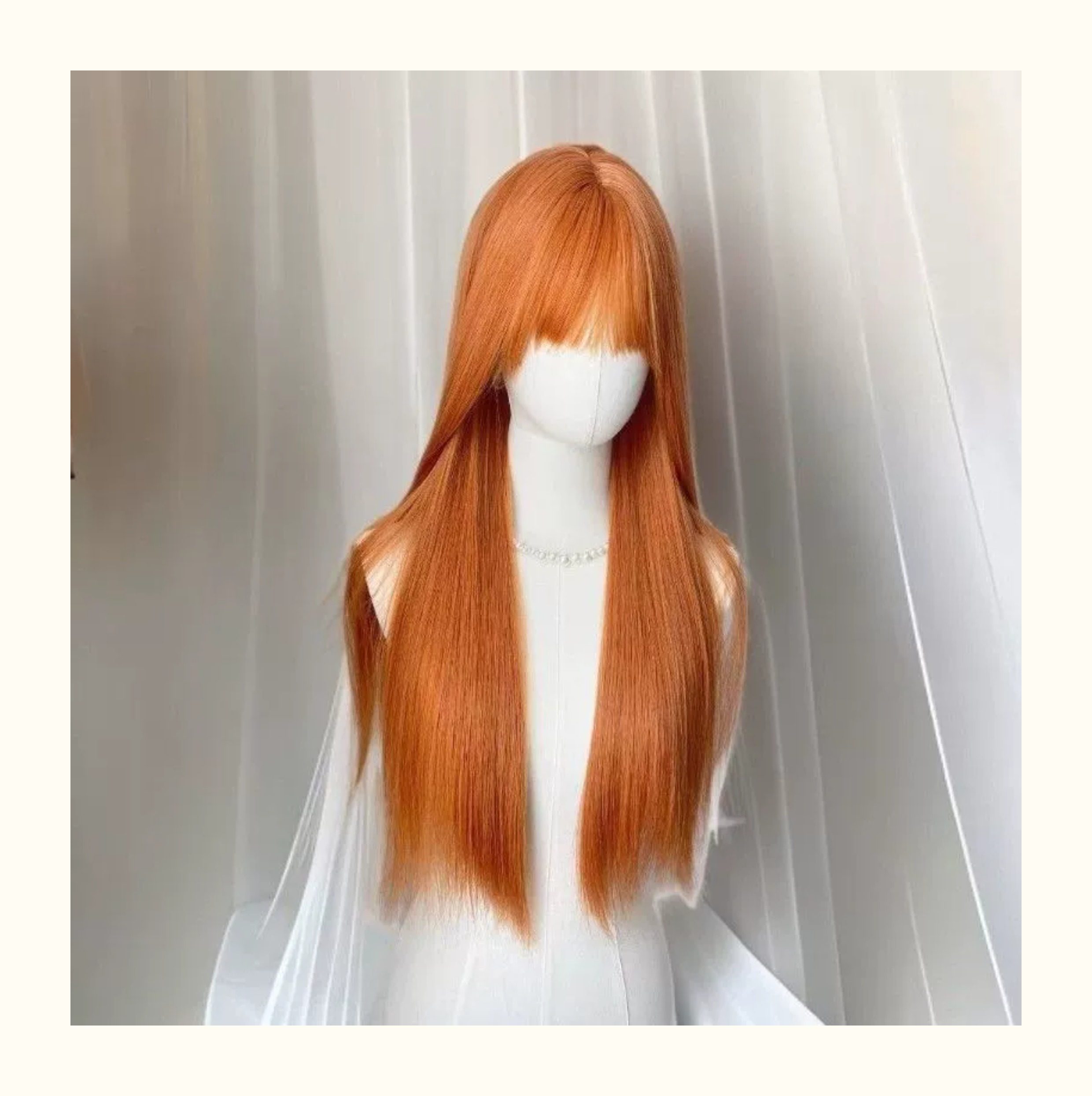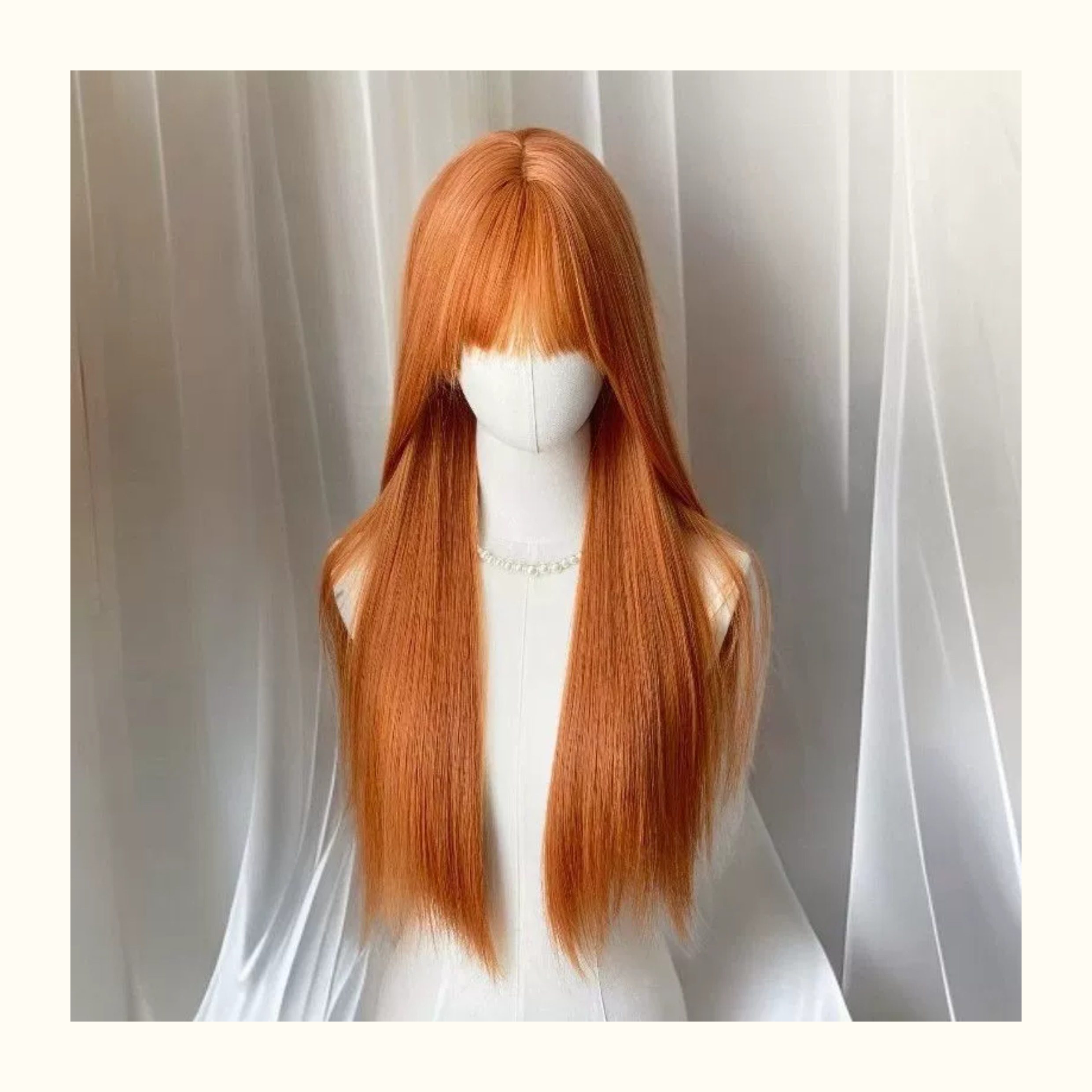 [Orange Soda] Women's wig with straight orange bangs, long and straight, brightening and natural, stylish full head wig.